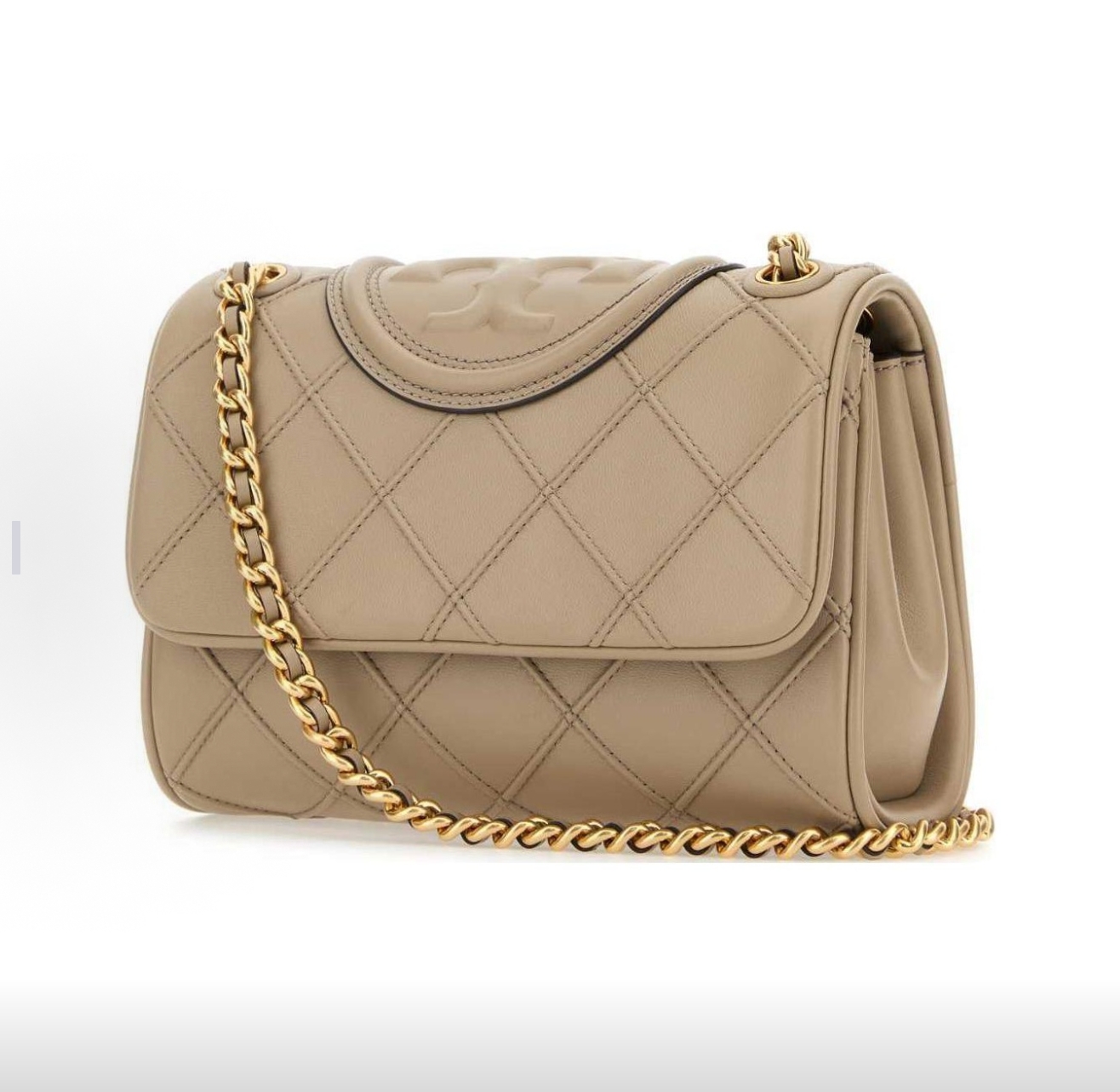 TORY BURCH Fleming 翻盖开合压印徽标 小牛皮 斜挎单肩包 小号 女款 棕色