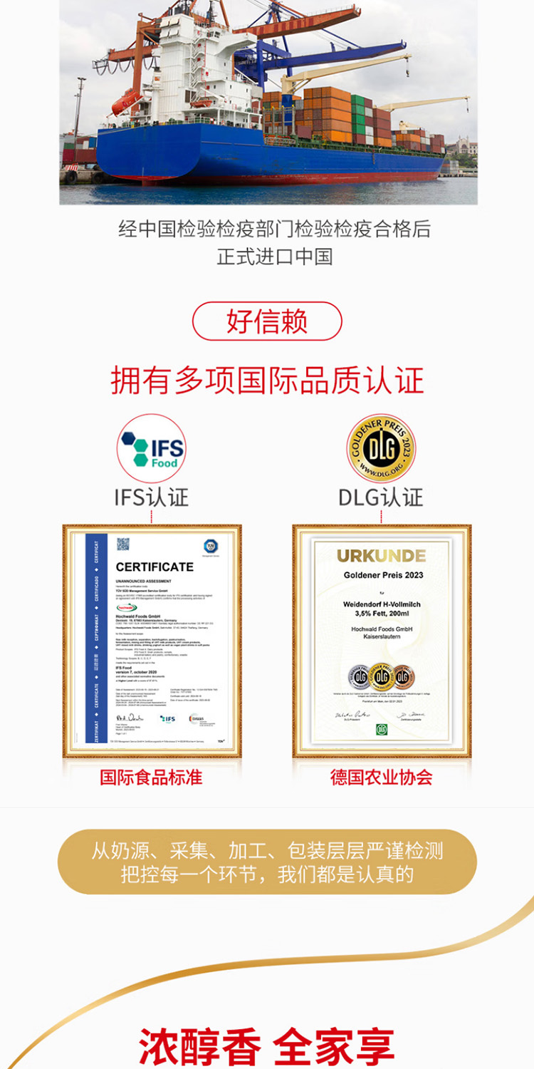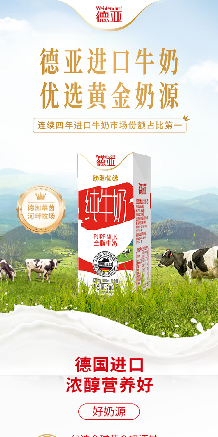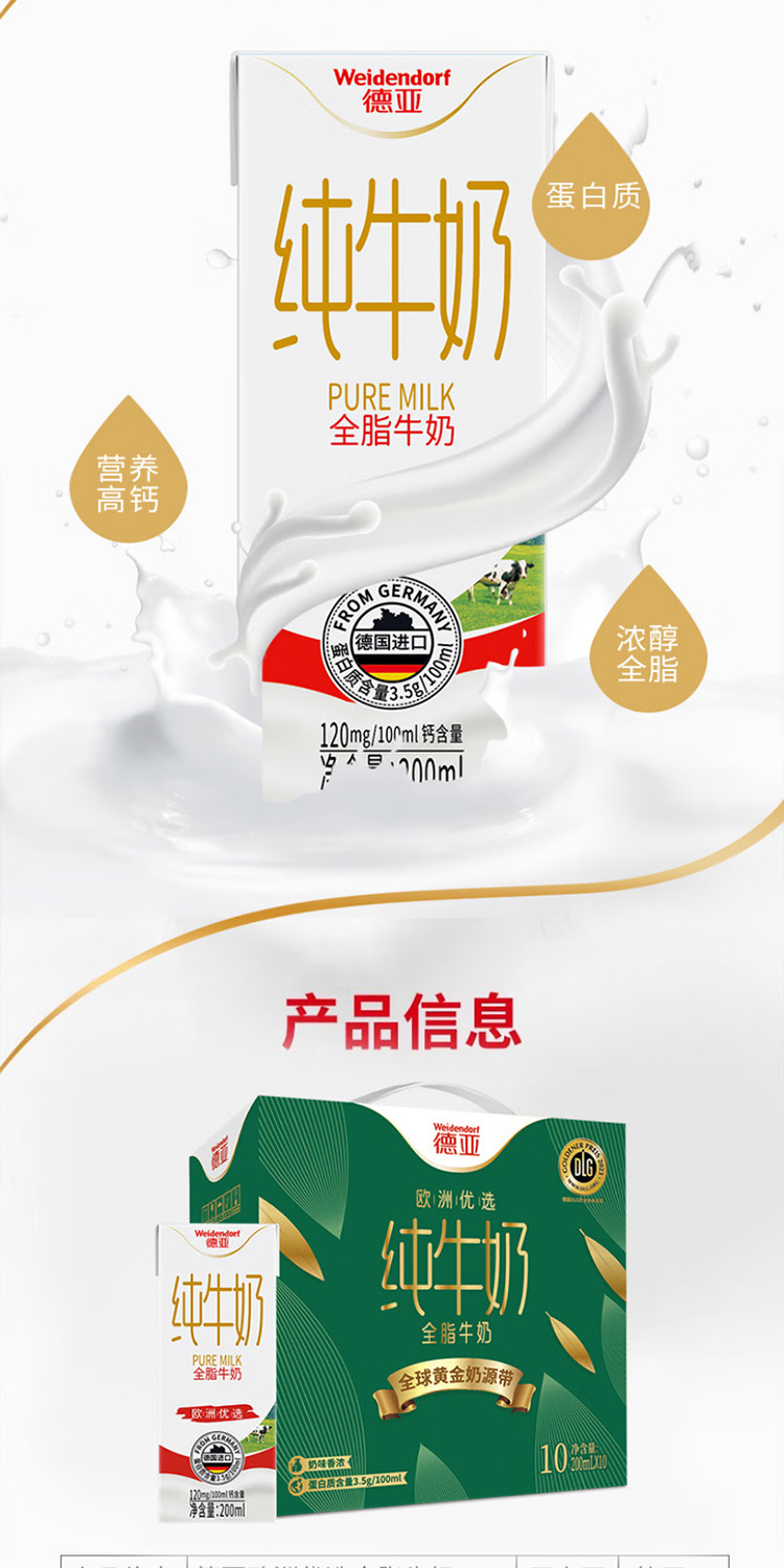 德亚欧洲优选(黄金奶源带)全脂纯牛奶200ml*10礼盒