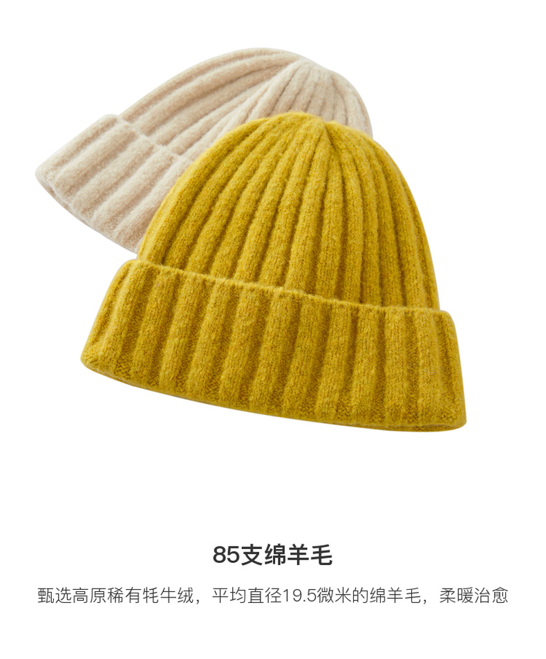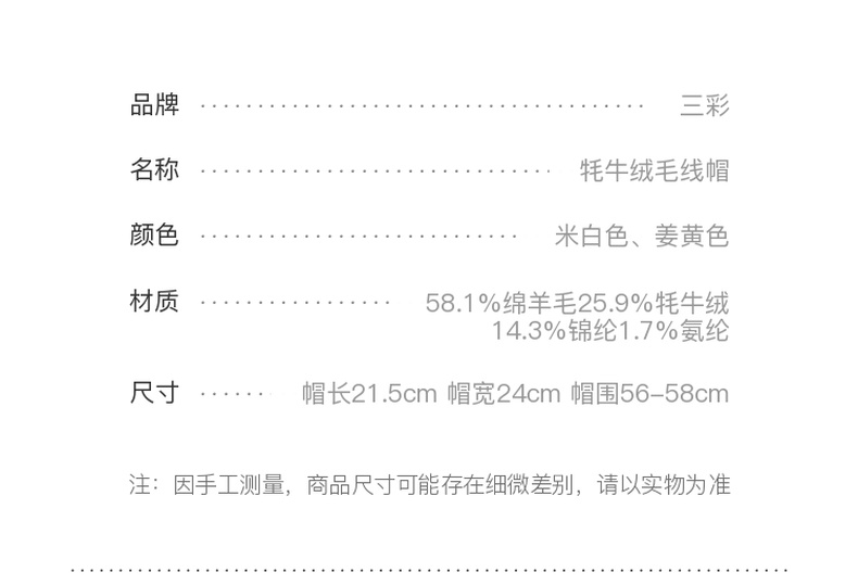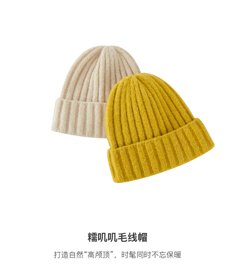 三彩2024新款秋冬绵羊毛牦牛绒针织毛线帽保暖帽子大头围显脸小