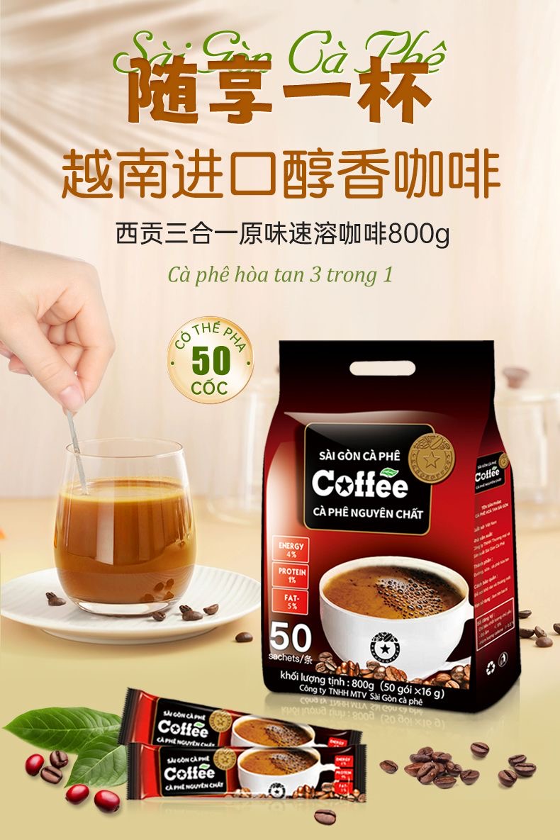 西贡咖啡原味800克50条装速溶三合一咖啡即溶
