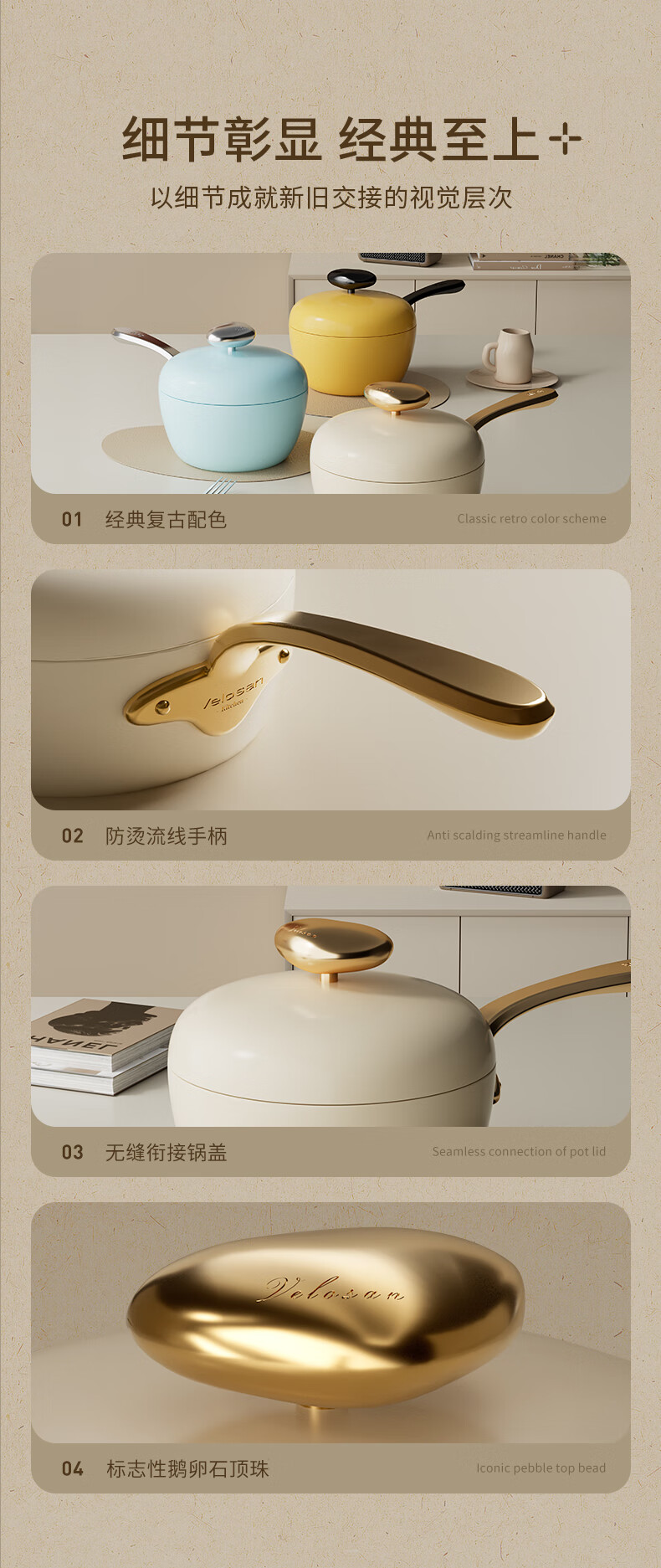 Velosan温仑山鹅卵石0涂层聚财奶锅20cmVP-2ENG02&06-7A18