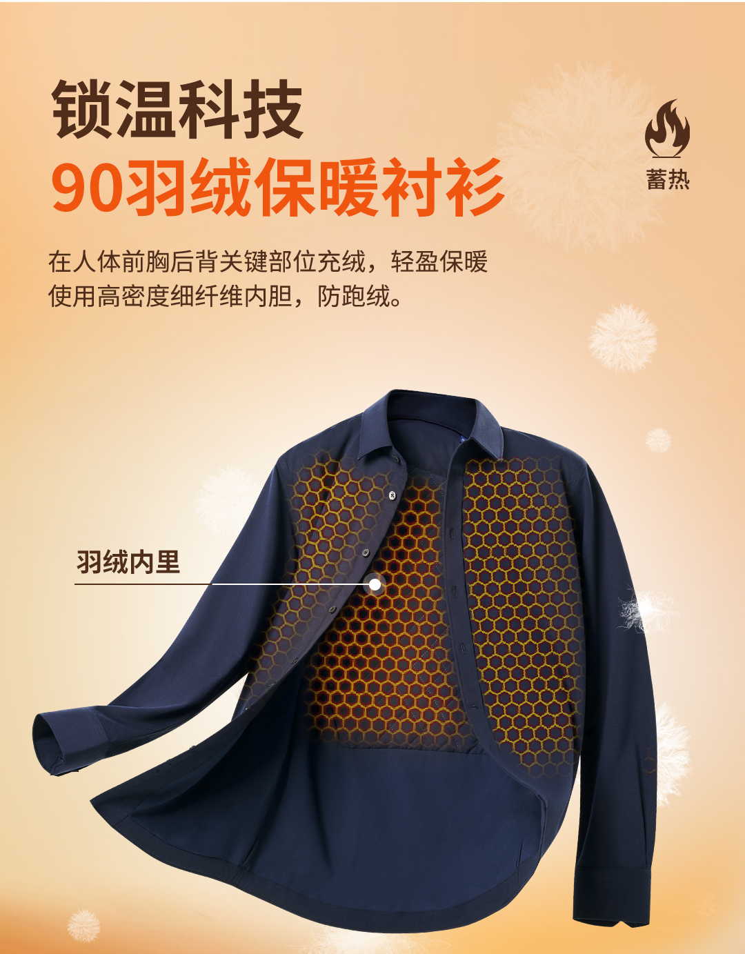 【总裁T9】90羽绒充绒保暖蓄热长袖衬衫249B0F641L