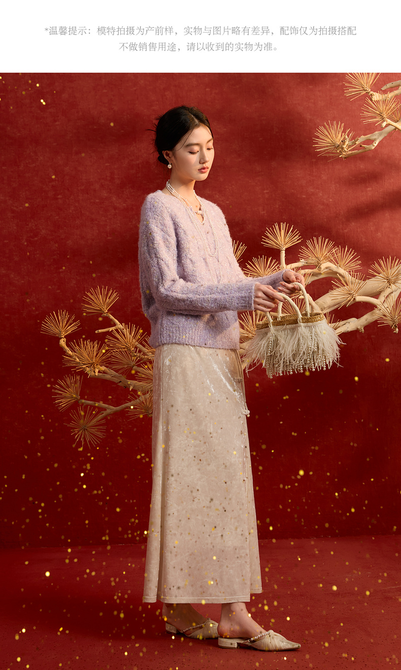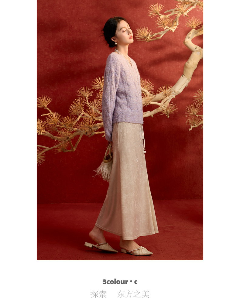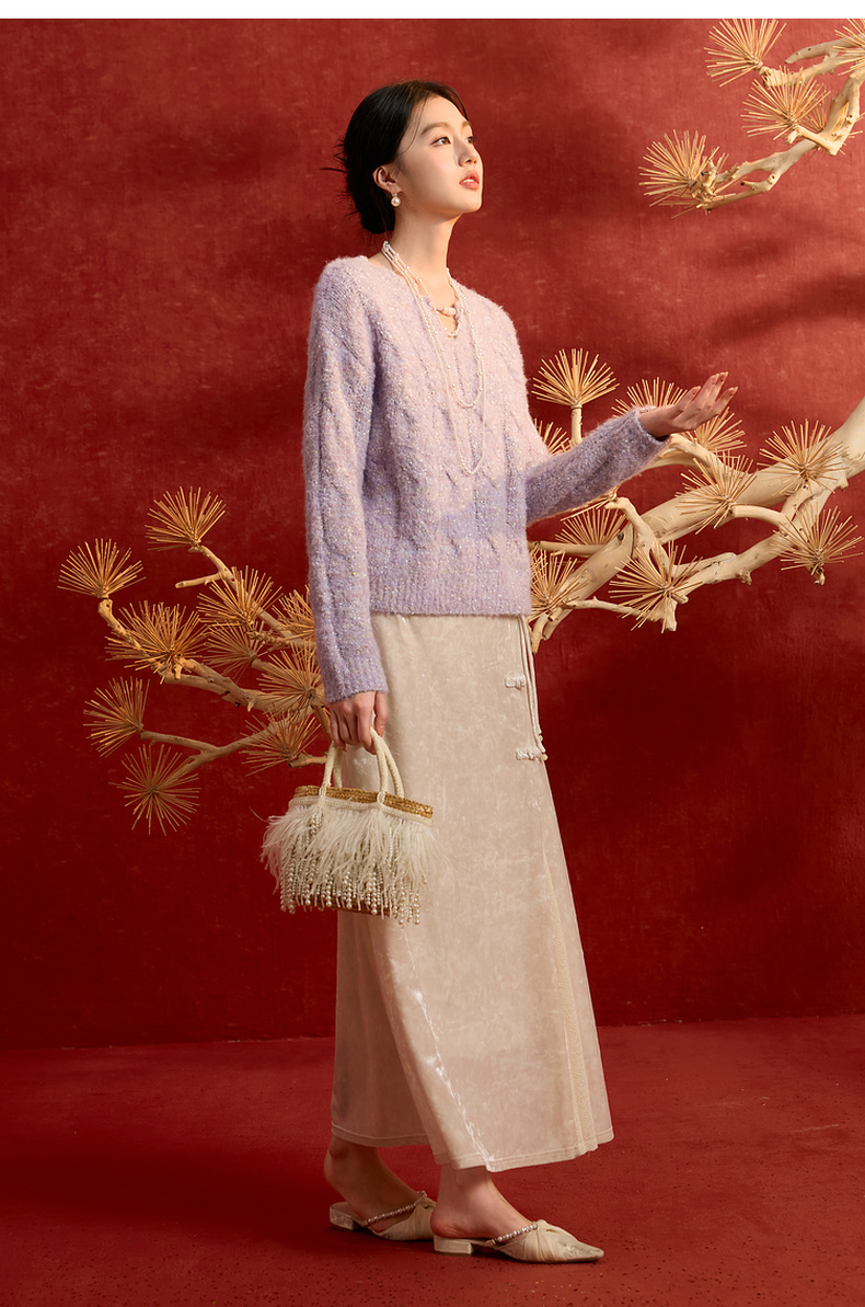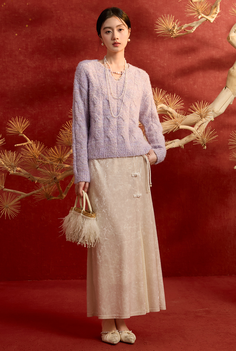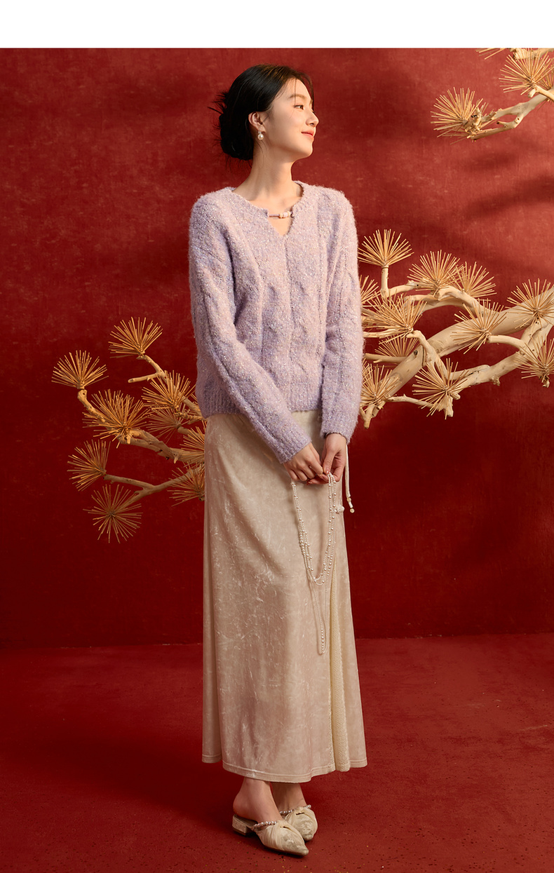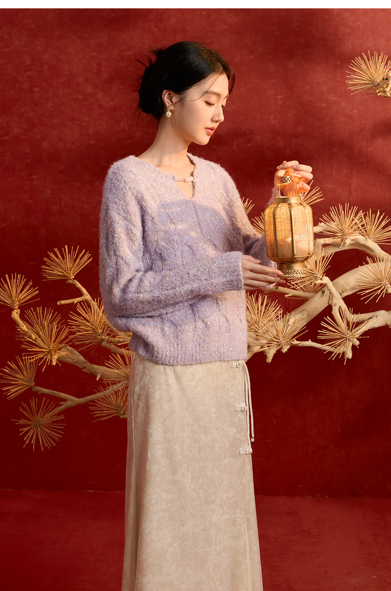 三彩【烟光凝紫】2025冬季新款新中式针织衫宽松落肩袖毛衫套头C