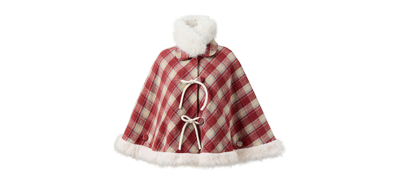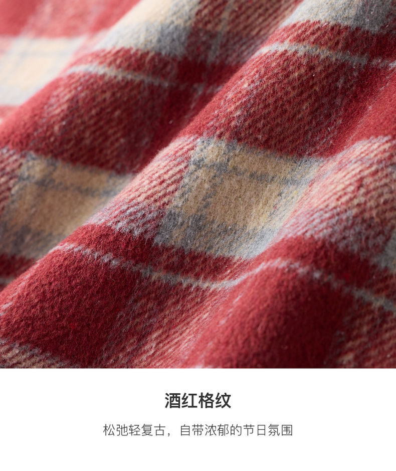 【绵羊毛】三彩2026新款酒红格纹毛呢披肩斗篷外搭毛绒复古千金风