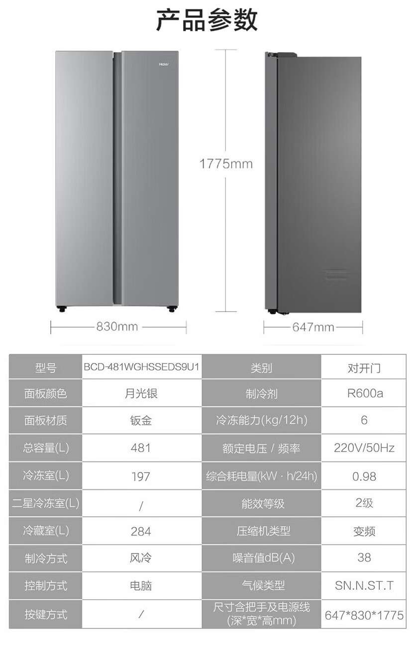 海尔/冰箱/BCD-481WGHSSEDS9U1