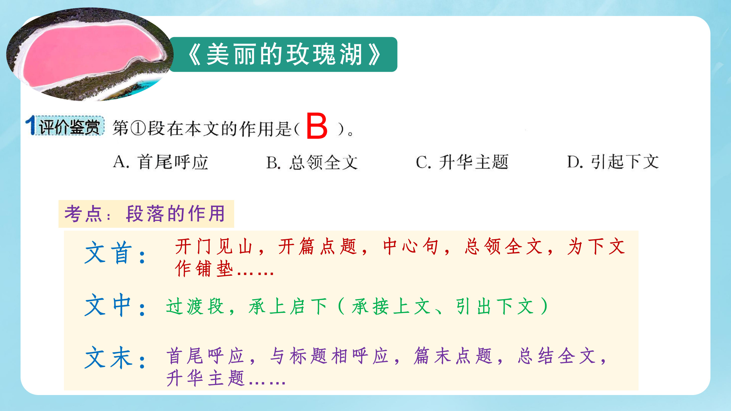 🎏阅读(词句含义,人物形象分析,句段作用、文章结构,标题含义作用,修辞赏析,环境描写和人物描写作用。)