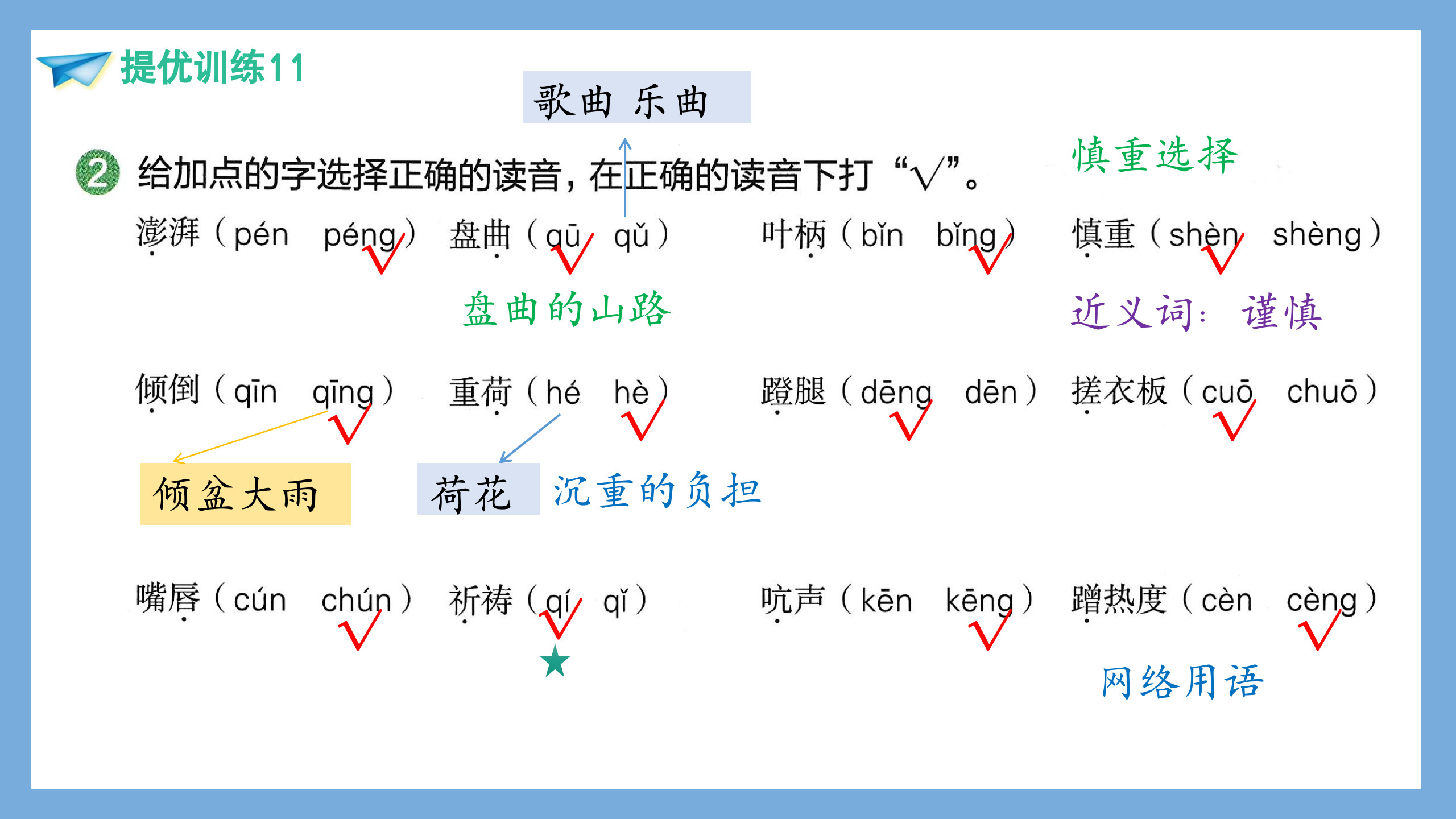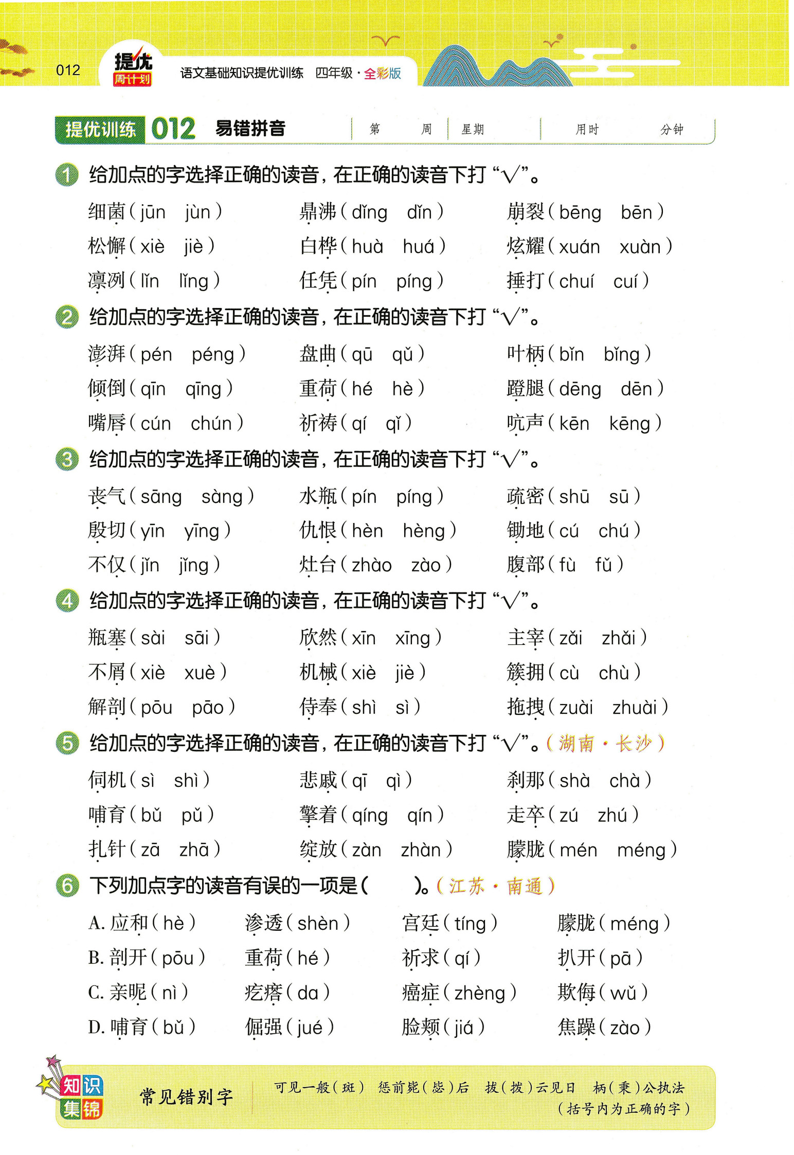 选自 基础周计划(2年级上册)、基础周计划(3年级上册)、提优周计划语文基础知识训练(4年级)、冲刺名校小升初语文基础知识强化训练中经典内容。