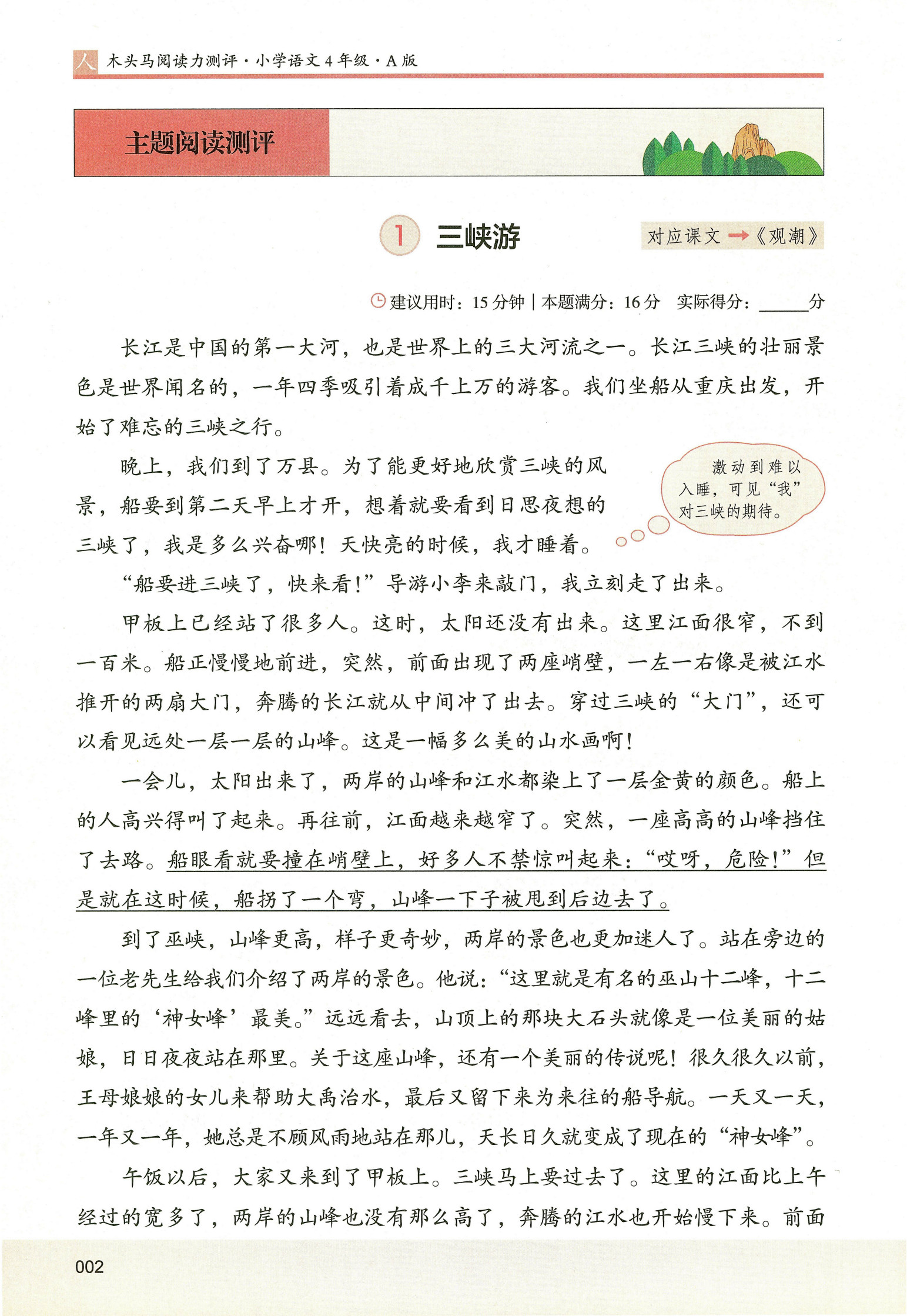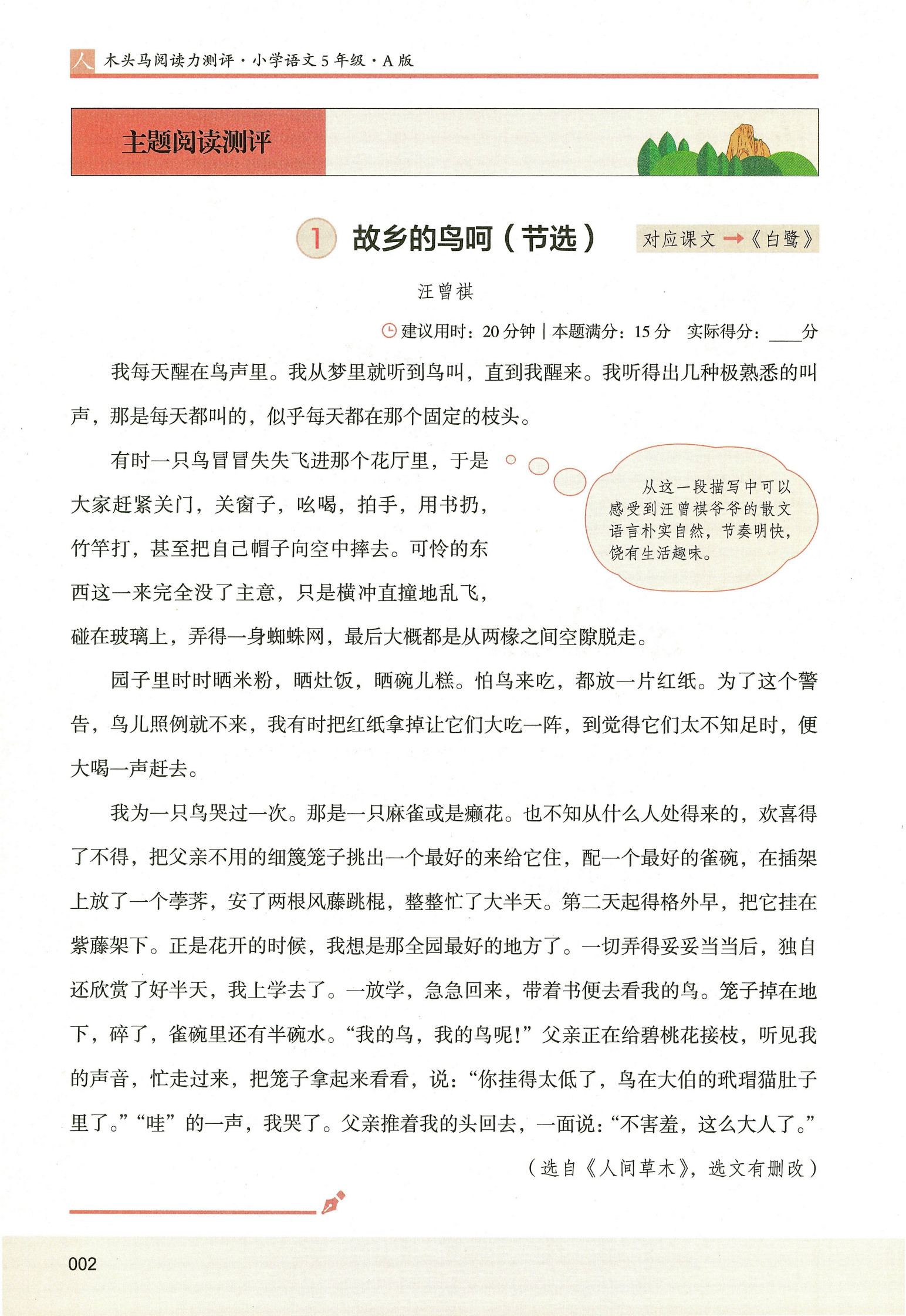 新阅读100(2年级)、木头马阅读能力测评A版(3年级)、木头马阅读能力测评A版(4年级)、木头马阅读能力测评A版(5年级)中经典篇章。