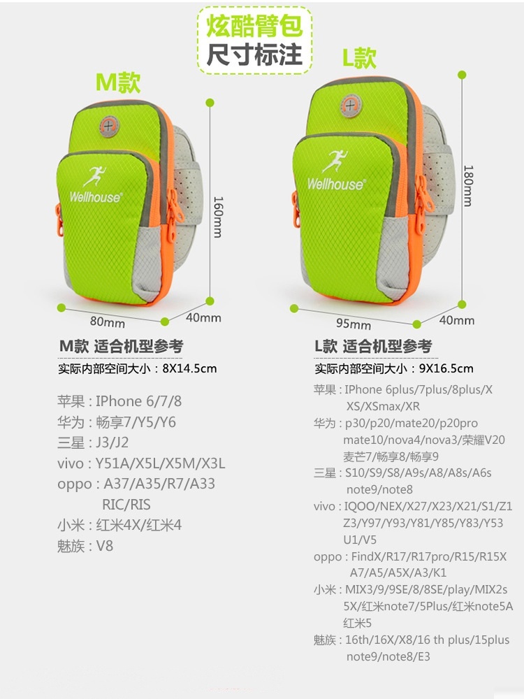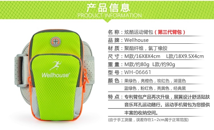Wellhouse 跑步运动手机臂包 户外透气防水 M码