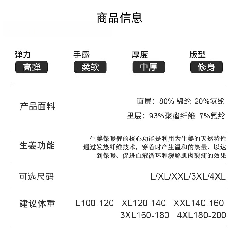 金莱克六防科技加绒裤男女同款生姜保暖裤 JLK13210001 商品图4