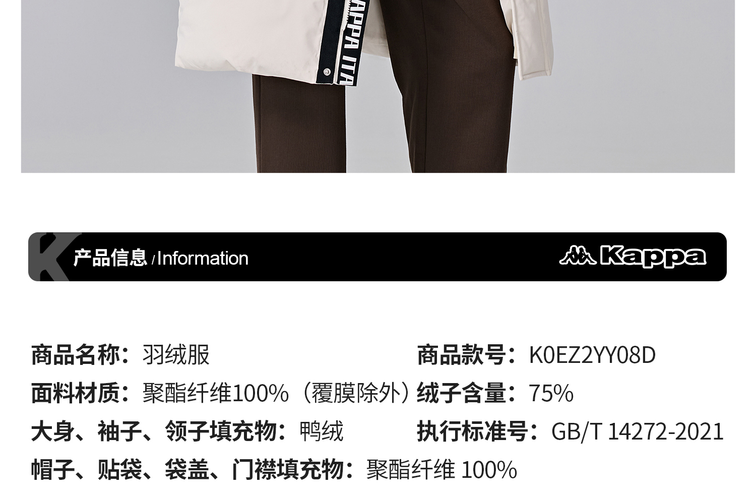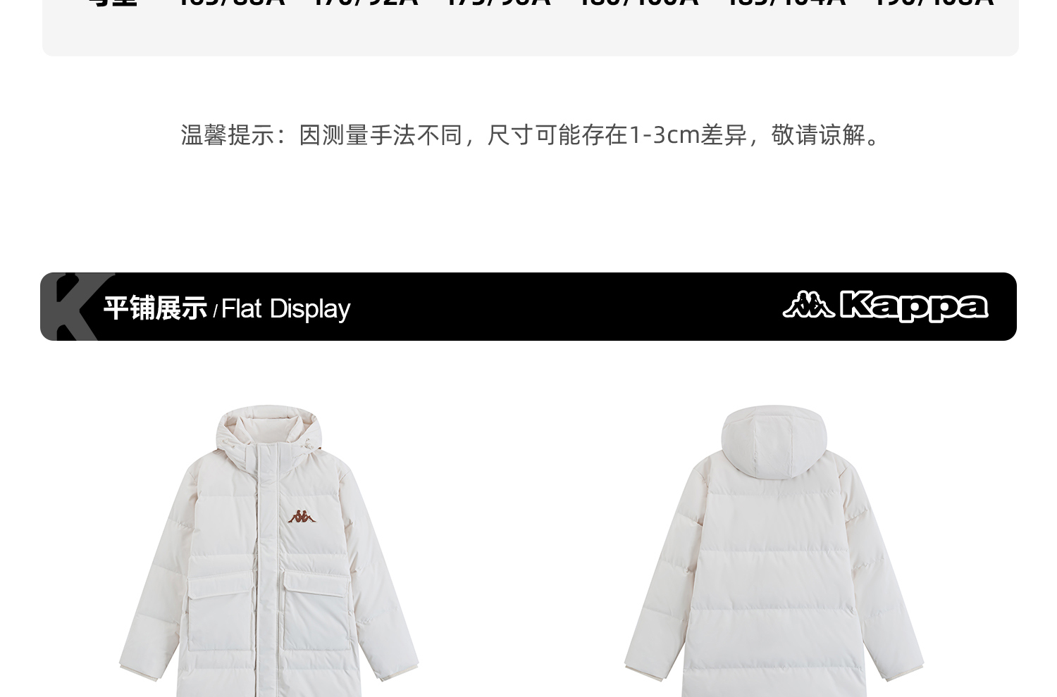 Kappa卡帕背靠背保暖羽绒服女款2024新款冬户外长款外套上衣男款K0EZ2YY08D