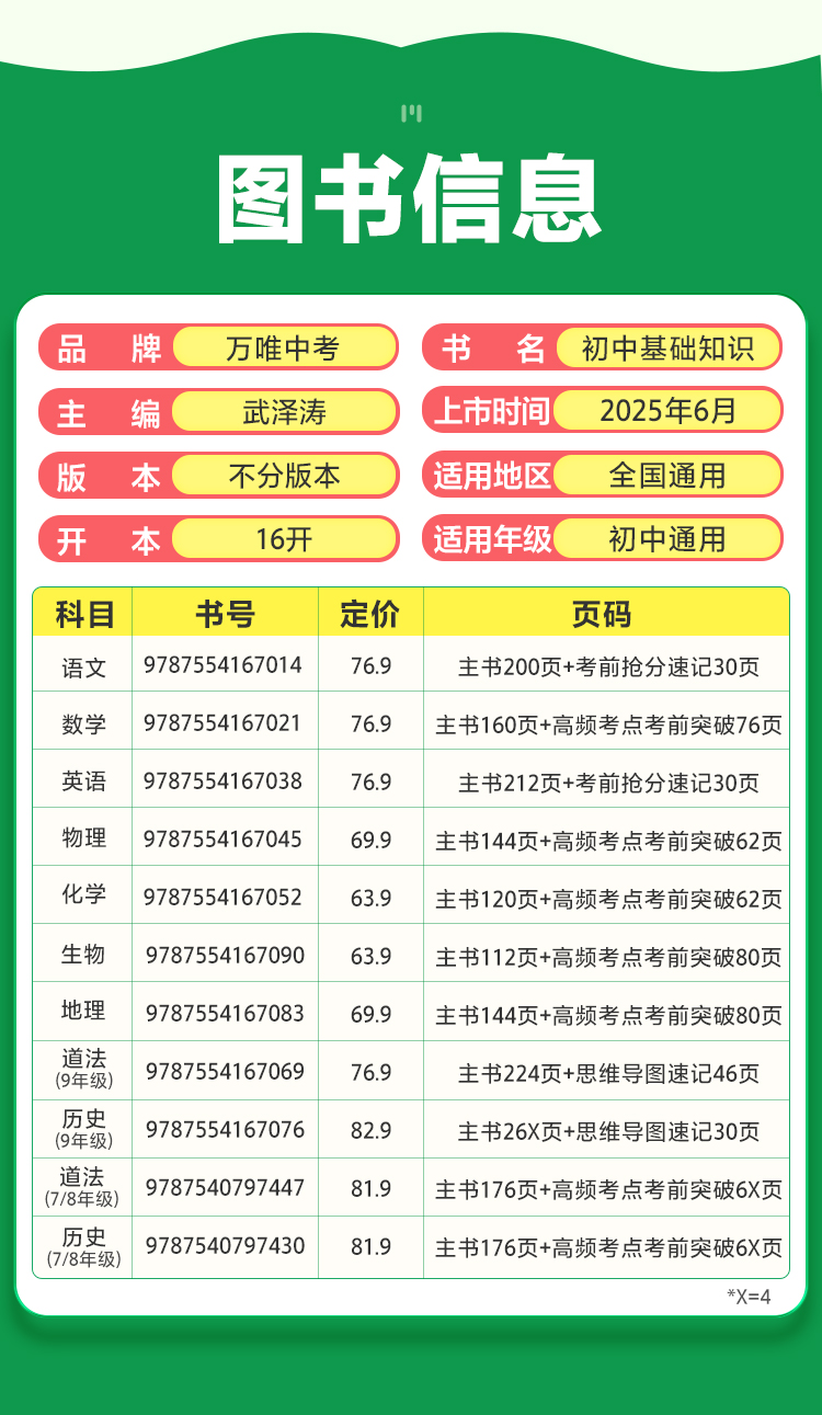 2026万唯初中基础知识语数英物化道历生地知识点必背七八九年级