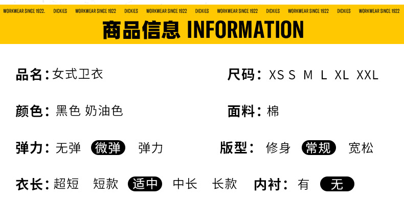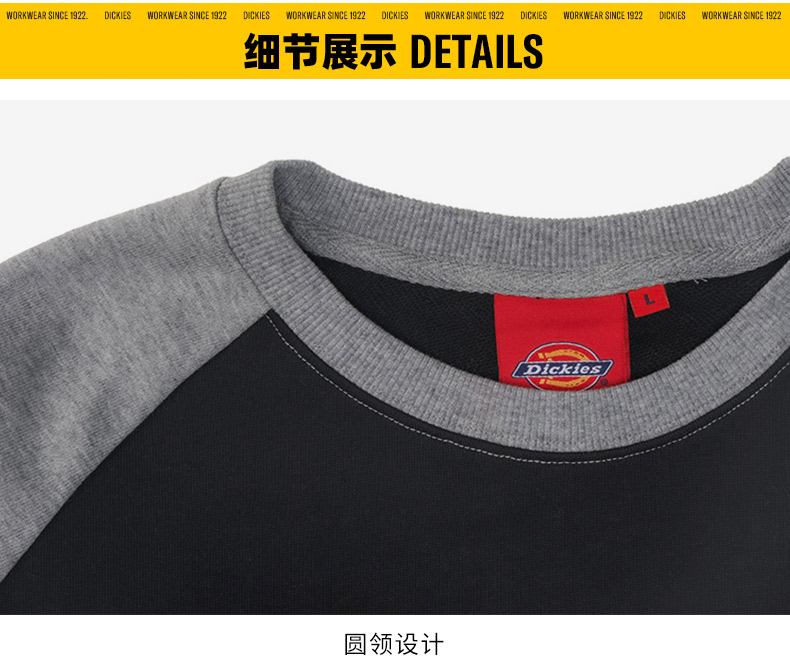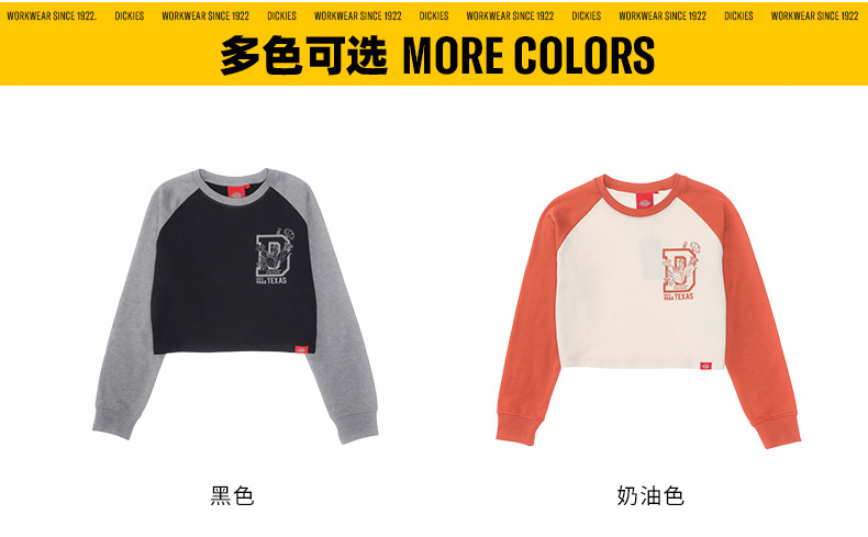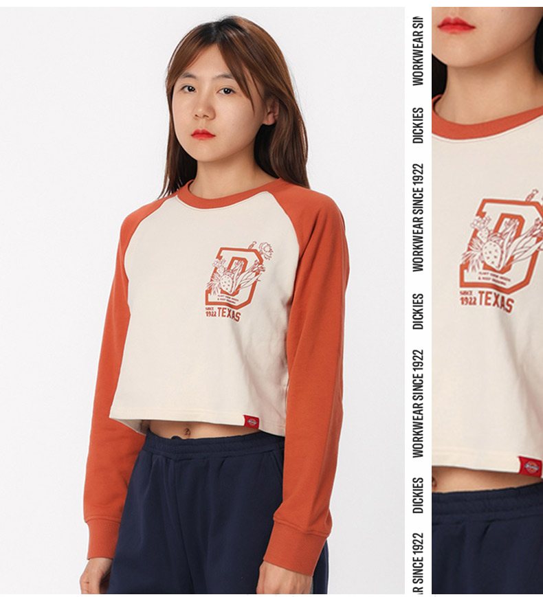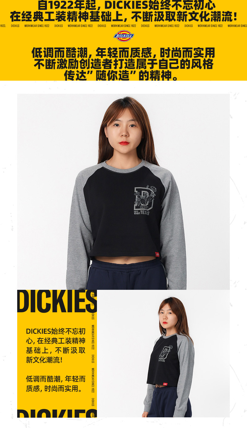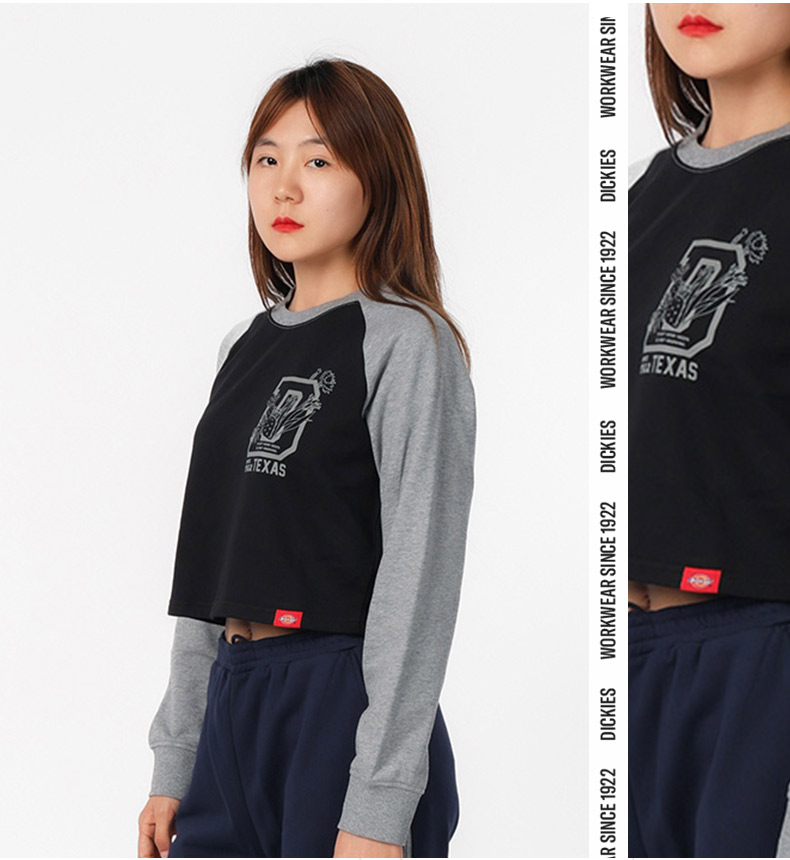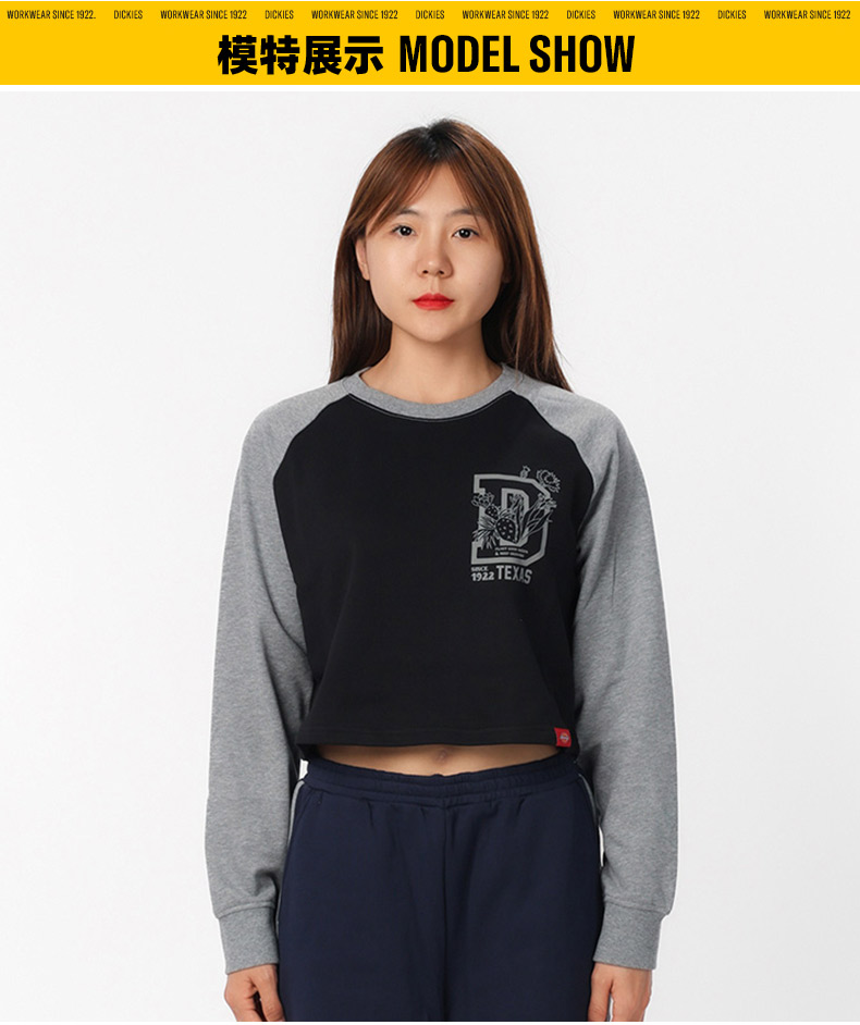 Dickies卫衣 女式印花短款插肩袖毛圈布舒适圆领卫衣 DK0A87CM