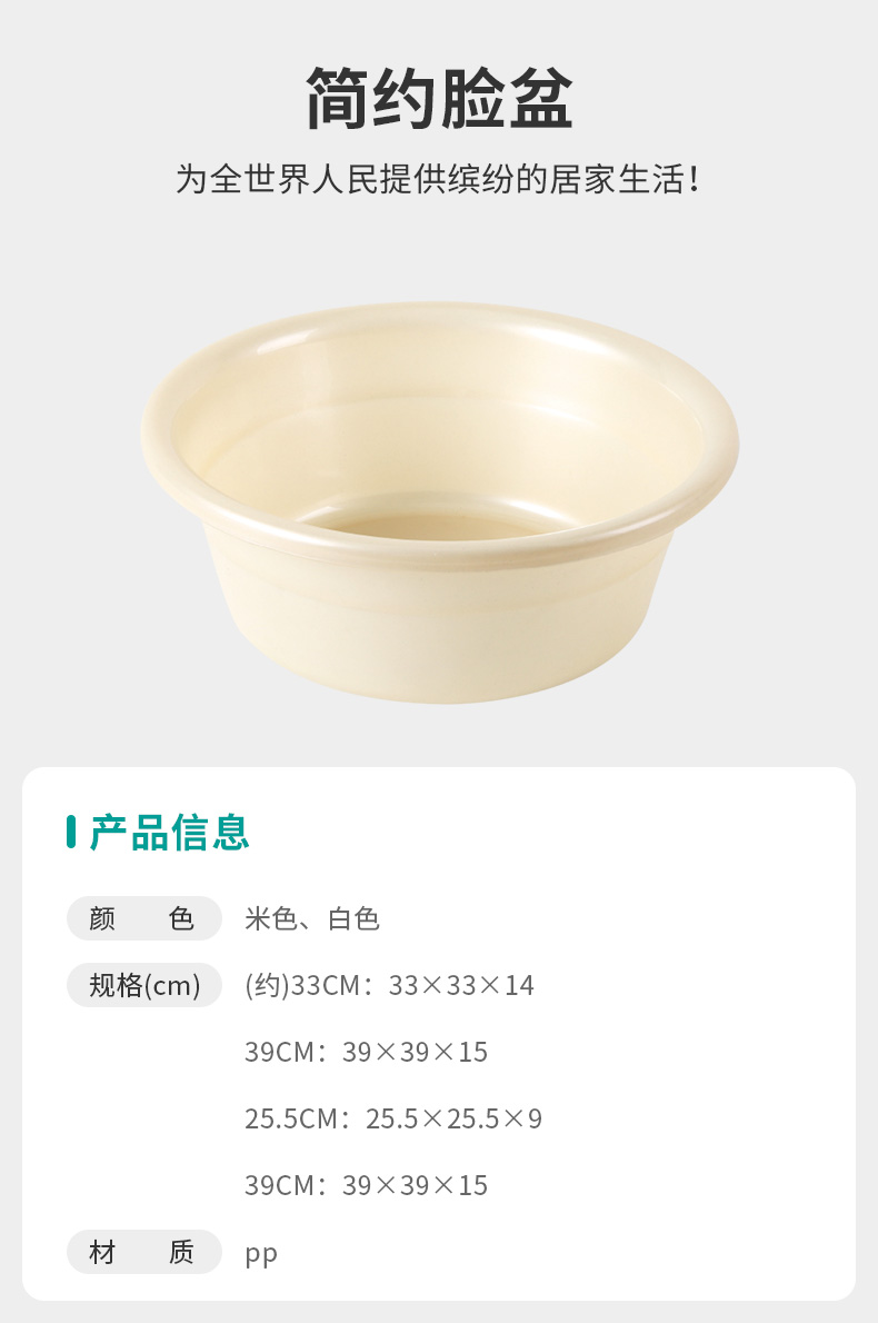 简约脸盆 米色约25.5CM/33CM/39CM