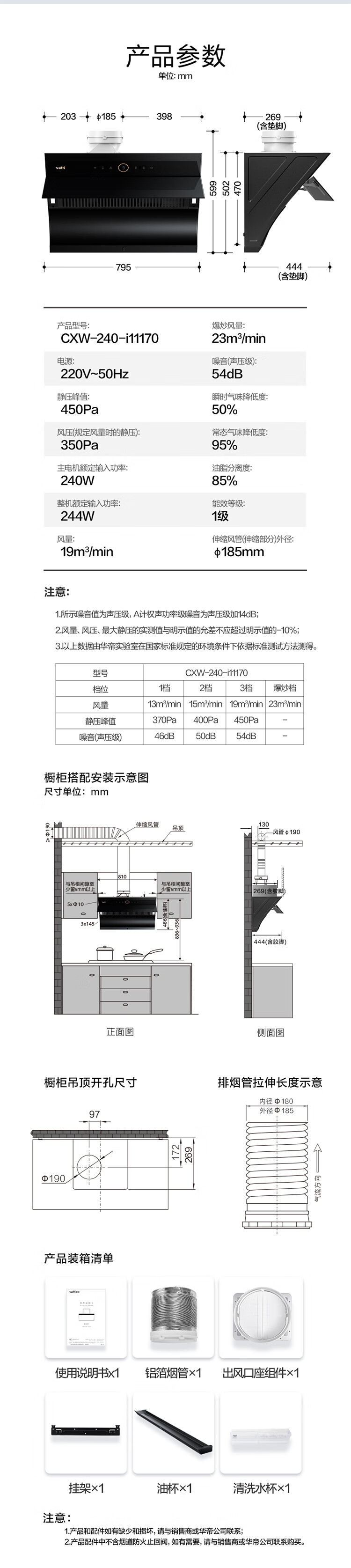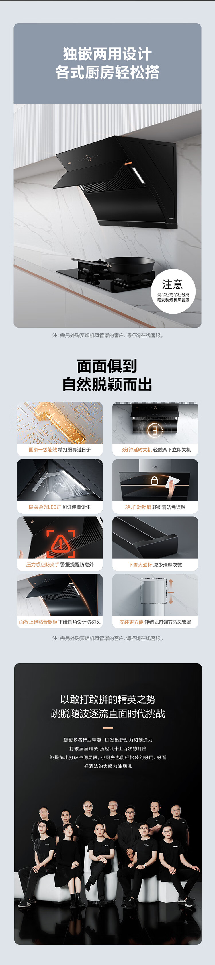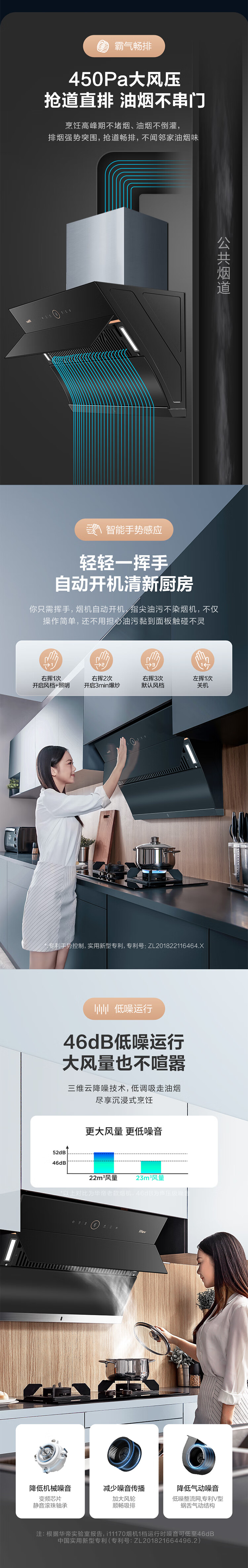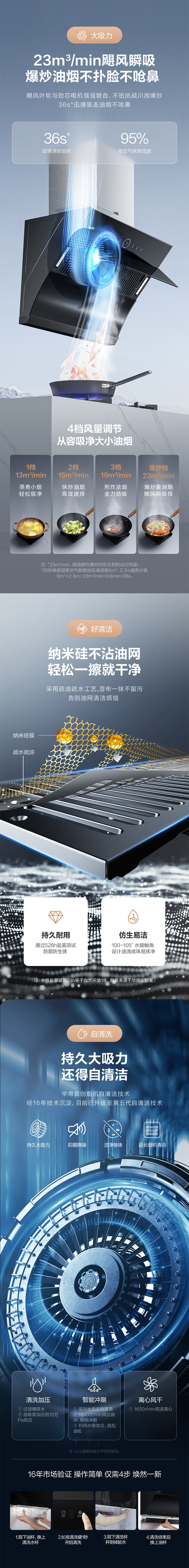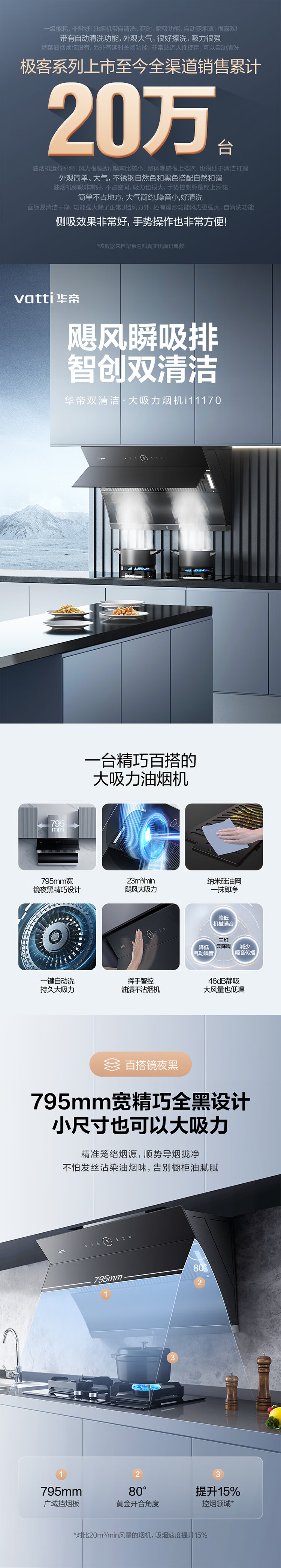 华帝(VATTI)抽油烟机 侧吸式 家用吸油烟机 23风量大吸力 智能挥手智控 高频自动清洗排油烟机 i11170