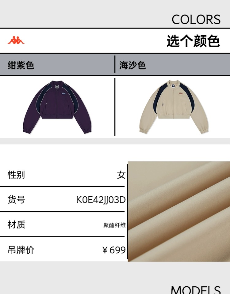 Kappa卡帕茄克2024新款女防晒夹克防泼水运动外套复古短款开衫K0E42JJ03D