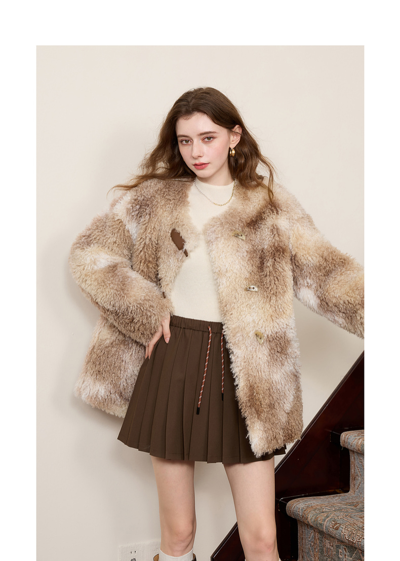三彩独醒2024冬季新款环保皮草仿托卡卷毛外套圆领毛绒上衣保暖女F