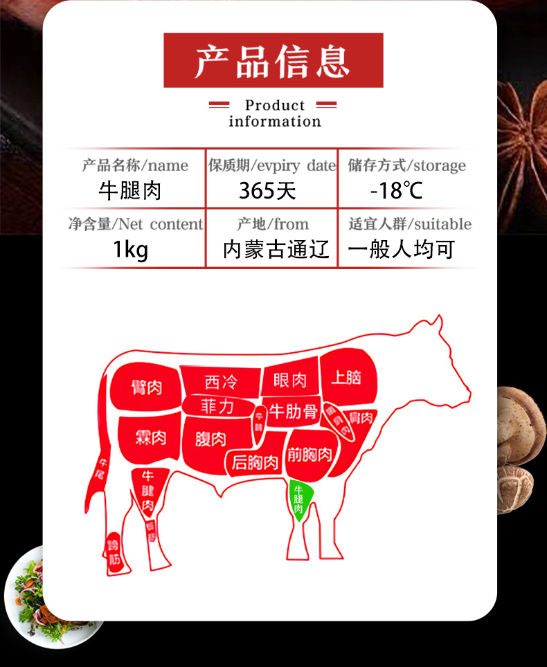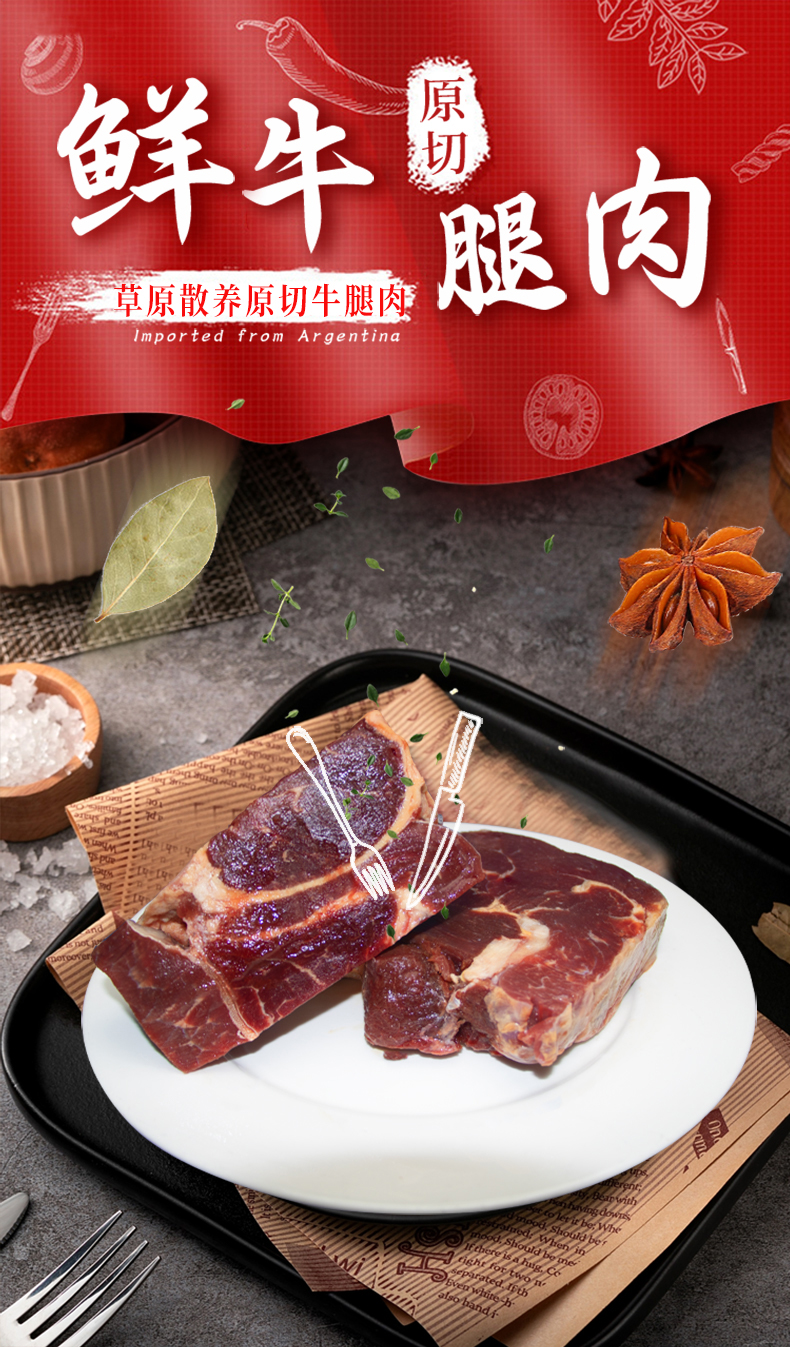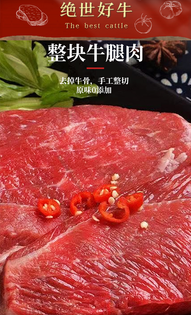 【沙漠甜心】内蒙古大草原散养原切无添加精品牛腿肉 1kg/袋x2(顺丰)