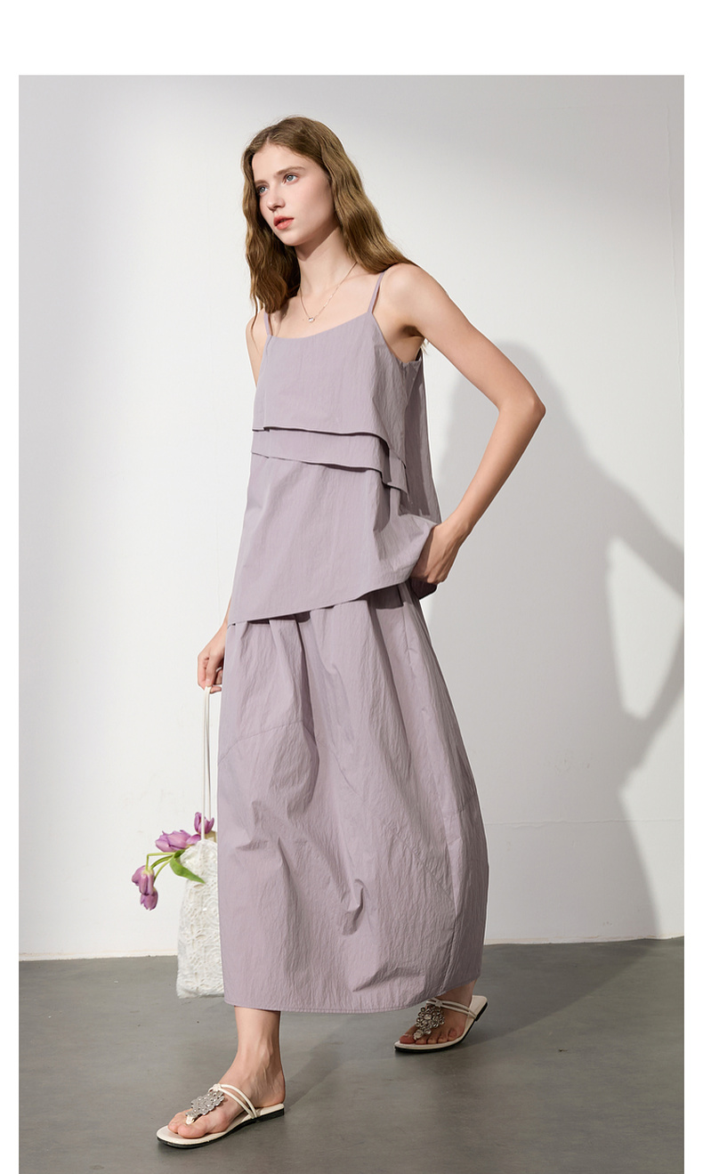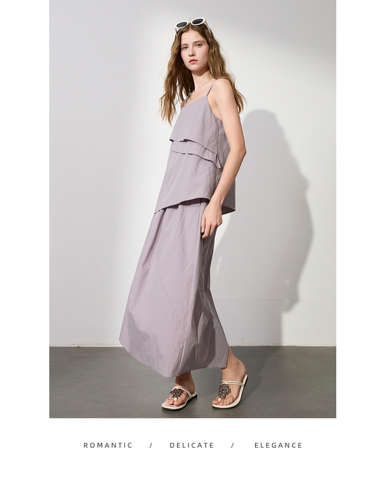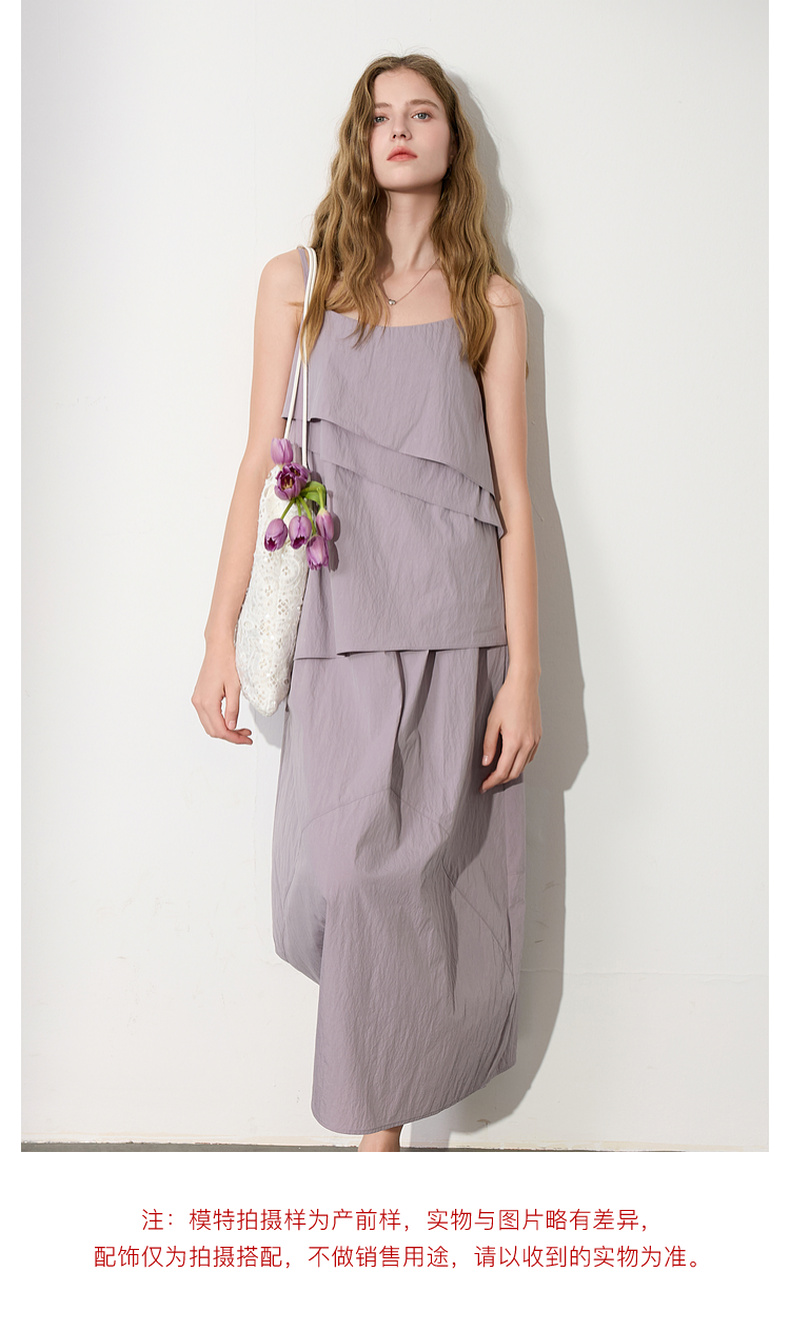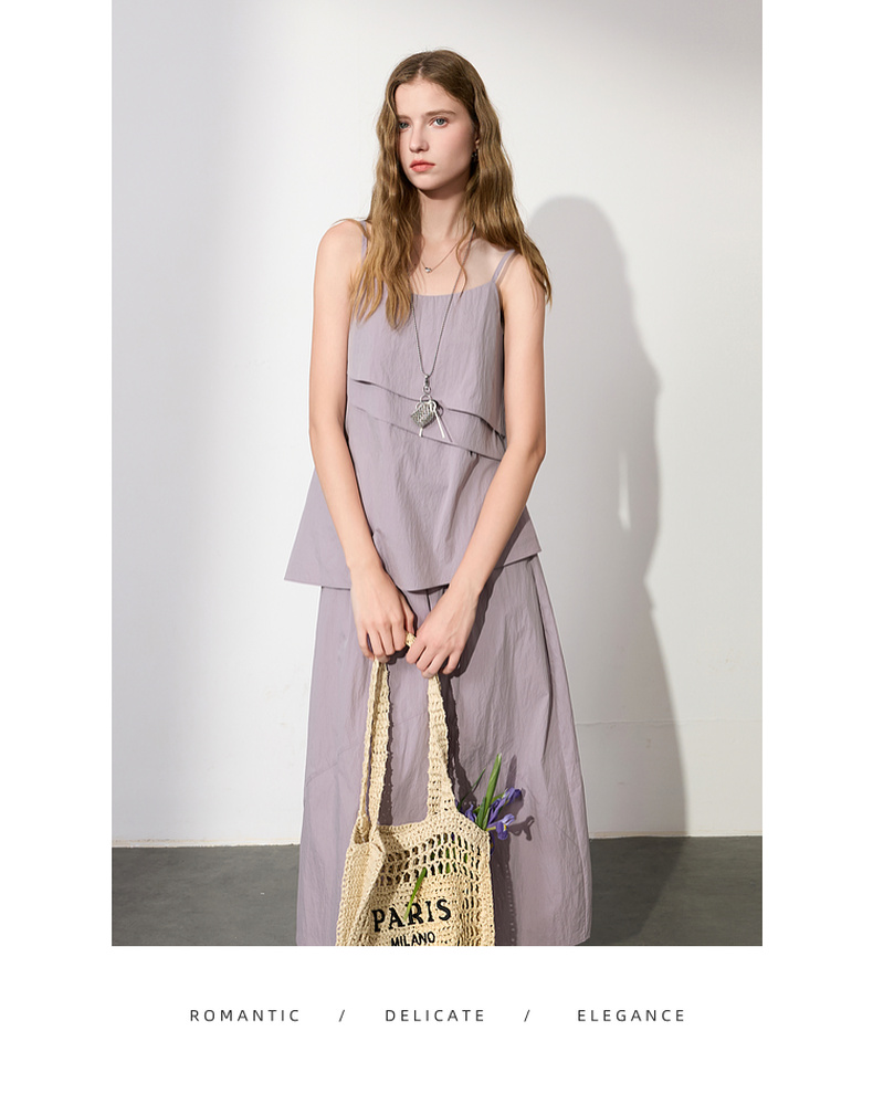 三彩2025夏季新款不规则套装无袖背心吊带松紧腰半身裙两件套M