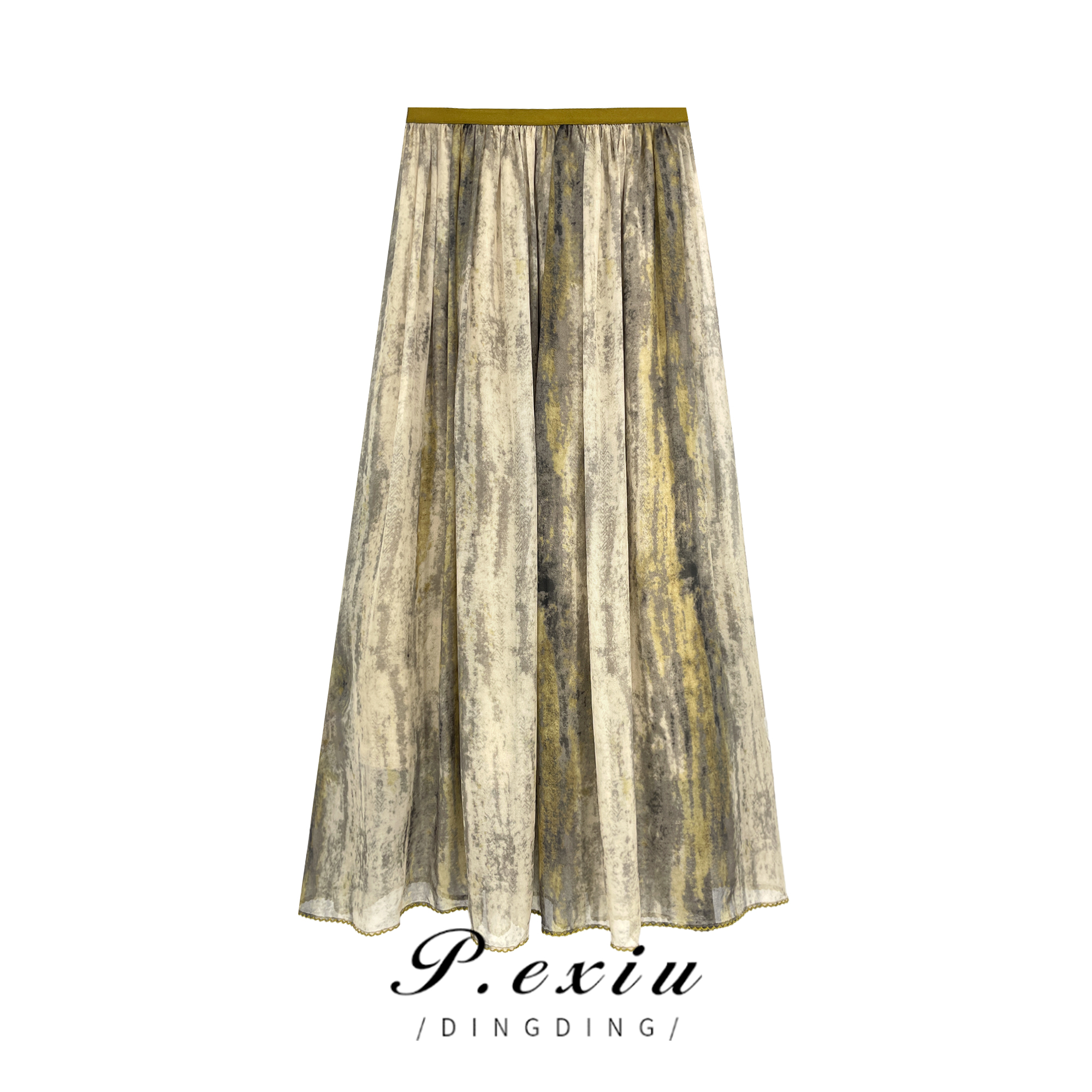 04-3潘依绣丁丁宠粉PanYiXiu/潘依绣【漫漫盛夏】夏季真-丝-晕染飘逸气质半身裙 20942T