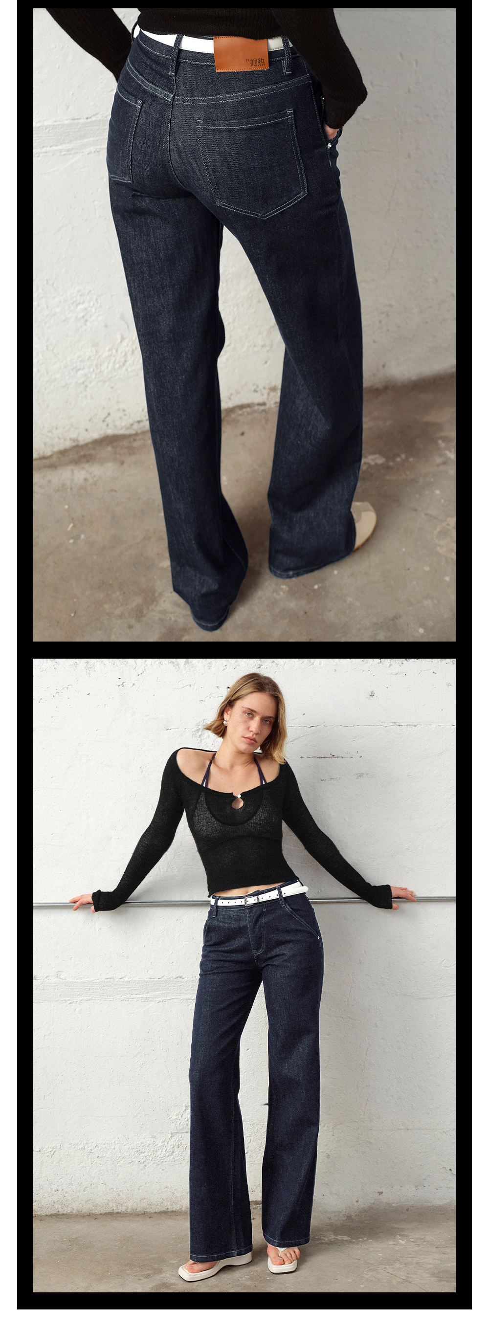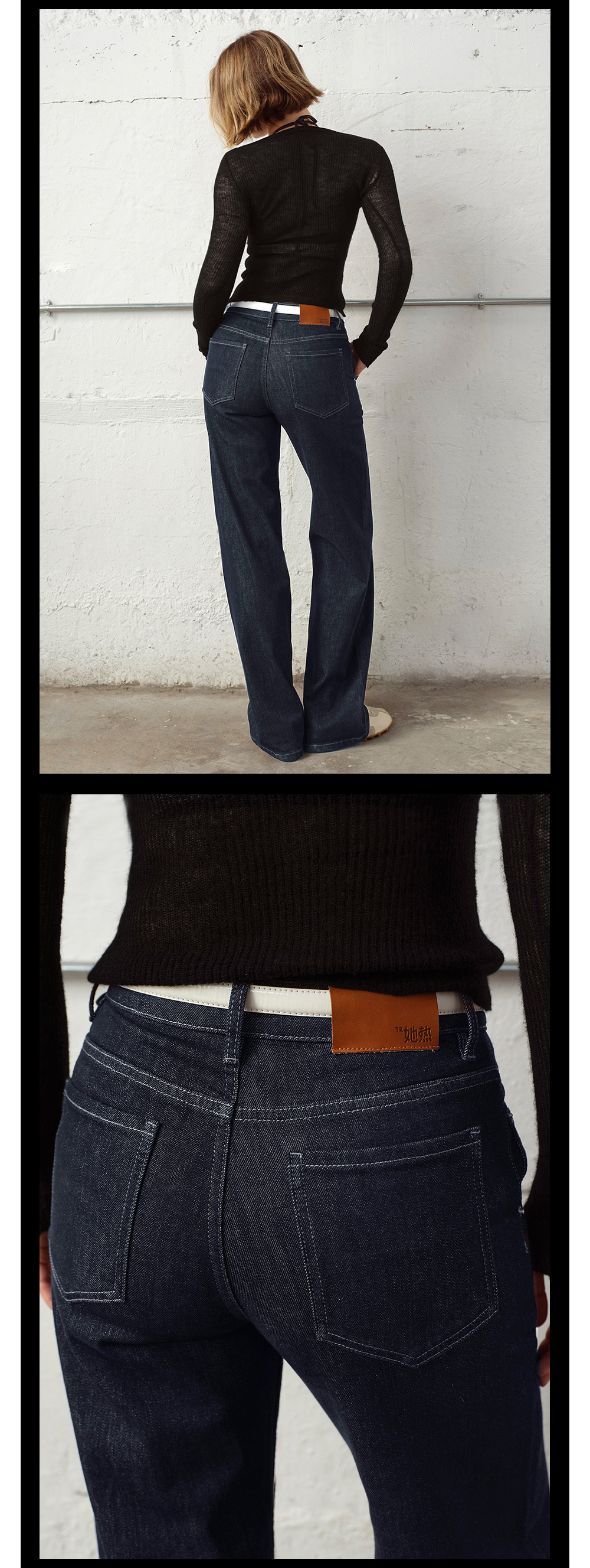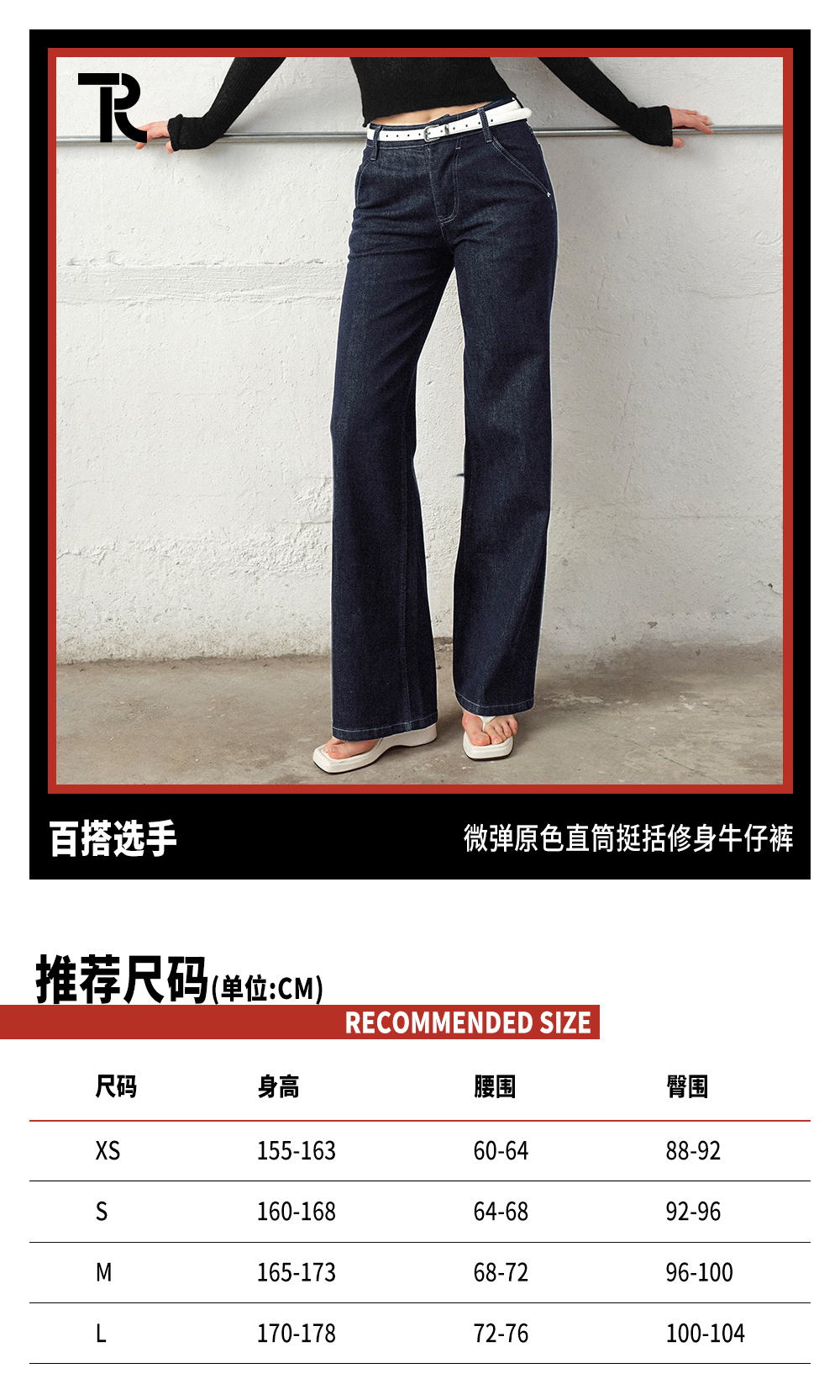TR她热 百搭选手 蓝色休闲微弹复古百搭时髦原色牛仔直筒裤