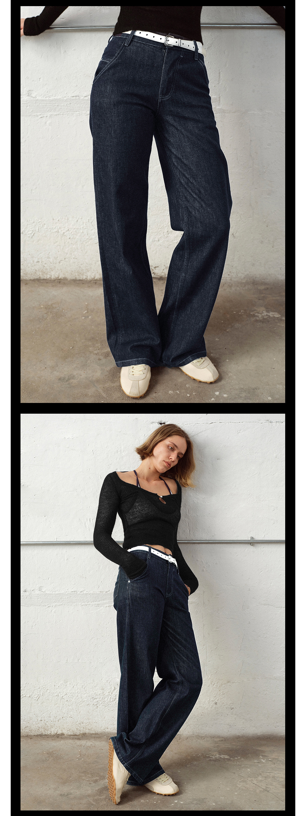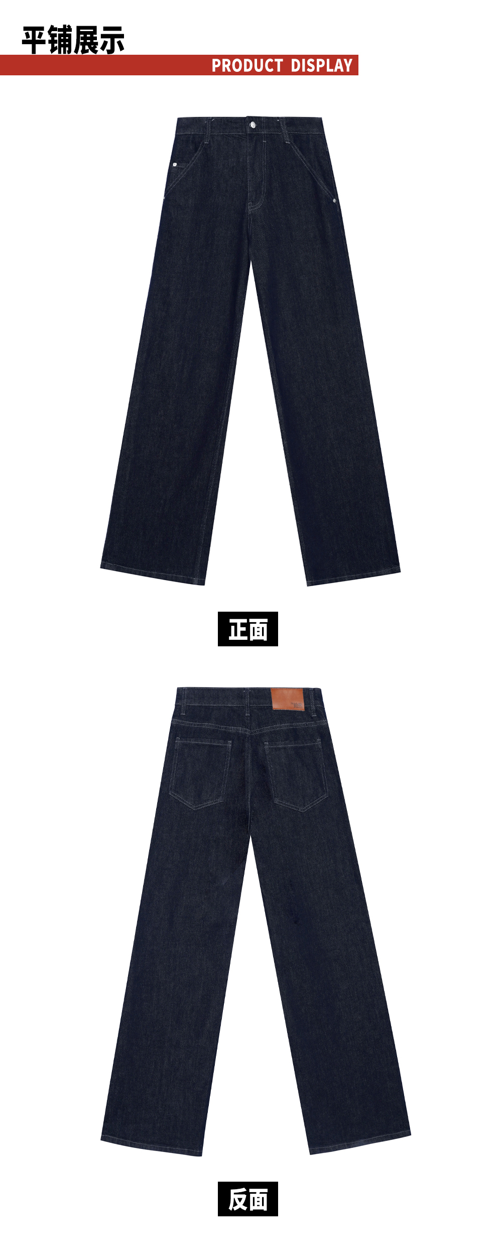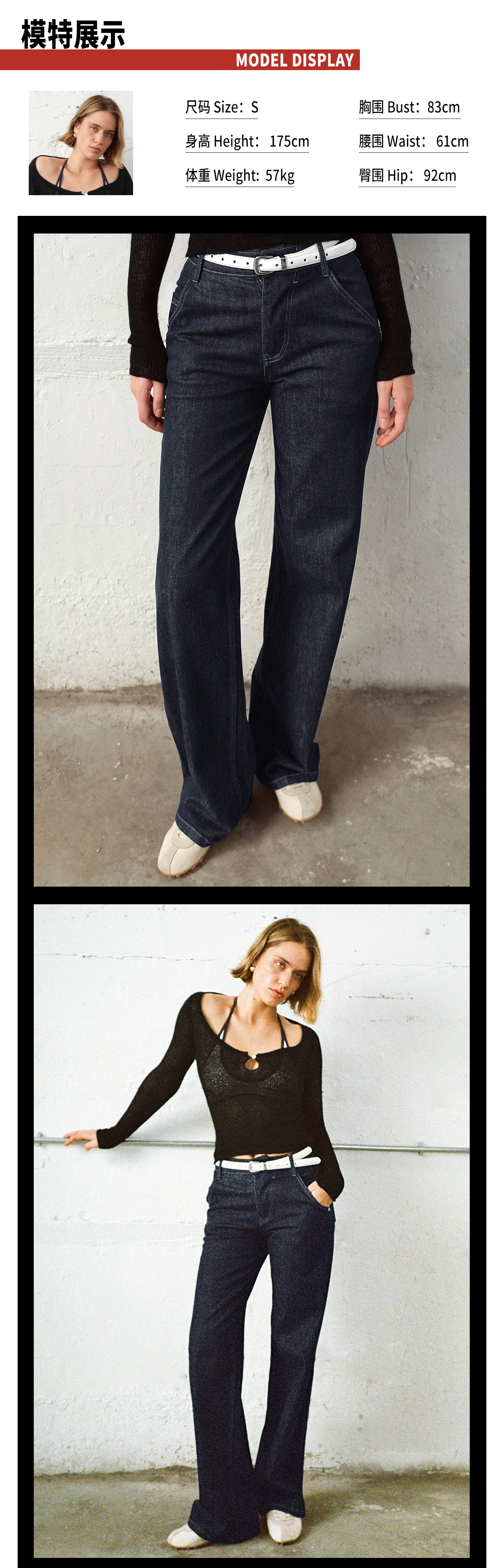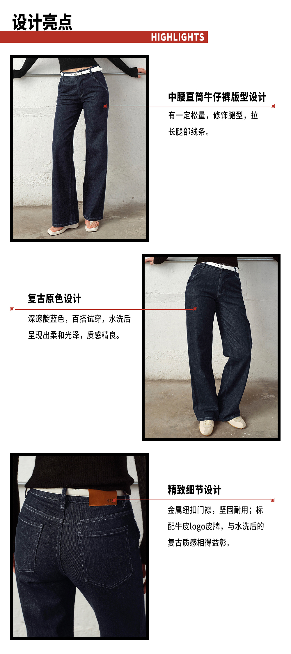 TR她热 百搭选手 蓝色休闲微弹复古百搭时髦原色牛仔直筒裤