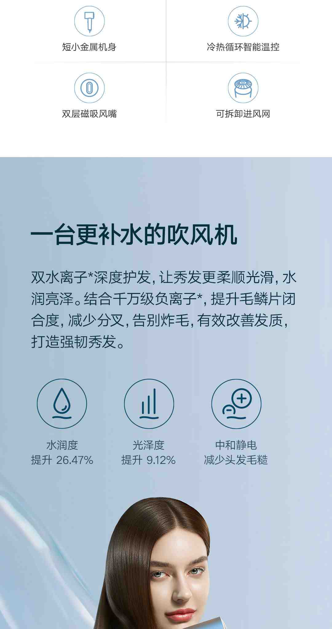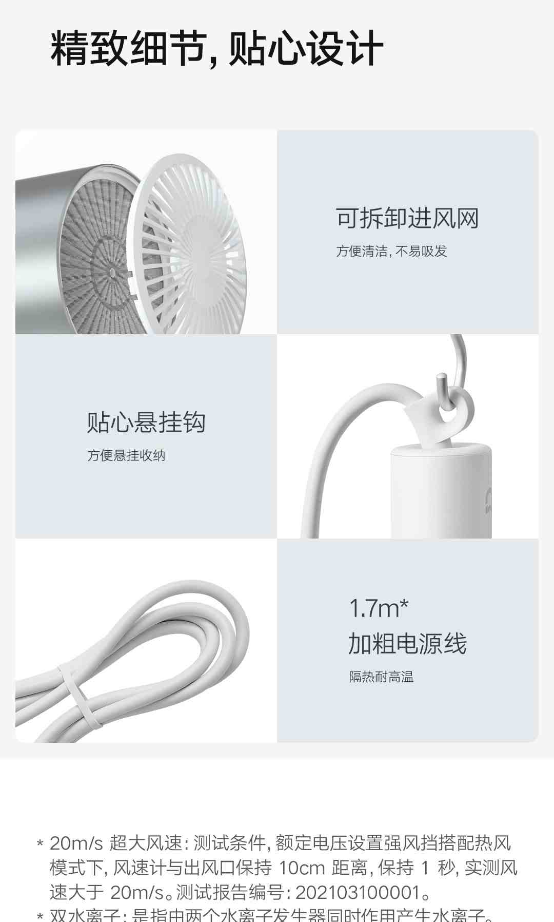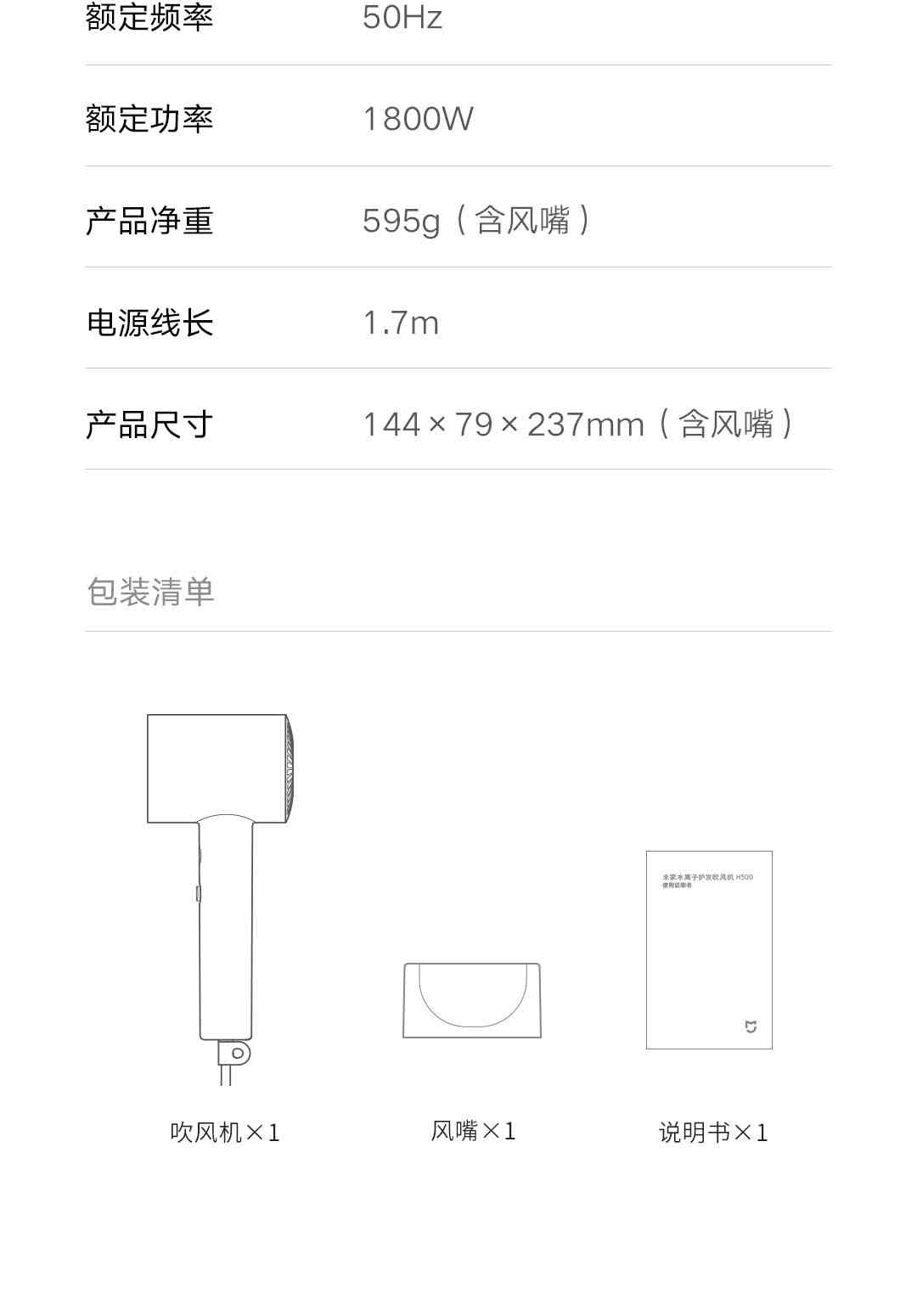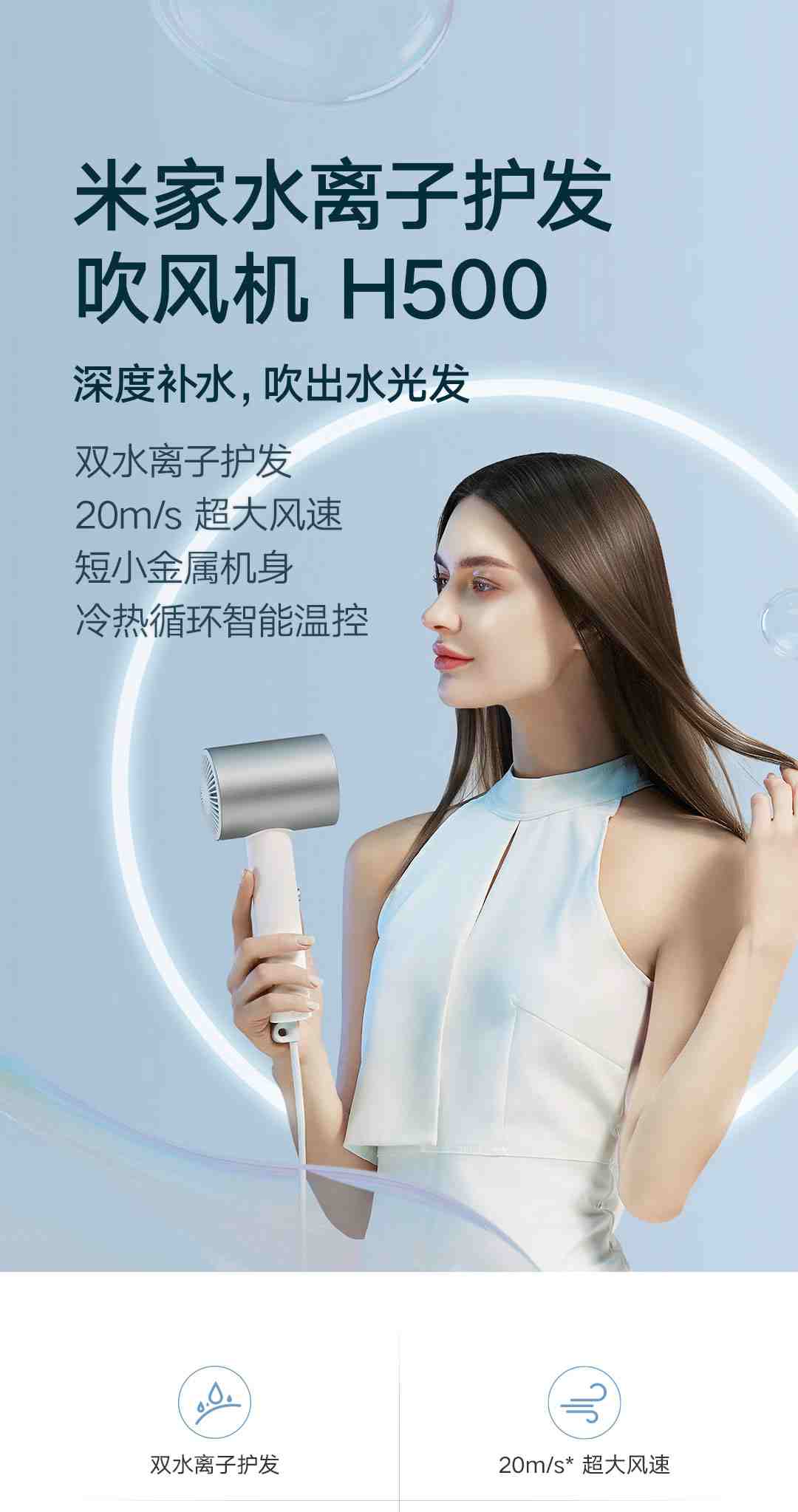 小米米家水离子护发吹风机H500 白色
