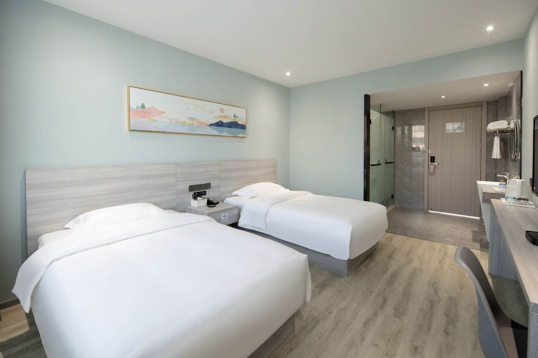 桂林店:地理位置优越,交通极为便利,酒店设有雅致大床房、雅致双床房、亲子房等多种房型客房 ,并设立有餐厅、麻将室、自助洗衣房、停车场,可满足客人多元化需求。距离桂林火车站车程约10分钟;距离桂林北站约25分钟车程;距离桂林两江国际机场约35分钟车程。酒店周边有大型购物广场桂林万象城,临近桂林市中心广场、距正阳步行街、东西巷及桂林标志性旅游景点象鼻山、两江四湖、七星公园等仅需15分钟车程。周边特色餐馆有:曾三家味馆、郭记油茶、灌阳油茶家味馆等。