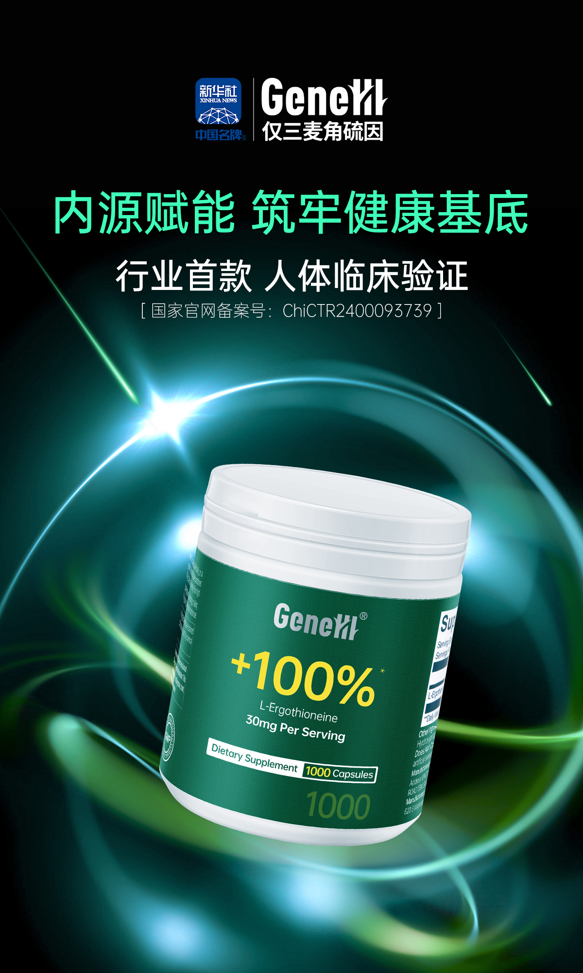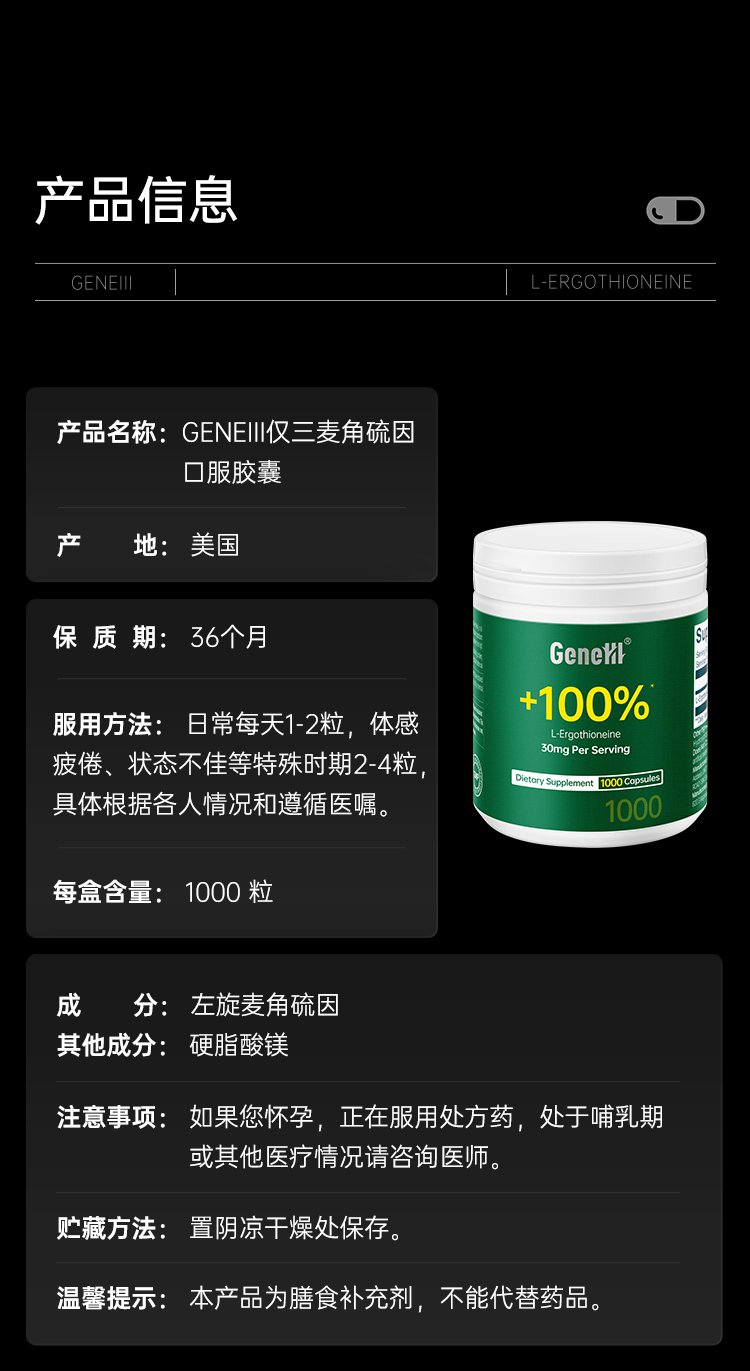 【仅三生物】GeneIII仅三麦角硫因口服胶囊99.99%高纯度30mg/粒*1000粒