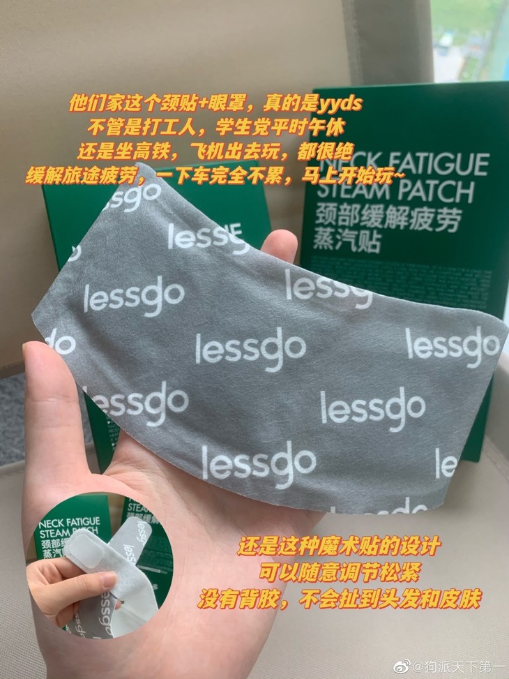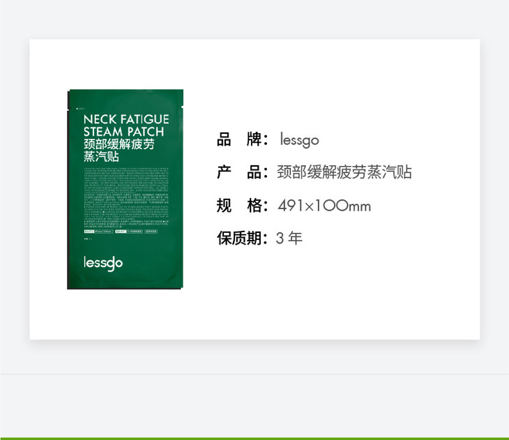 //【lessgo利事多颈部缓解疲劳蒸汽贴】1盒39.9再送4片眼罩!3️⃣小时持续发热,温和不烫伤✅ ✅人体工学设计,贴合肩颈曲线,舒适无紧勒感 弹力无纺布,透气亲肤,散热均匀✅