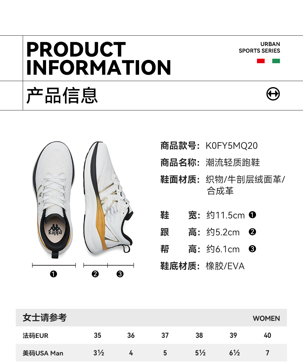 Kappa卡帕背靠背运动鞋男款新款夏季网面透气跑鞋情侣款运动鞋女K0FY5MQ20