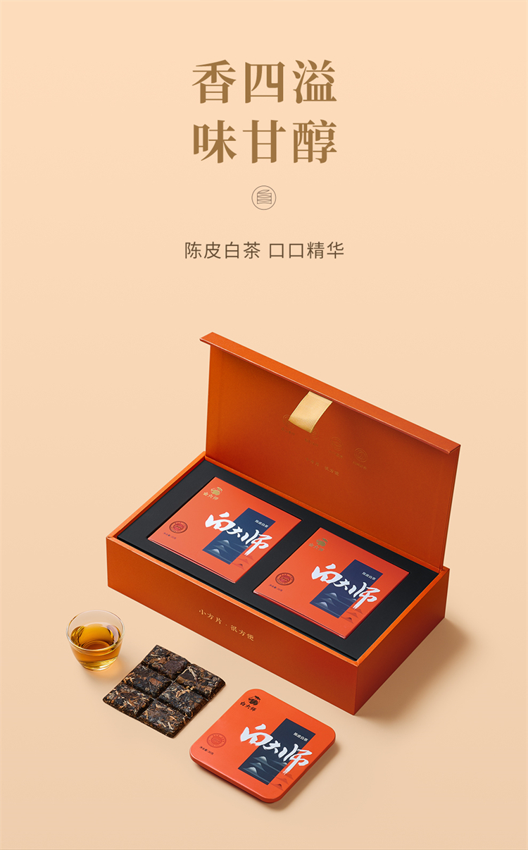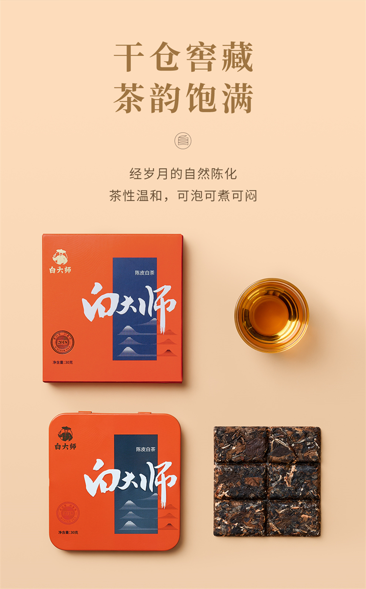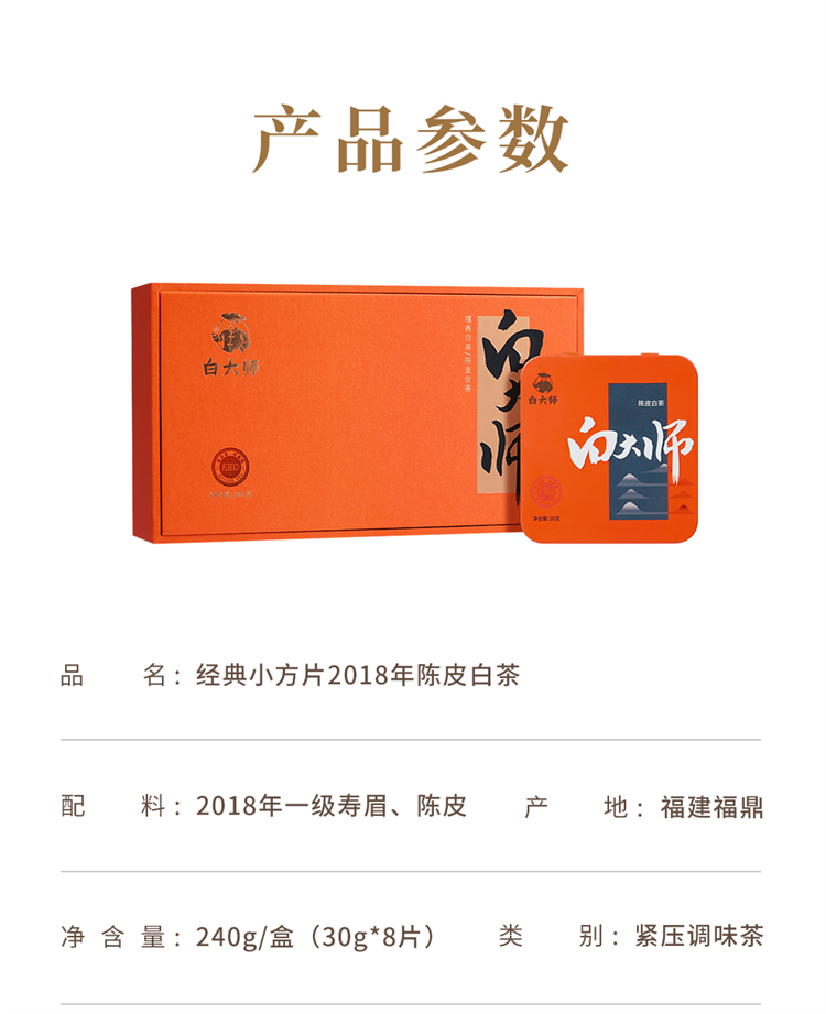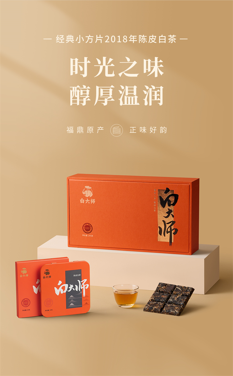 白大师福鼎高山老白茶小方片2018年陈皮白茶寿眉紧压茶叶正宗240g