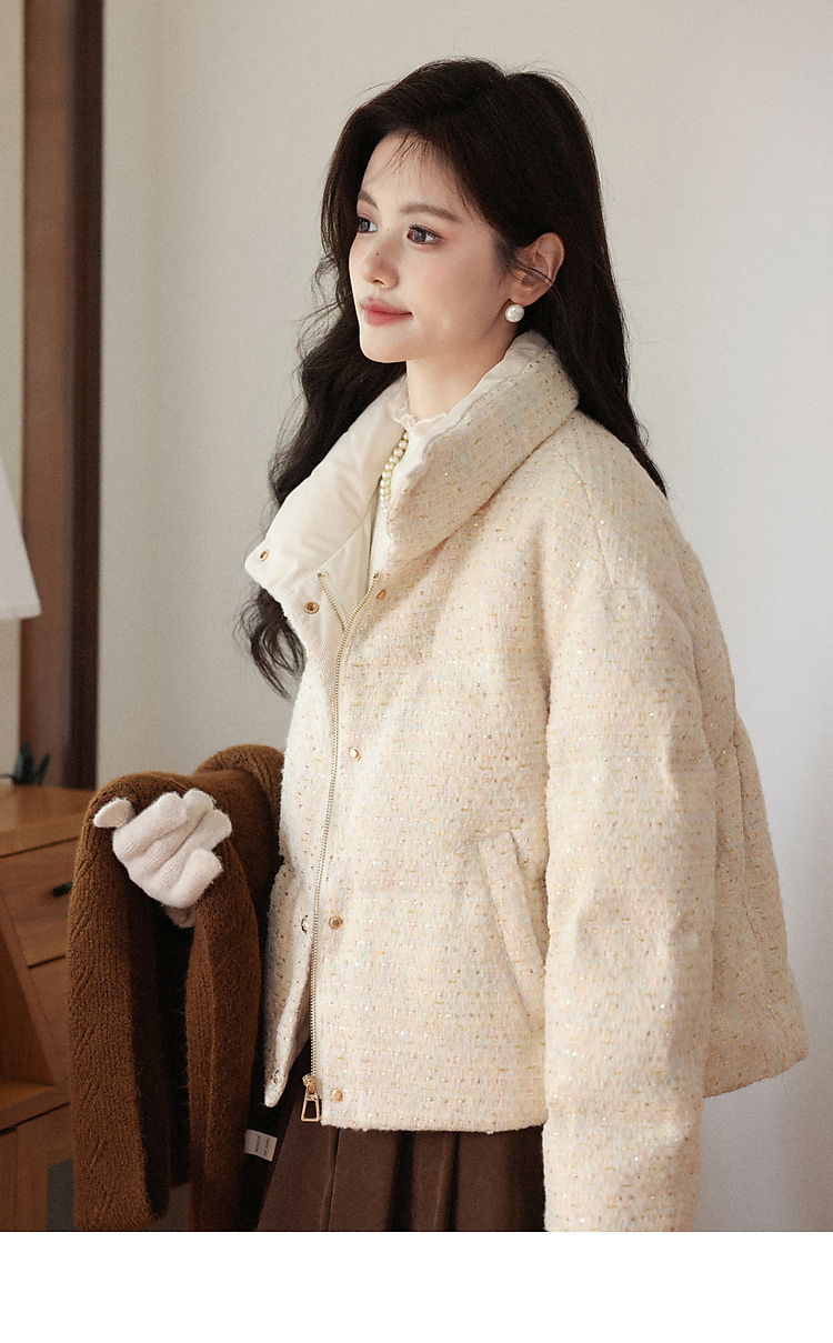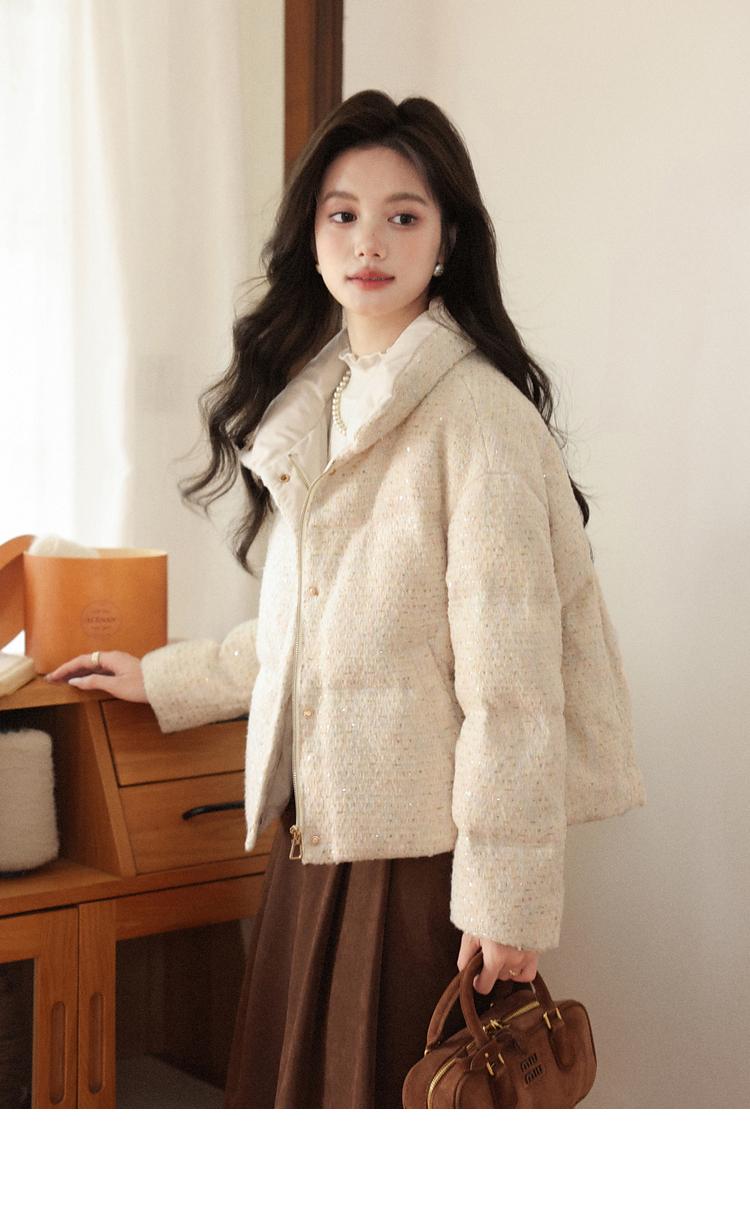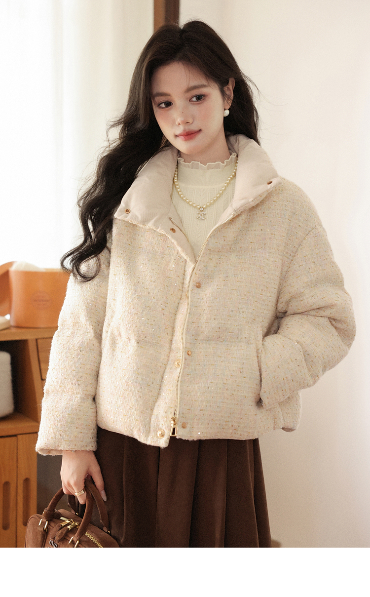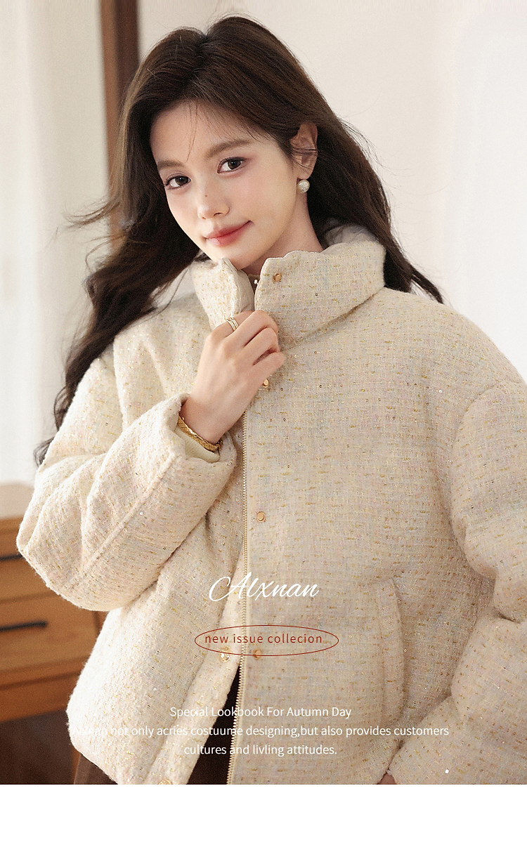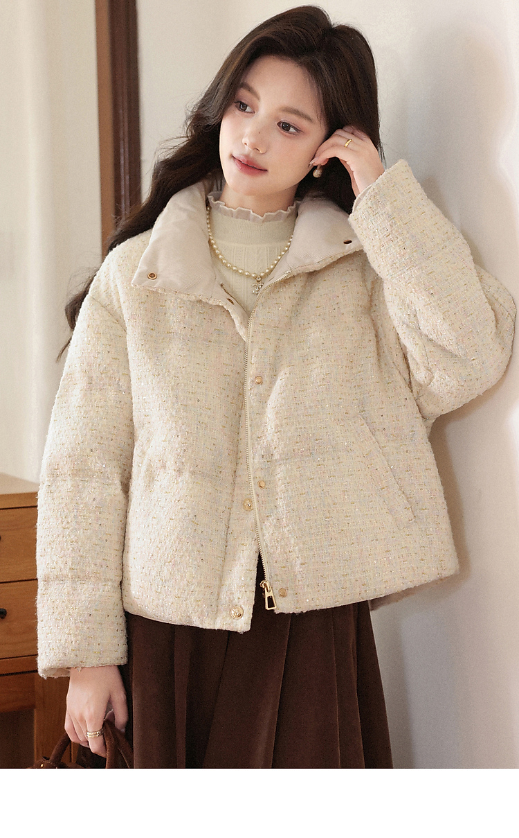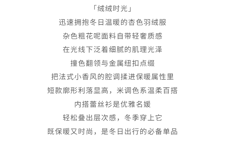 鹿向南「绒绒时光」小香风杏色90鸭绒羽绒服女秋冬小个子保暖外套