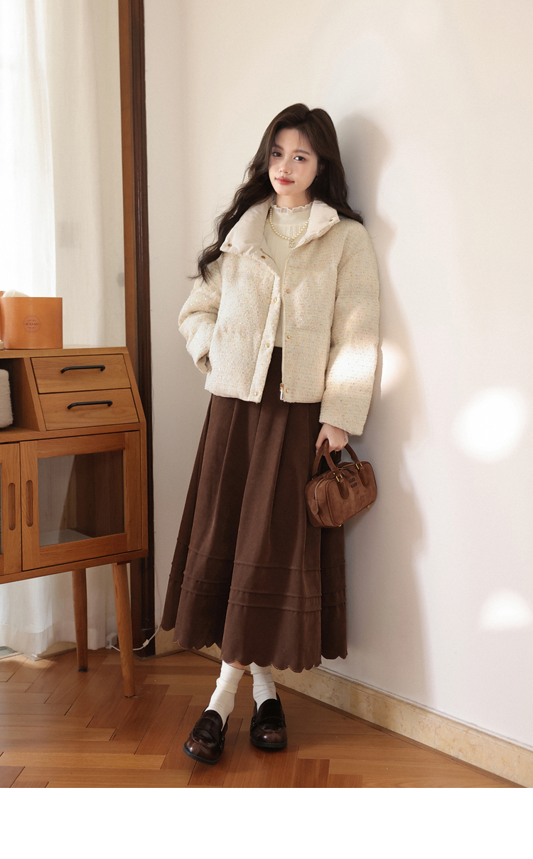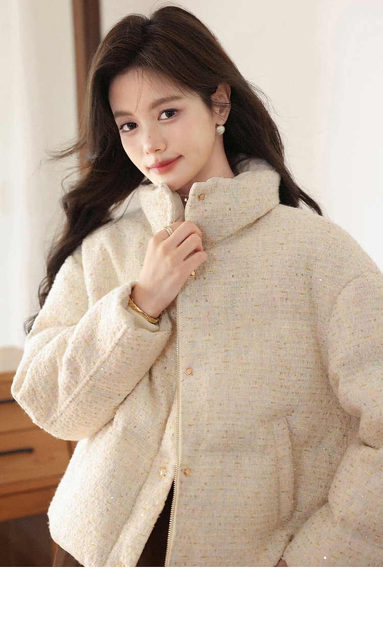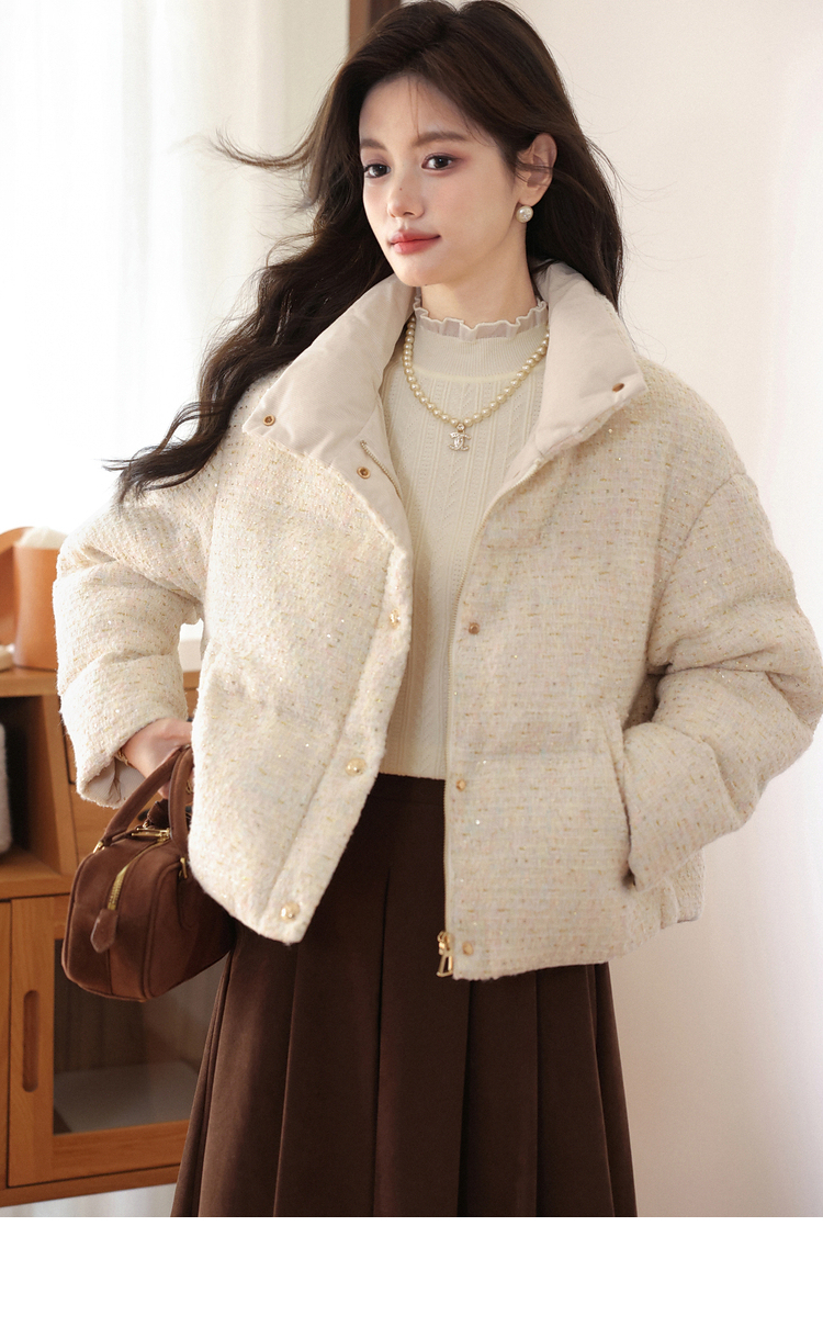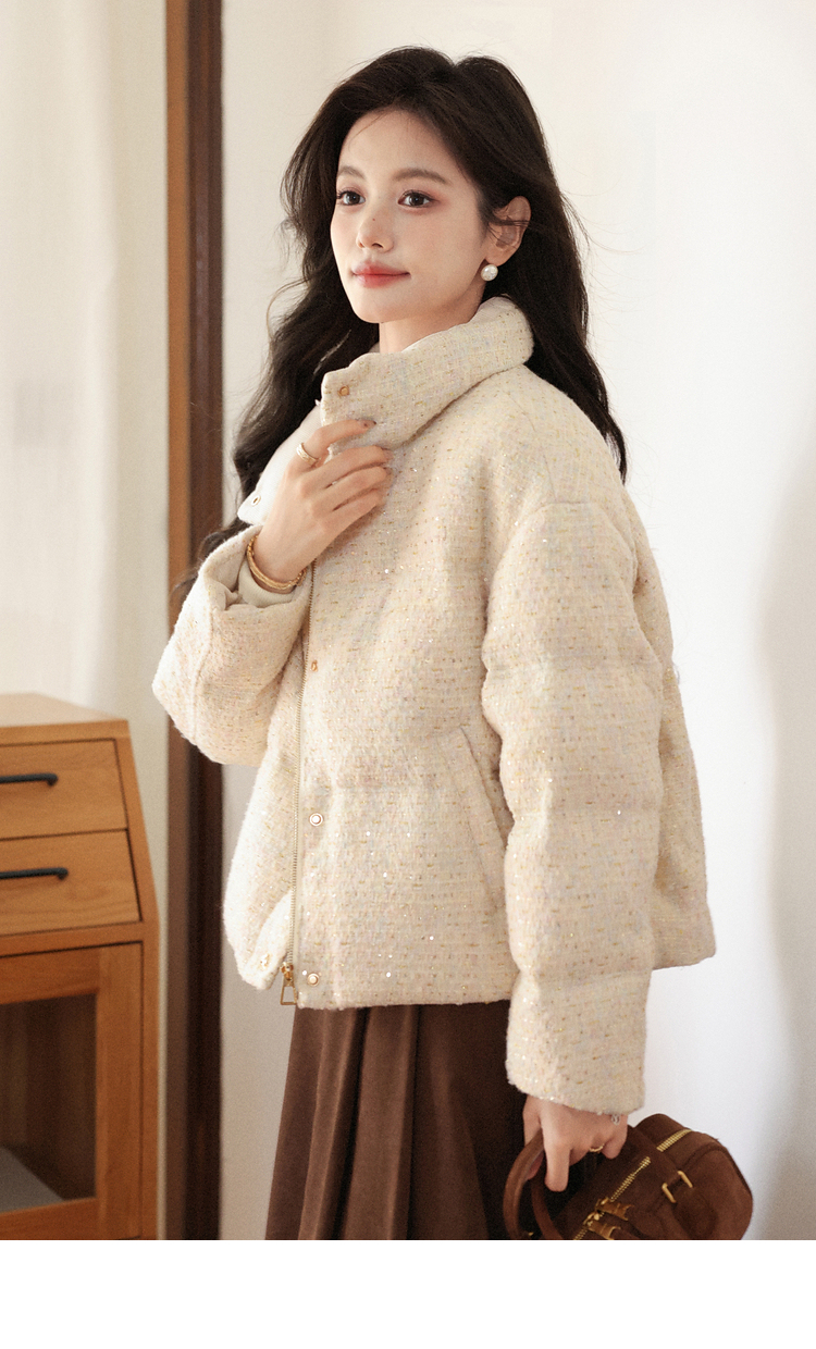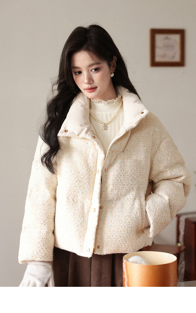 鹿向南「绒绒时光」小香风杏色90鸭绒羽绒服女秋冬小个子保暖外套