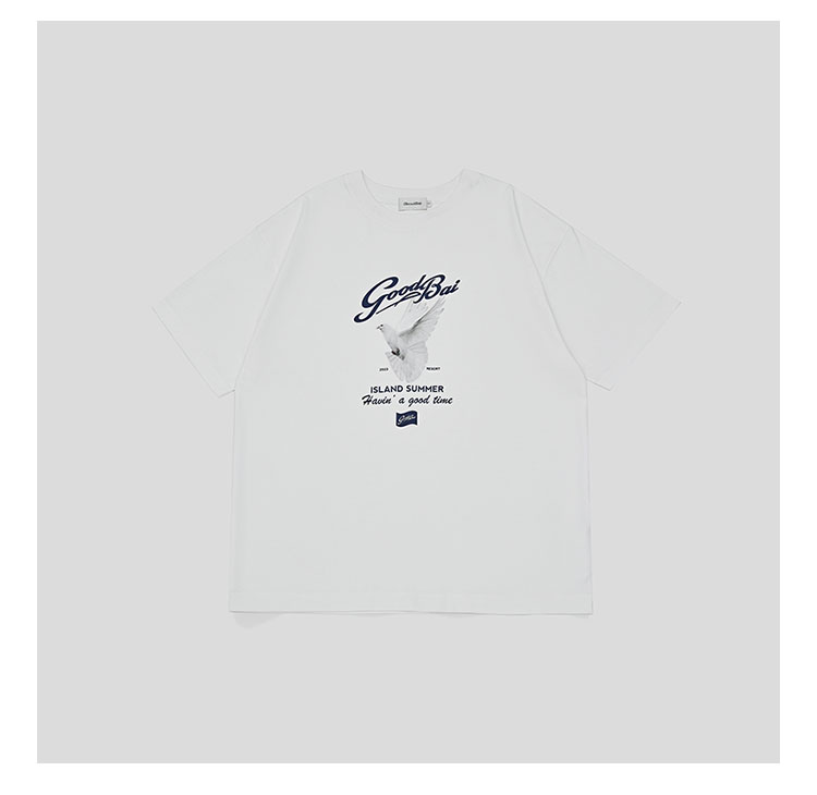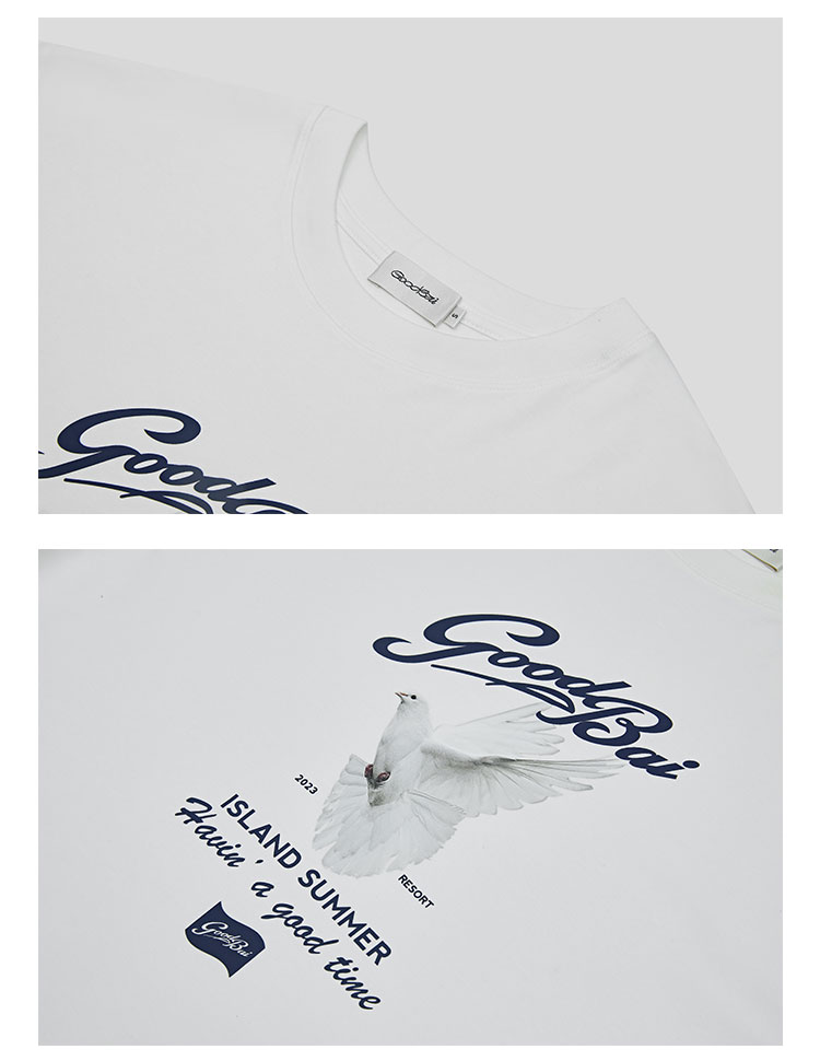 GOODBAI夏日白鸽印花oversize短袖T恤
