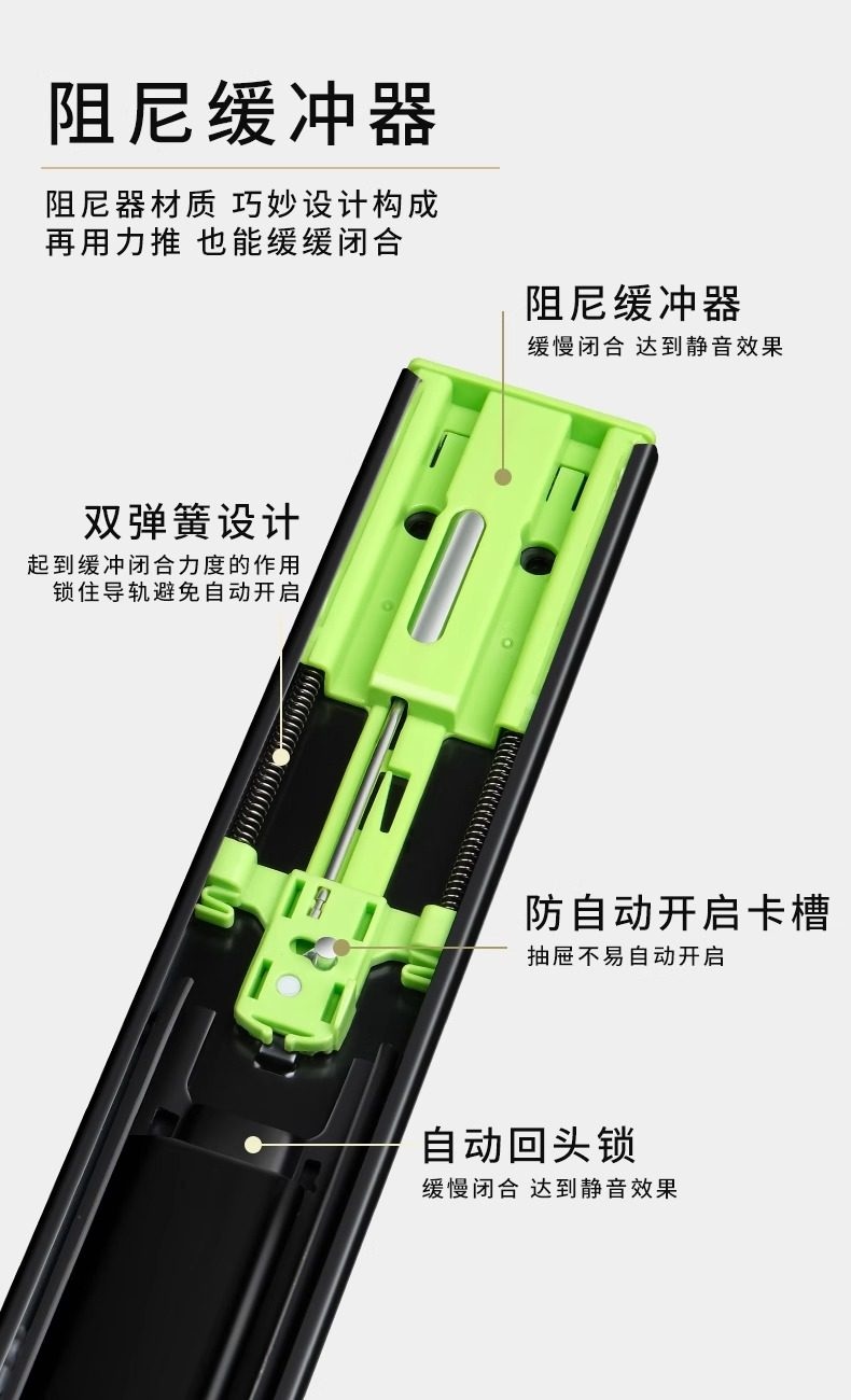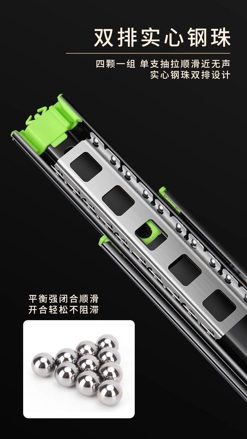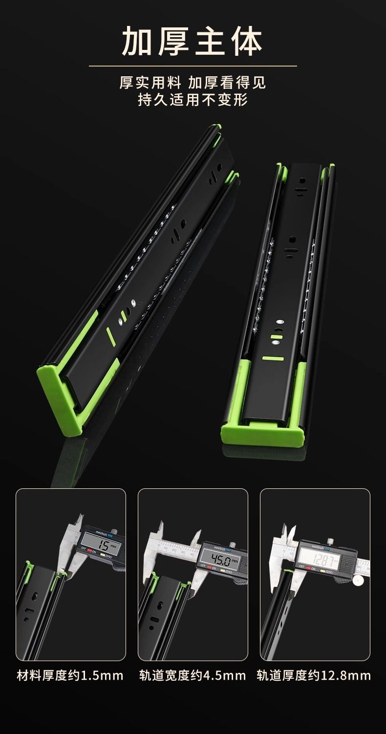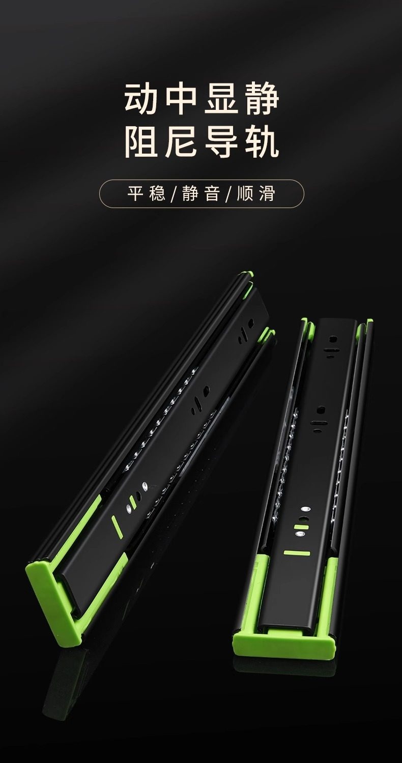 【高端款】雅佰龙 抽屉轨道滑轨 加厚阻尼缓冲静音三节轨不锈钢侧装橱柜滑道导轨