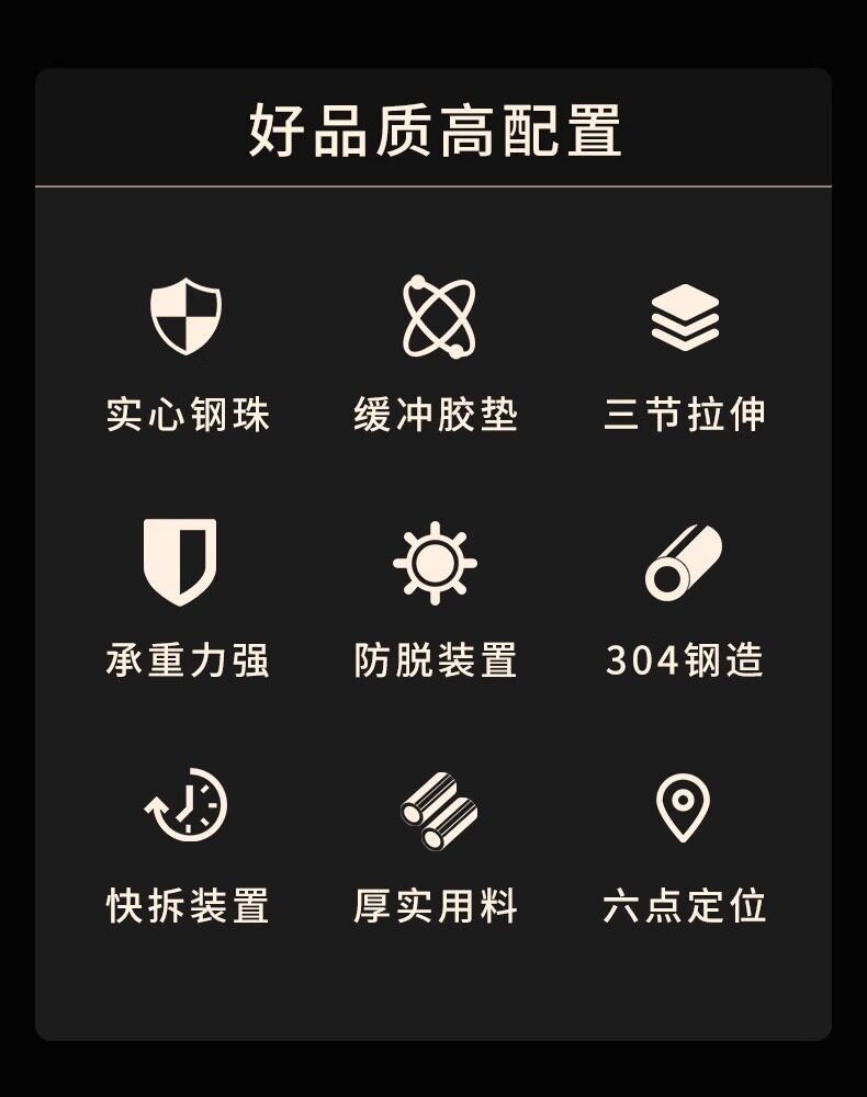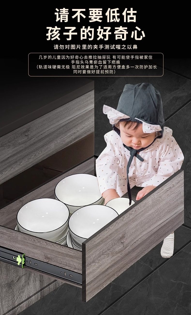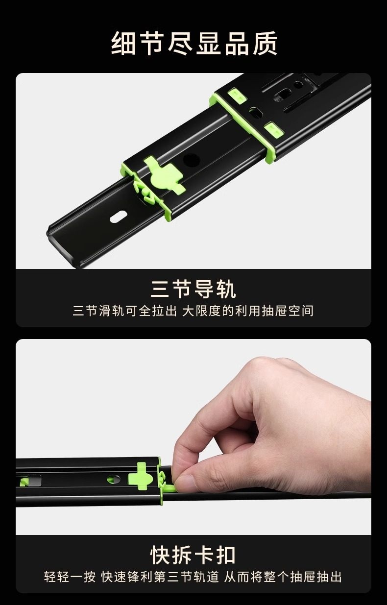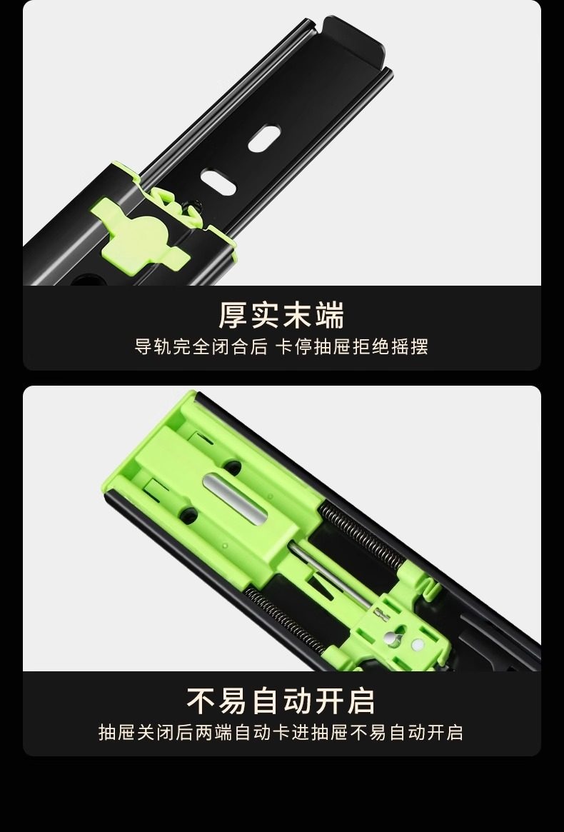 【高端款】雅佰龙 抽屉轨道滑轨 加厚阻尼缓冲静音三节轨不锈钢侧装橱柜滑道导轨