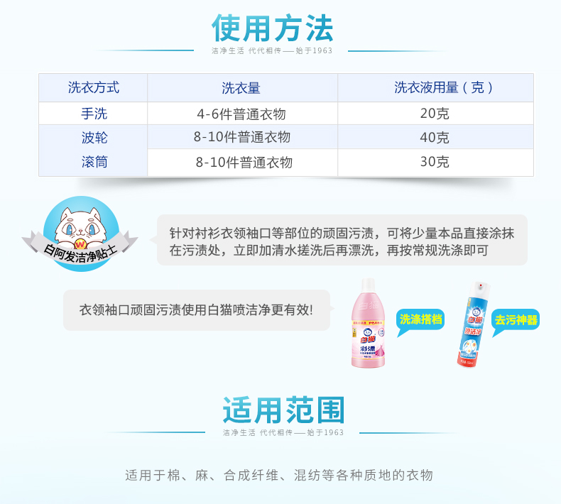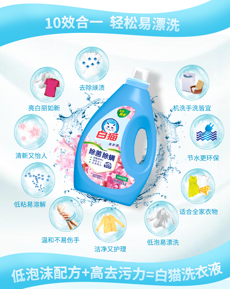 白猫除菌除螨无磷洗衣液新瓶2kg—rxs