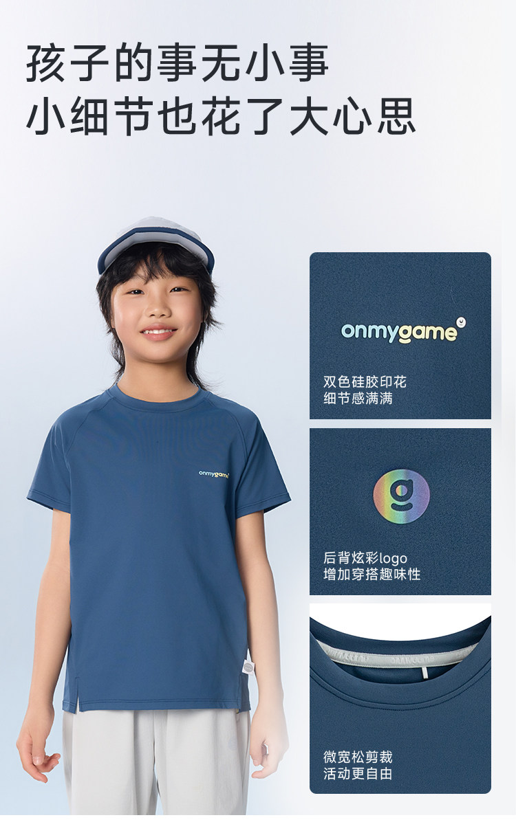 onmygame【轻凉风爽身衣 】男女童同款运动短袖