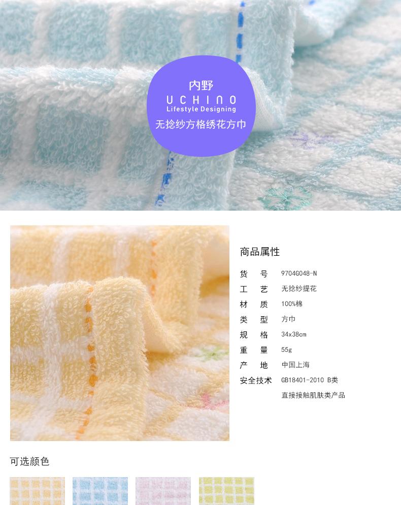 内野XS 无捻纱方格绣花方巾