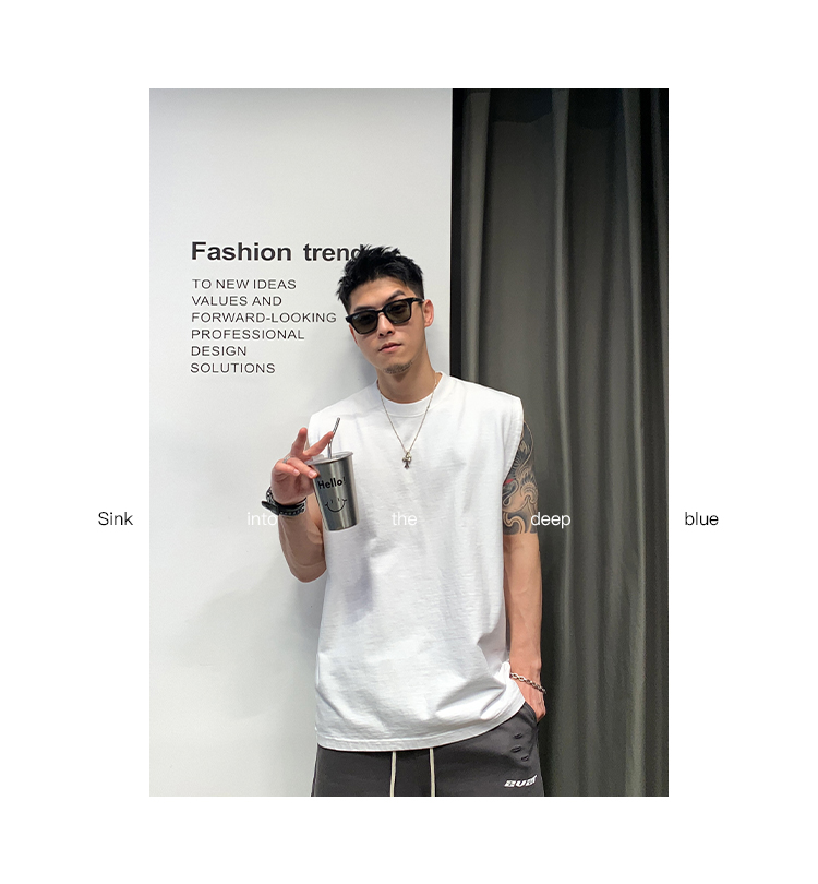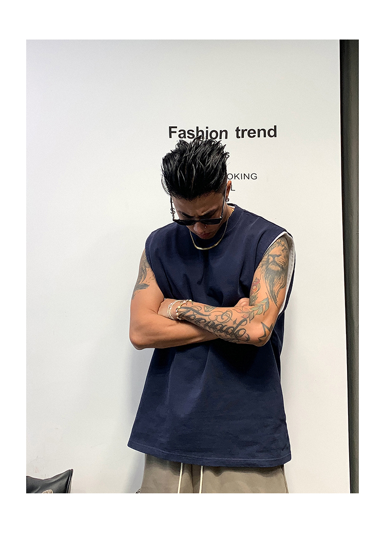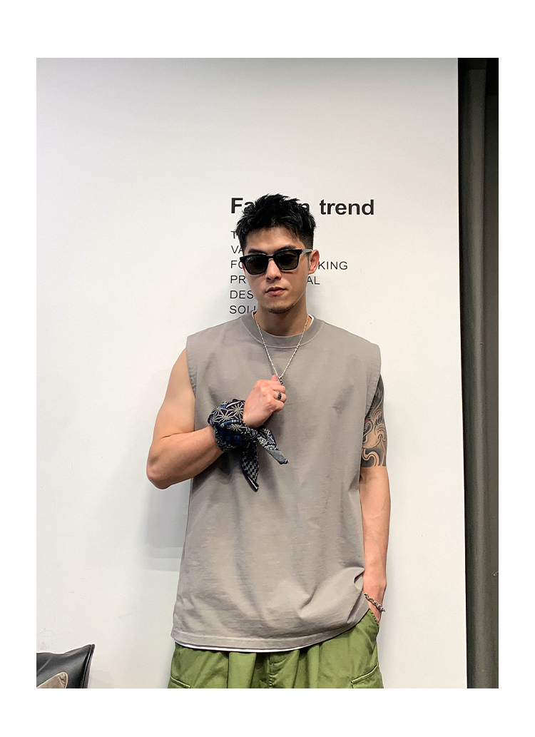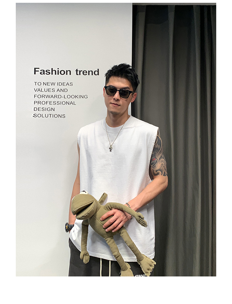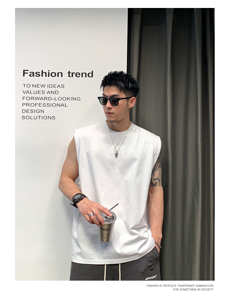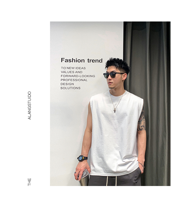 徐太浪400g重磅纯棉白色背心男夏季潮牌美式运动无袖坎肩t恤上衣