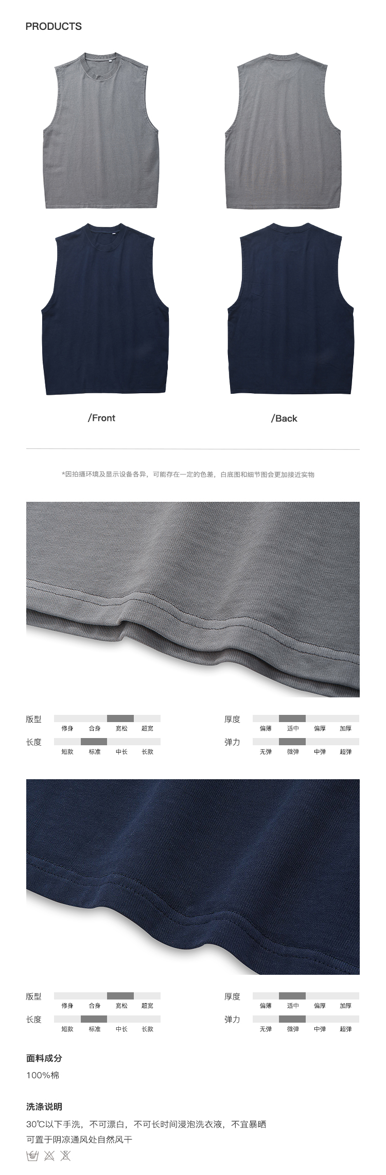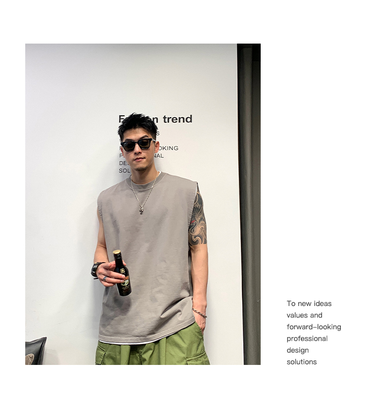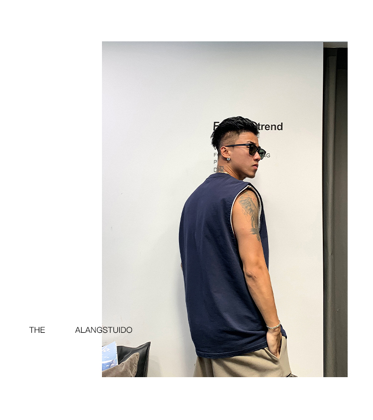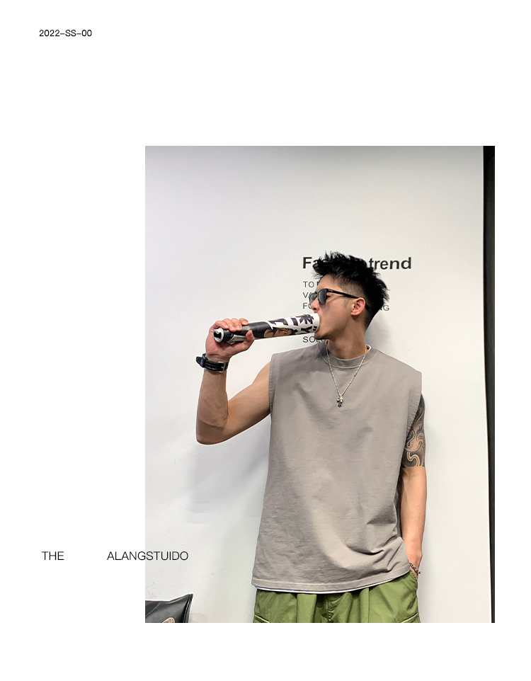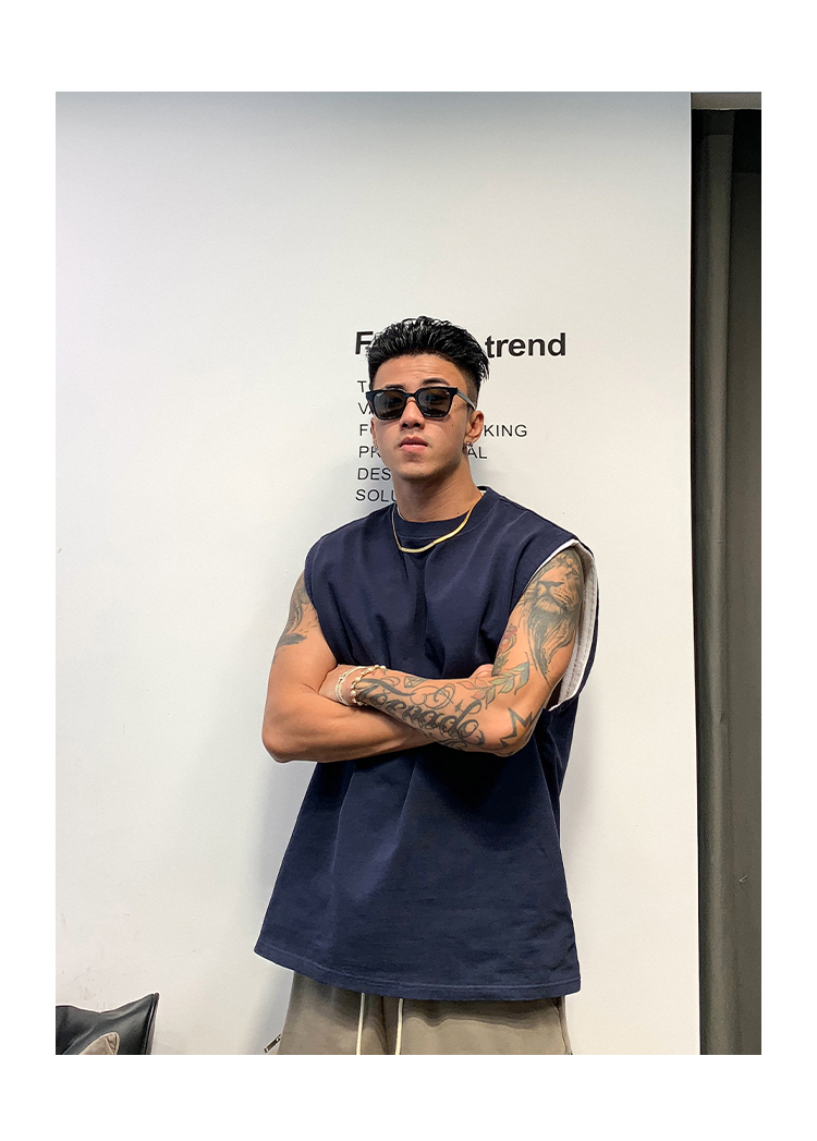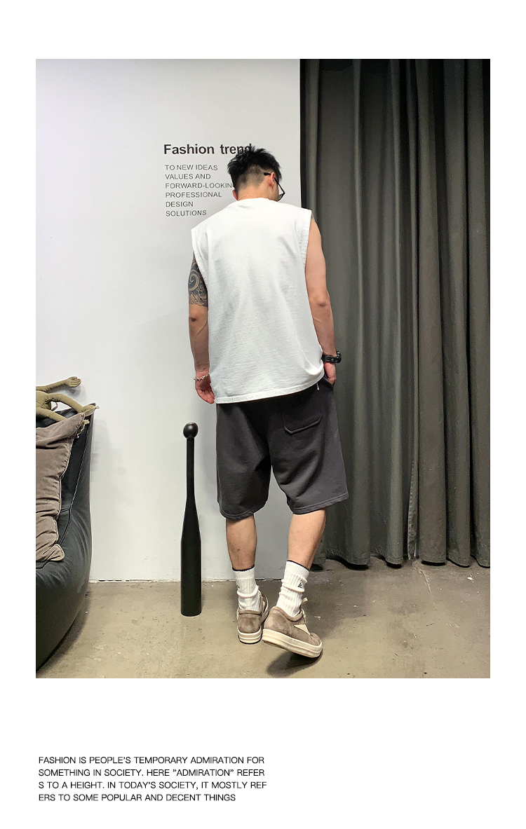 徐太浪400g重磅纯棉白色背心男夏季潮牌美式运动无袖坎肩t恤上衣