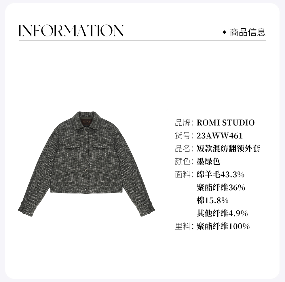 ROMI STUDIO“格雷高智”50%羊毛肌理短款翻领长袖休闲外套23AWW461