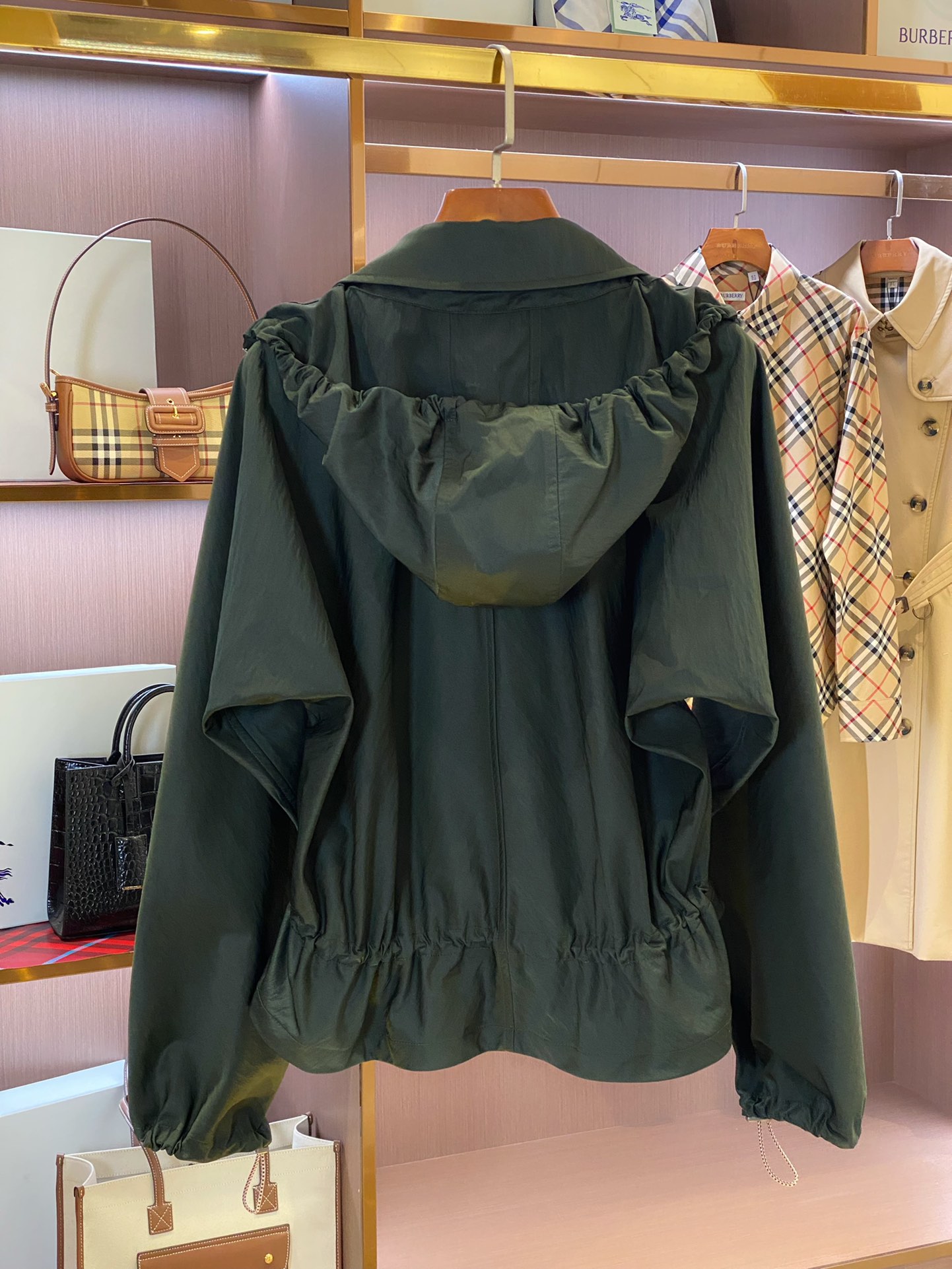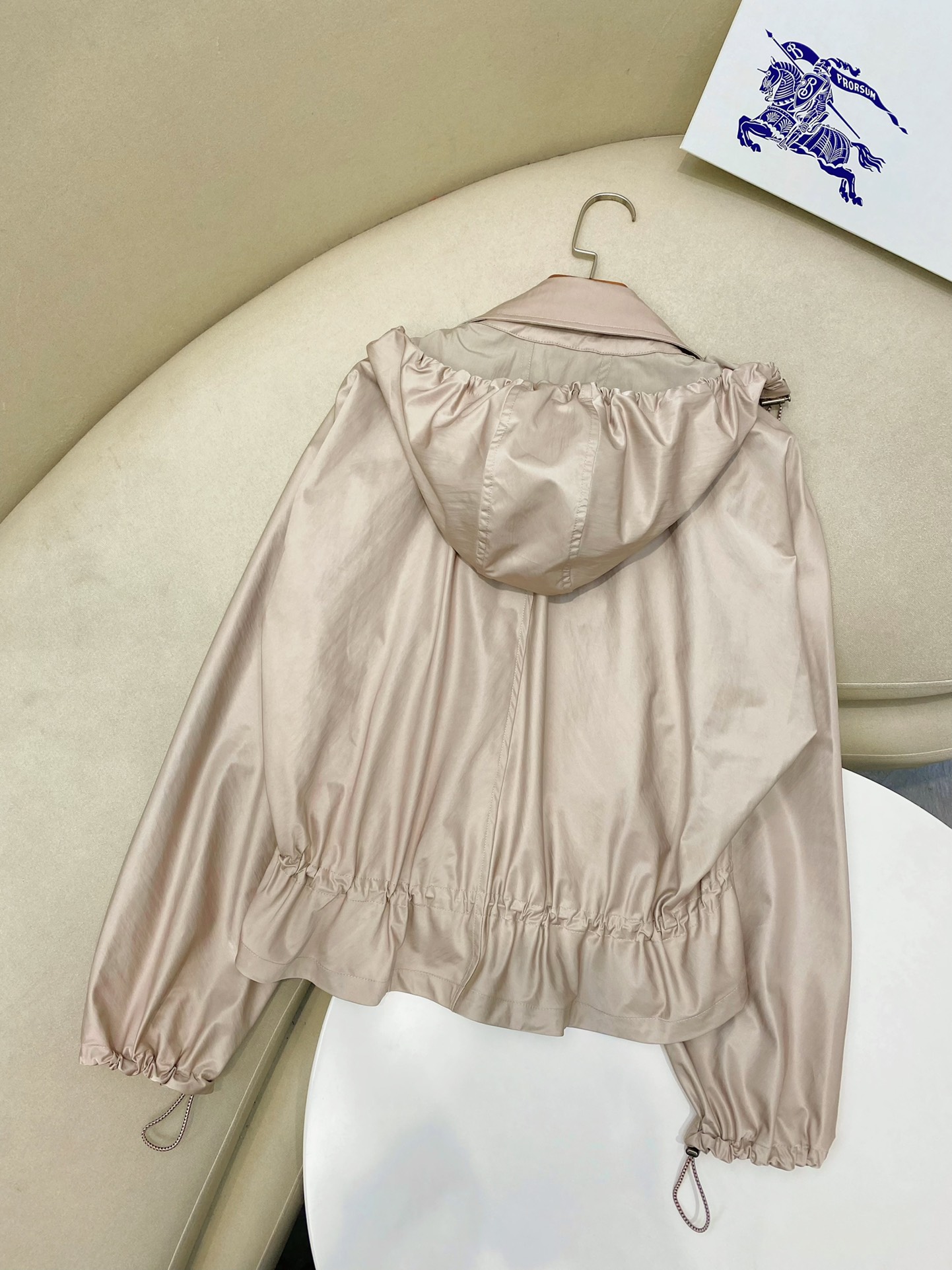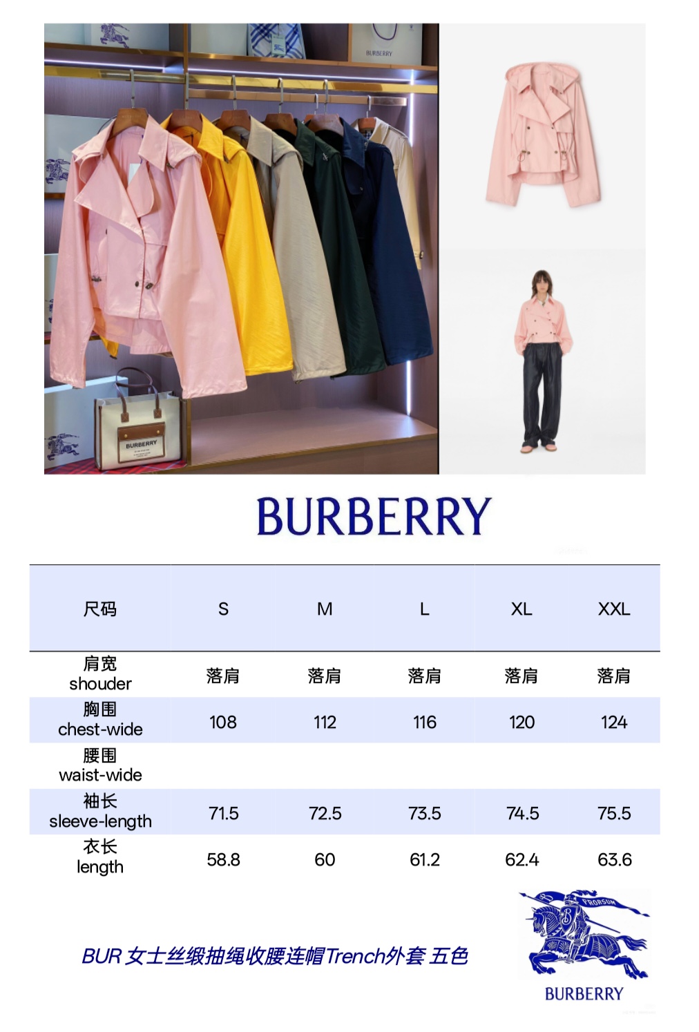 BUR 女士丝缎抽绳收腰连帽Trench外套 五色 王牌渠道 秒杀市面上一切版本 只能说根本就不是一个级别的存在 不管是材质还是细节还原度以及工艺制作方面 不惧任何挑战,只为给大家奉献绝妙产物 轻便的连帽外套,选用丝绸面料制成,设计有可调式抽绳连帽和收腰,连帽采用格纹内衬,经典大气!双排扣开襟设计,连帽、腰部,袖口都有抽绳设计,连帽可拆卸,完美提高整体高度。完美的彰显了BUR品牌的存在感,极具辨识度搭配经典的常规版型落设计! 在炎热夏天不仅能为你阻挡太阳!不让紫外线晒黑皮肤、更能完美透气速干!冬天也能防雨防风让你无惧出行!每一处都是非常独特的,防晒,防风,轻便,品质极端,细节华丽!! 上身自然而然的具备那种大方简约之美衬托出精致有型的高档气息感,无论辨识度还是个性感都是非常的到位,轻松穿搭出小姐姐对于时尚的追求!! 搭配方面也是完美穿搭效果,完美的符合各种穿搭场合的所需。极为非凡,档次与魅力更是极为的出色亮眼,更能够彰显品牌规格与你对于时尚的追求!! 颜色:粉色/秋梨黄/卡其色/页岩色/海军蓝 码数:S/M/L/XL/XXL