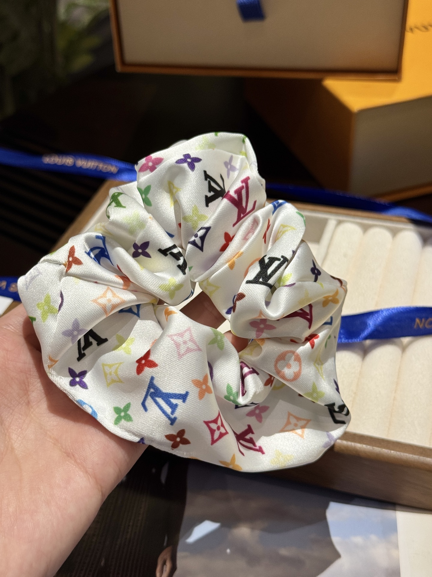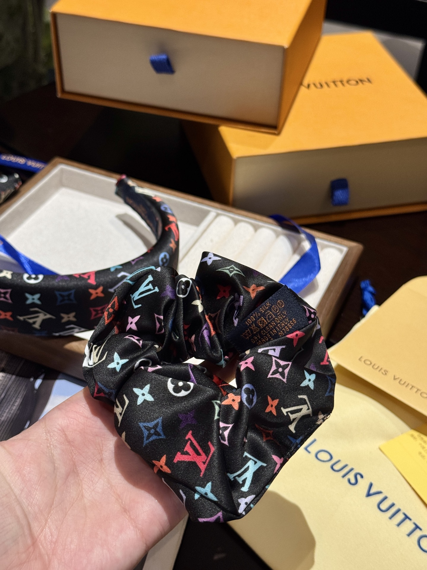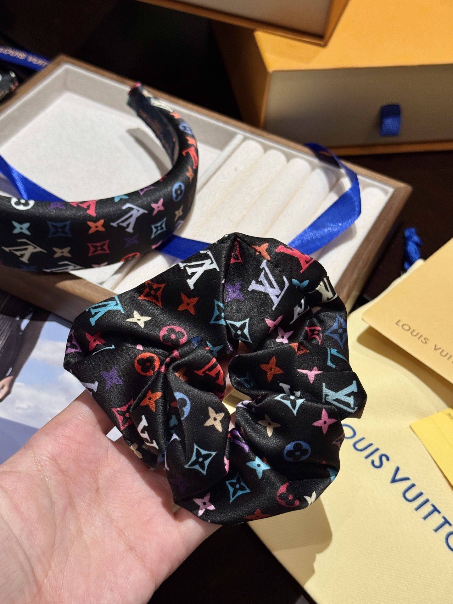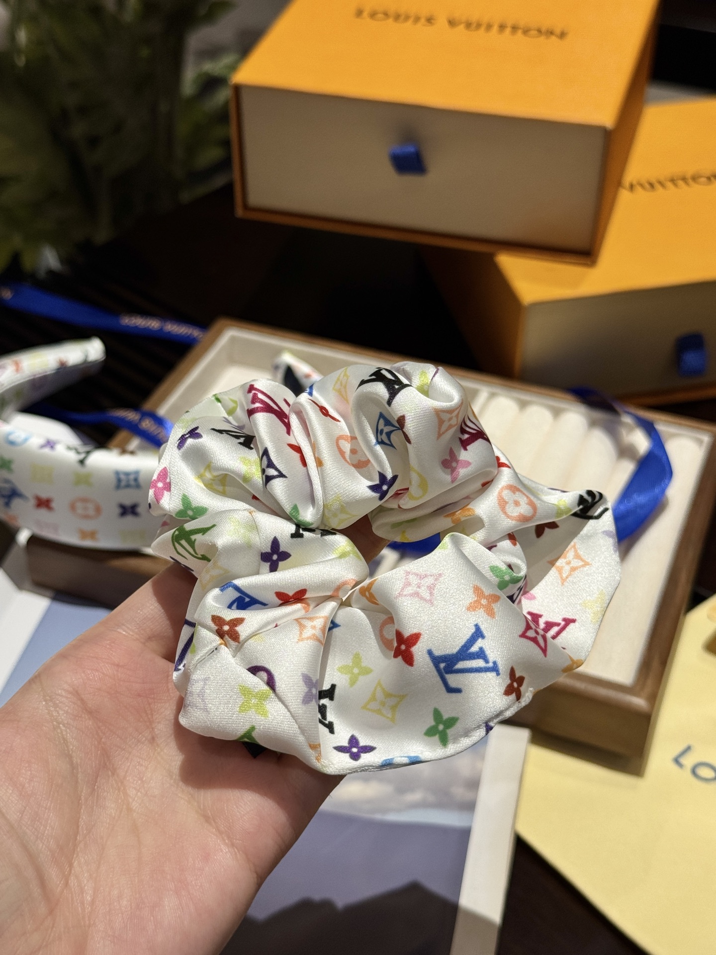 三彩真是太复古可爱了,发箍➕大肠发圈,人见人夸的程度,实物比照片可爱100倍!全套礼盒包装送人自留都很ok!