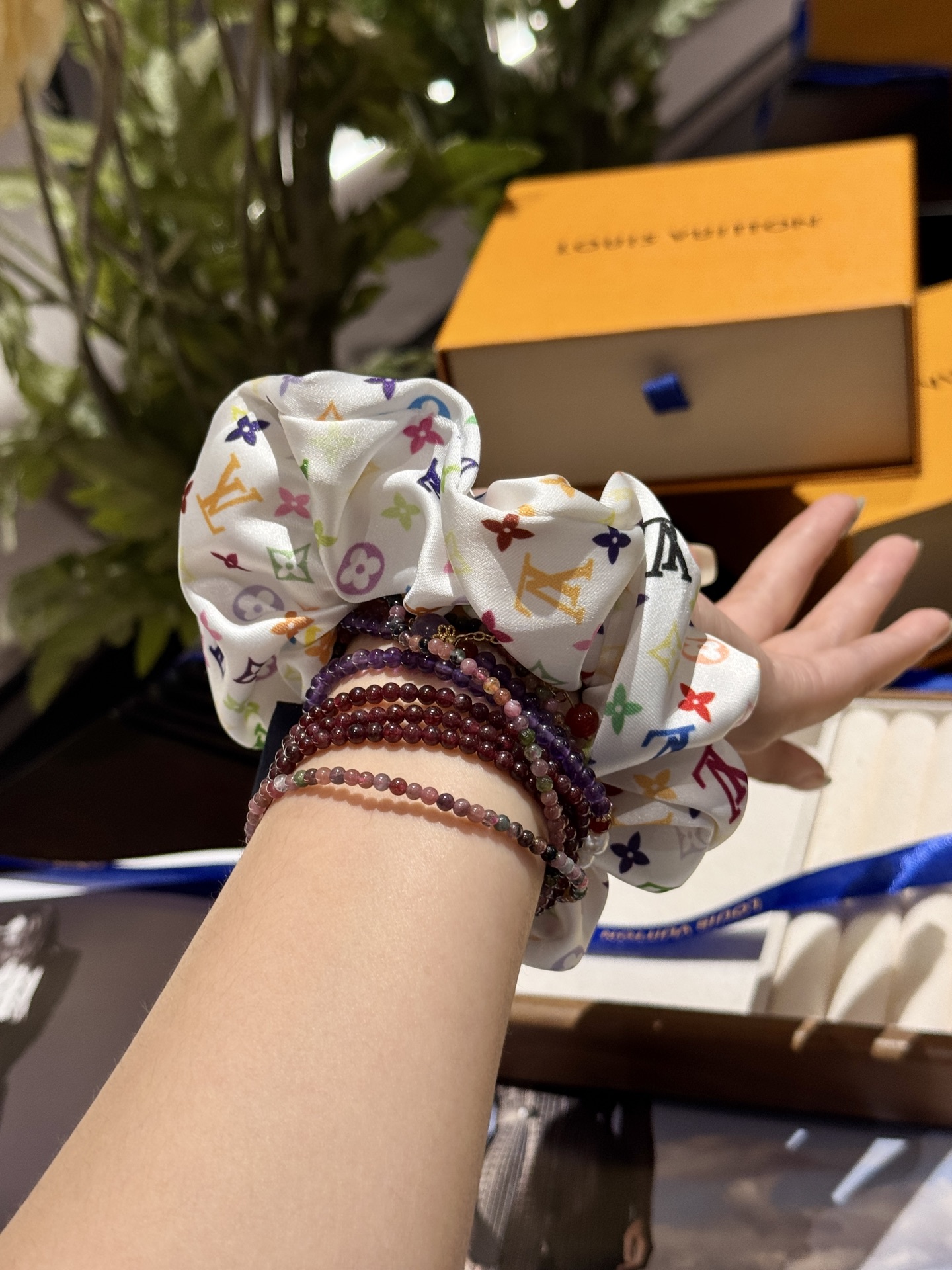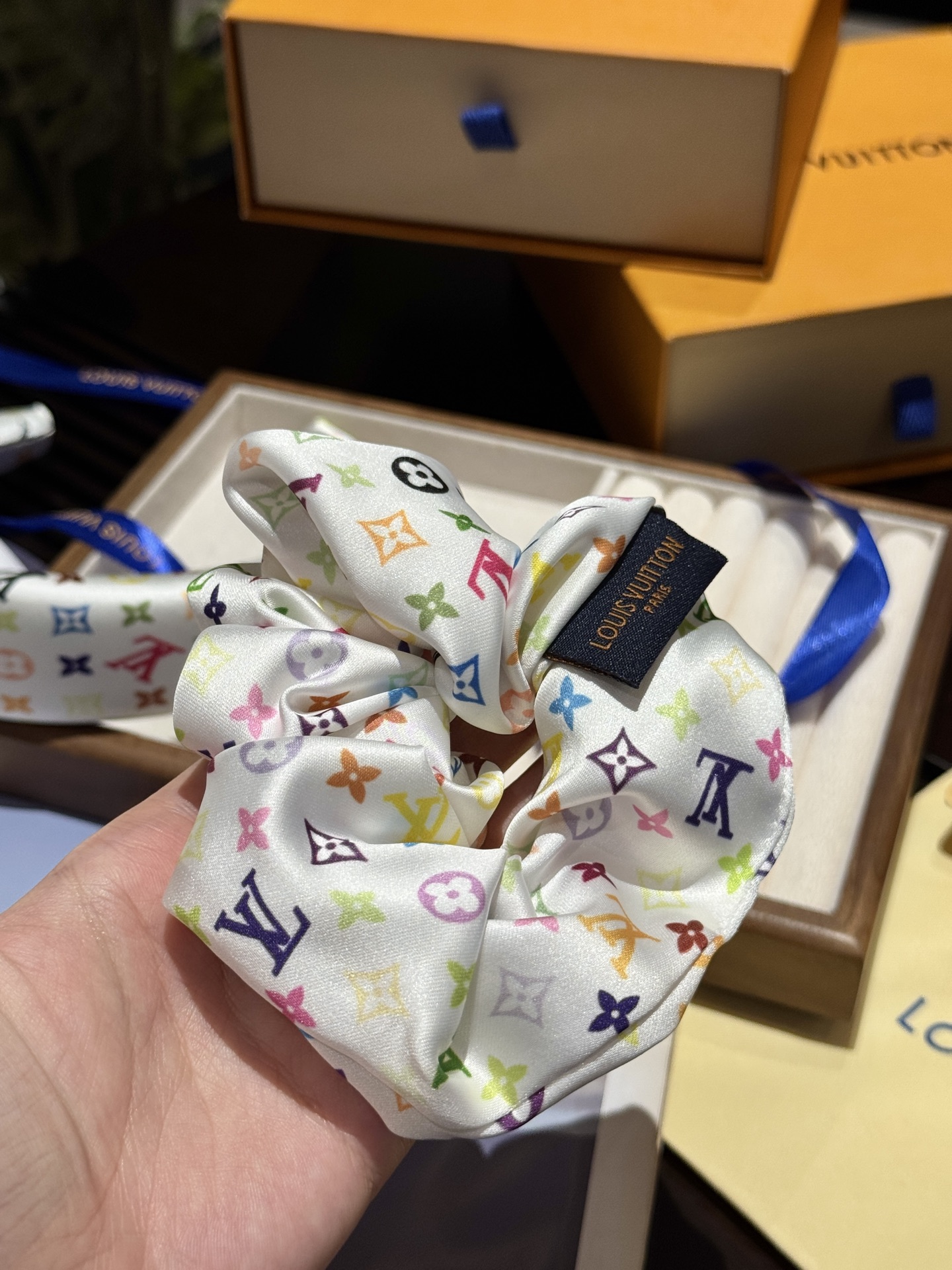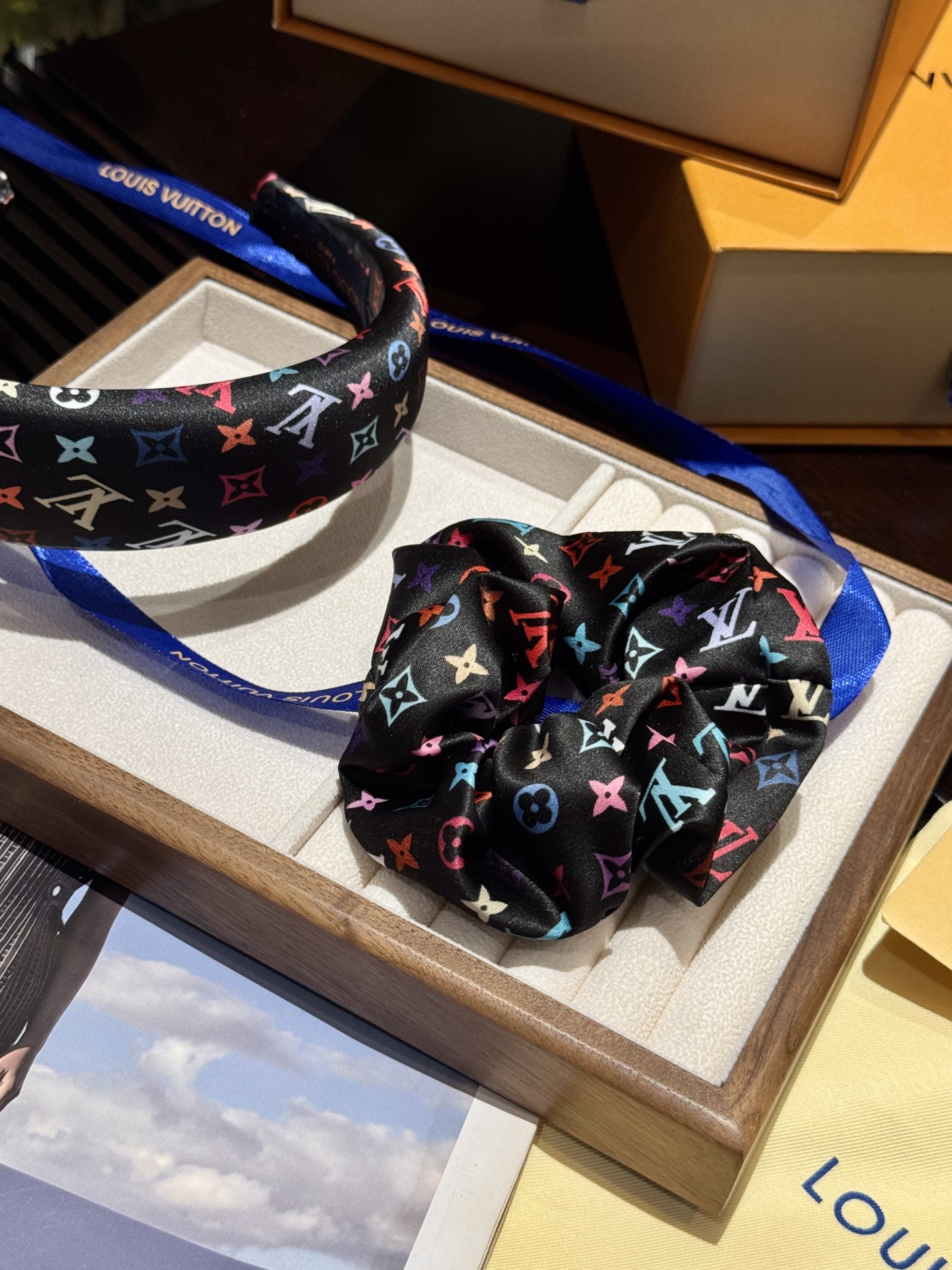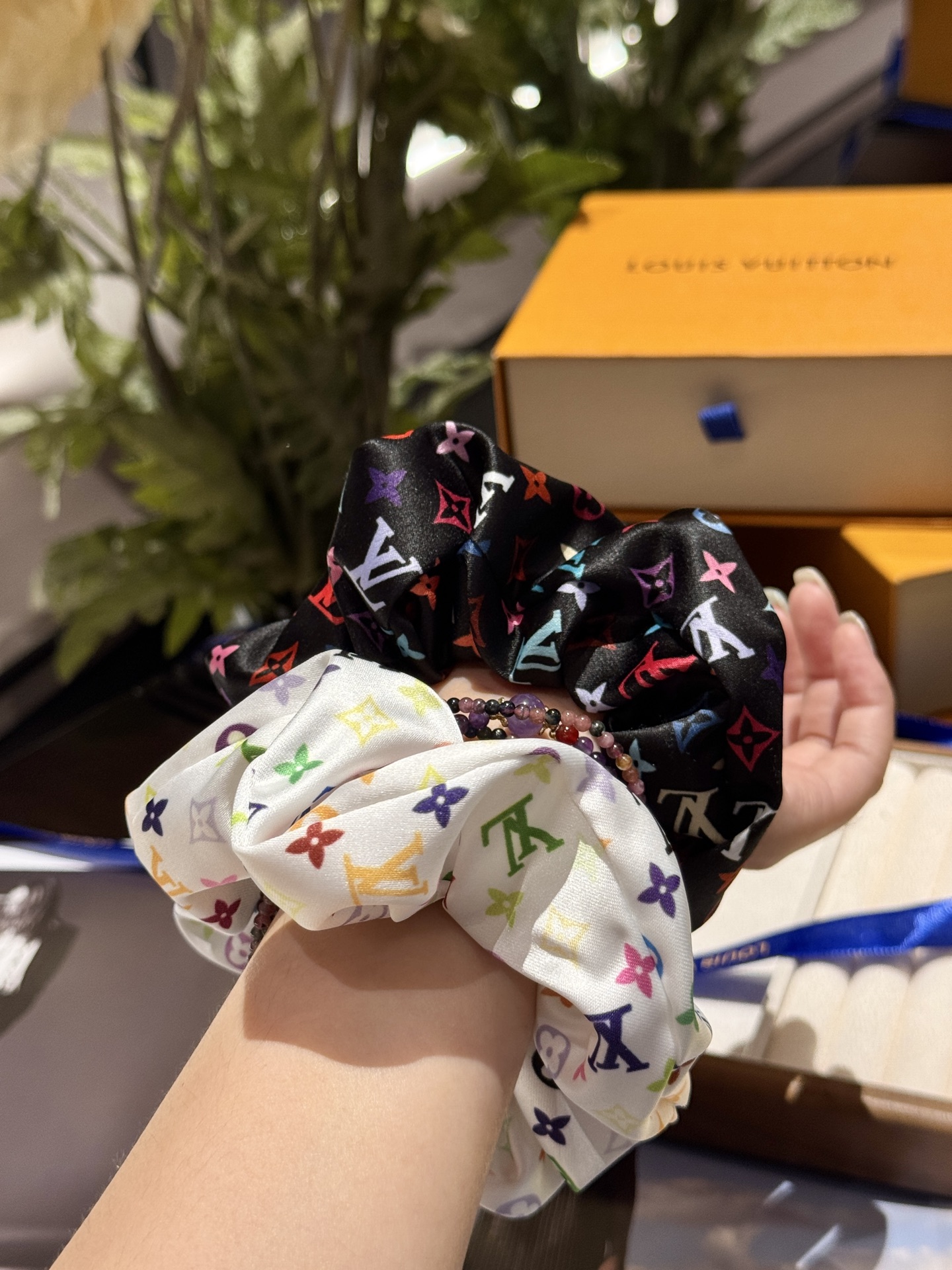 三彩真是太复古可爱了,发箍➕大肠发圈,人见人夸的程度,实物比照片可爱100倍!全套礼盒包装送人自留都很ok!