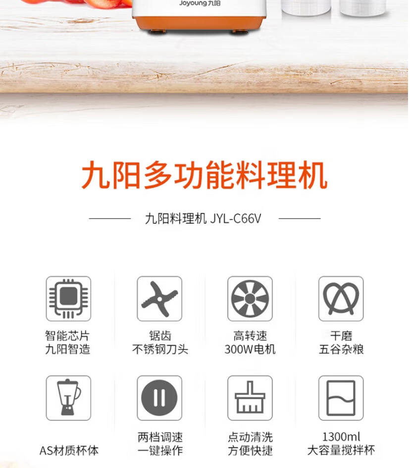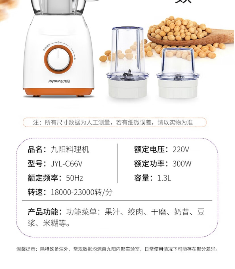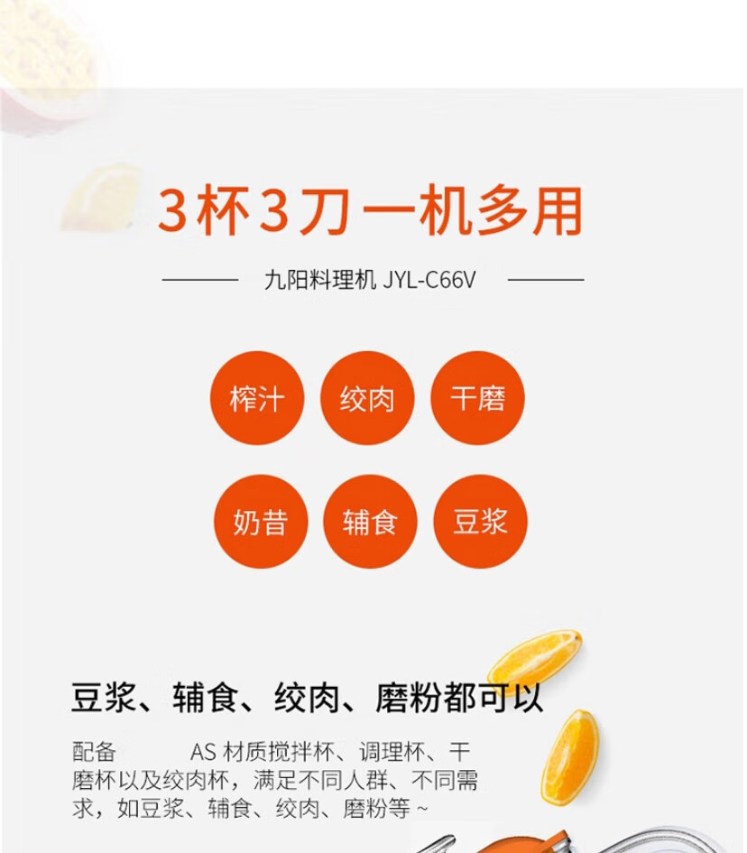 九阳(Joyoung)多功能料理机电动辅食搅拌机果汁机 JYL-C66V