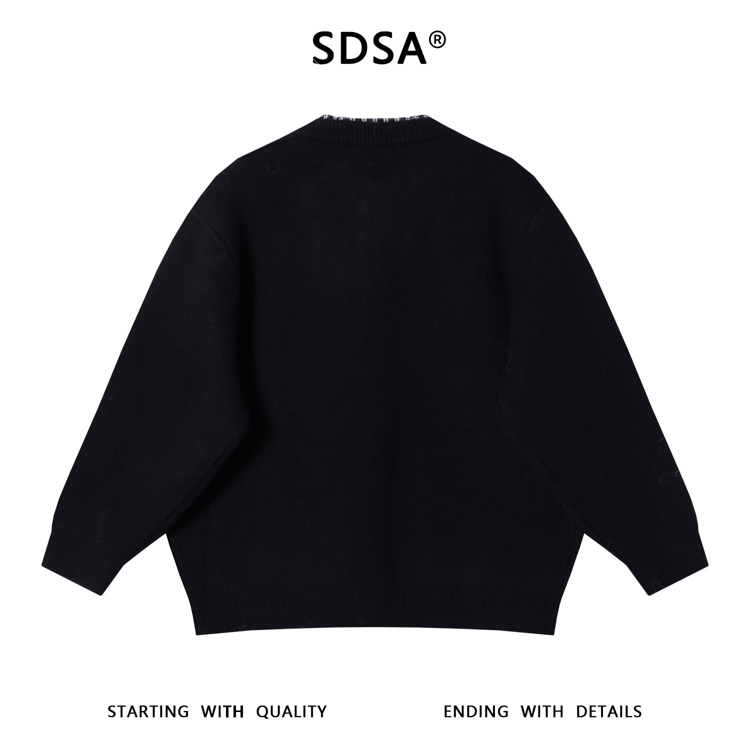 250130SDSA男士秋冬新款痞帅男装潮牌拼接假两件毛衣纽扣针织衫开衫百搭