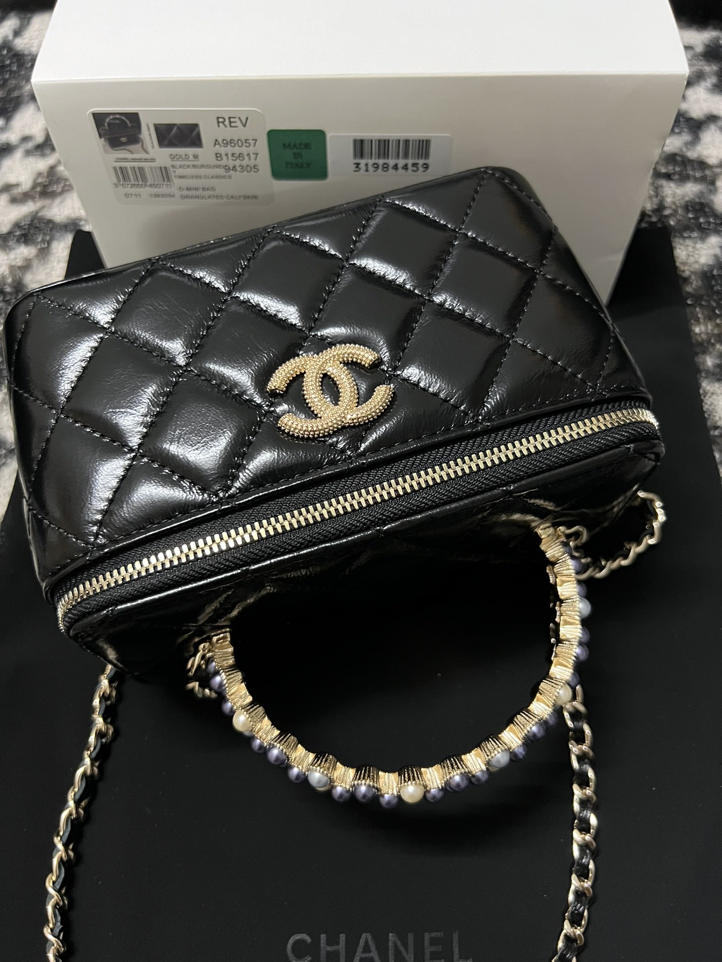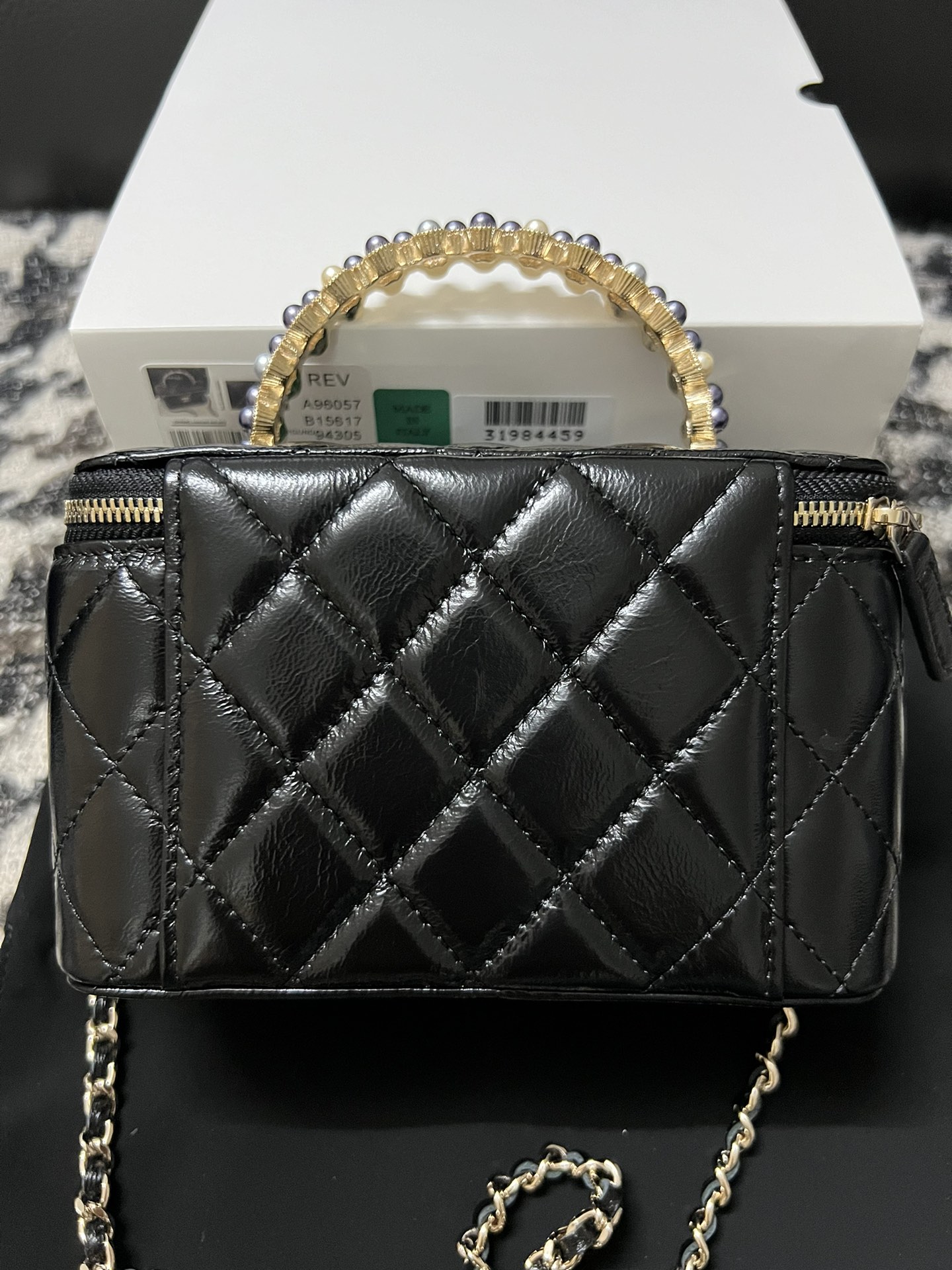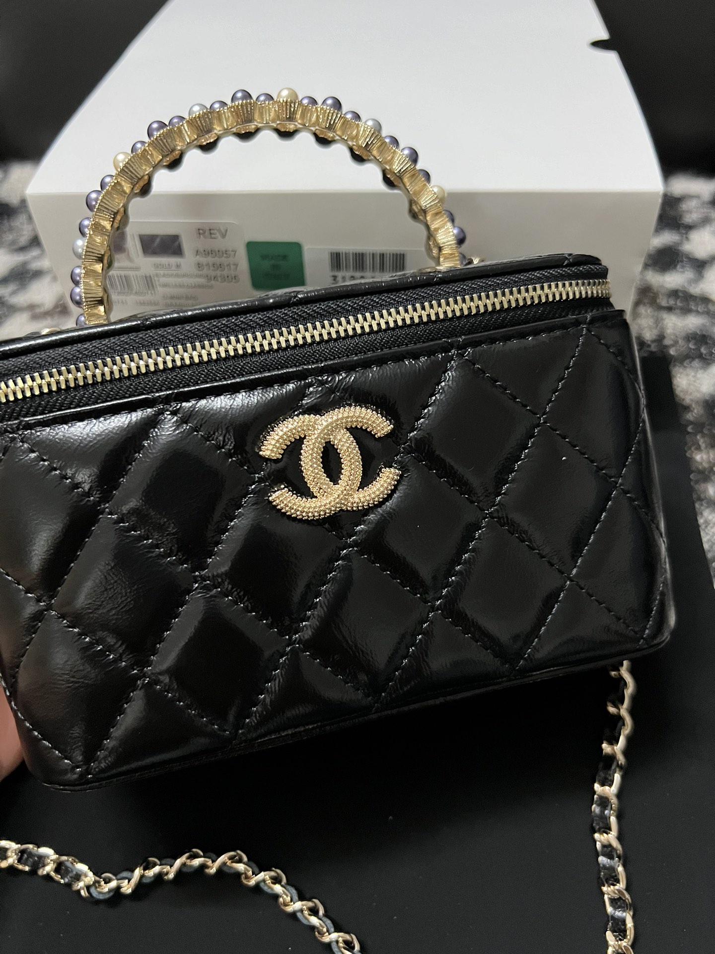 新品到货?????????????? ???????????? 珍珠化妆长盒子 黑色??????????????购入开发~香门永存???????????? 24妆包自带镜子??随身随地可补妆?低调优雅的手柄镶嵌小钻石?近看很精致,走到哪都能美美哒??五金: 24k全钢浅金皮料:原厂油蜡牛皮尺寸:??.??*????*??.?? ????
