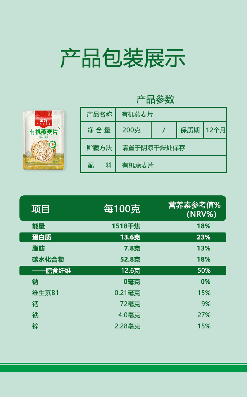 亲好有机燕麦片200g